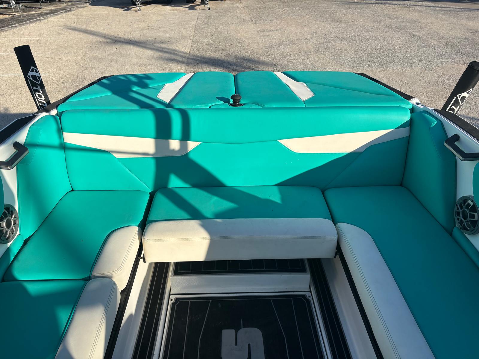 The 2022 Axis A22 is meticulously crafted to enhance your time on the water. Its 22-foot length offers ample space for passengers, gear, and all the essentials needed for a day of fun. The boat’s sleek hull design not only looks stunning but also contributes to superior handling and stability, even in choppy conditions. The Axis A22 is renowned for its innovative wake-shaping technology, allowing you to customize the size and shape of your wake for optimal skiing and wakeboarding experiences. The spacious layout ensures comfort for everyone on board, while the intuitive controls make operation straightforward and enjoyable.