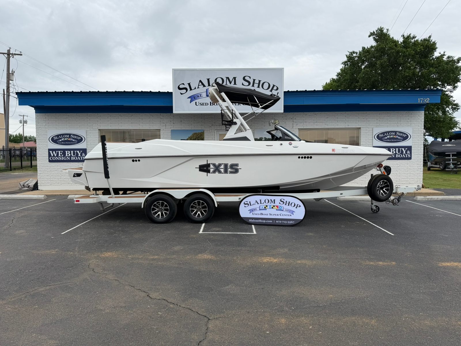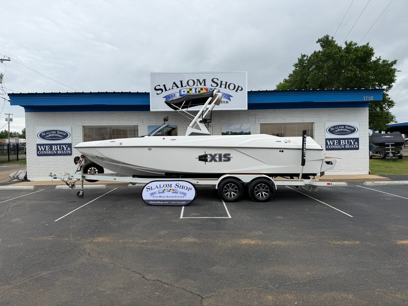 Now available at our Used Boat Super Center in Lewisville, this 2020 Axis A24 is a large, surf-focused wake boat known for producing massive waves and offering incredible value. Finished in a clean all-white gelcoat with a brown interior, this A24 is powered by the Monsoon M5 direct-injected V8 producing 350 horsepower with only 126 hours.