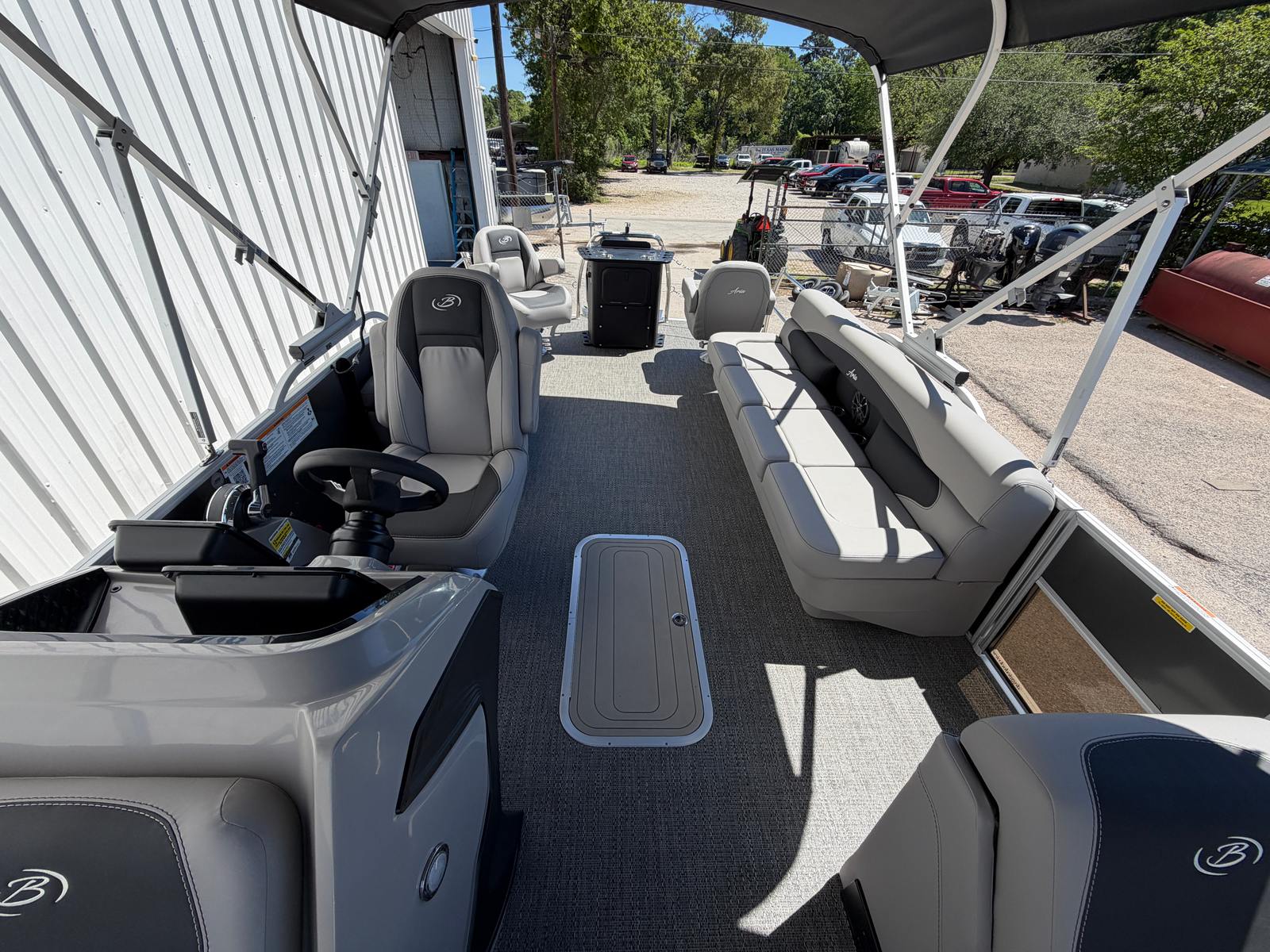 The Barletta Aria A22CC-Platinum stands out with its innovative design and thoughtful features that cater to both relaxation and recreation. The spacious deck layout provides ample room for socializing, sunbathing, or enjoying a picnic on the water. Plush, ergonomically designed seating ensures maximum comfort for all passengers, while the premium materials and finishes reflect Barletta’s commitment to quality and style.This pontoon boat for sale is equipped with a center console layout, offering enhanced visibility and easy access to controls for the captain. The intuitive helm station is designed for convenience, allowing you to navigate with confidence and ease. The open floor plan makes it simple to move around the boat, whether you’re casting a line, setting up for a meal, or just stretching out to relax.