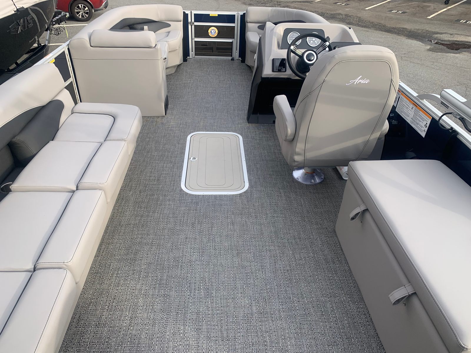 The 2026 Barletta Aria A22CC is packed with features designed to elevate your boating experience. The Triple Toon Package Aria provides enhanced buoyancy and stability, making it ideal for larger groups and more active outings. The onboard battery charger ensures your single battery is always ready for action, while the stainless steel flag pole with an American flag adds a touch of patriotic flair to your vessel’s exterior. Inside, you’ll find in-floor midship storage with rod storage (available with the Triple Toon package), offering convenient space for fishing gear and other essentials. The Tempest Gray furniture and Amore Gray flooring not only look stunning but are also crafted for comfort and durability, ensuring your time on the water is always relaxing.