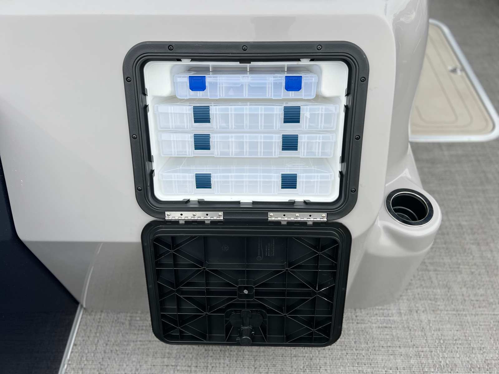 The Barletta Aria A22F is designed with practicality in mind, making ownership as enjoyable as the time spent on the water. The Triple Toon Package enhances stability, making docking and maneuvering easier, even for those new to boating. The durable flooring and furniture materials are easy to clean and maintain, ensuring your pontoon stays looking its best with minimal effort. The efficient Mercury engine offers excellent fuel economy, allowing you to spend more time cruising and less time refueling. Storage options throughout the boat provide convenient spaces for gear, snacks, and personal items, keeping the deck clutter-free and organized.