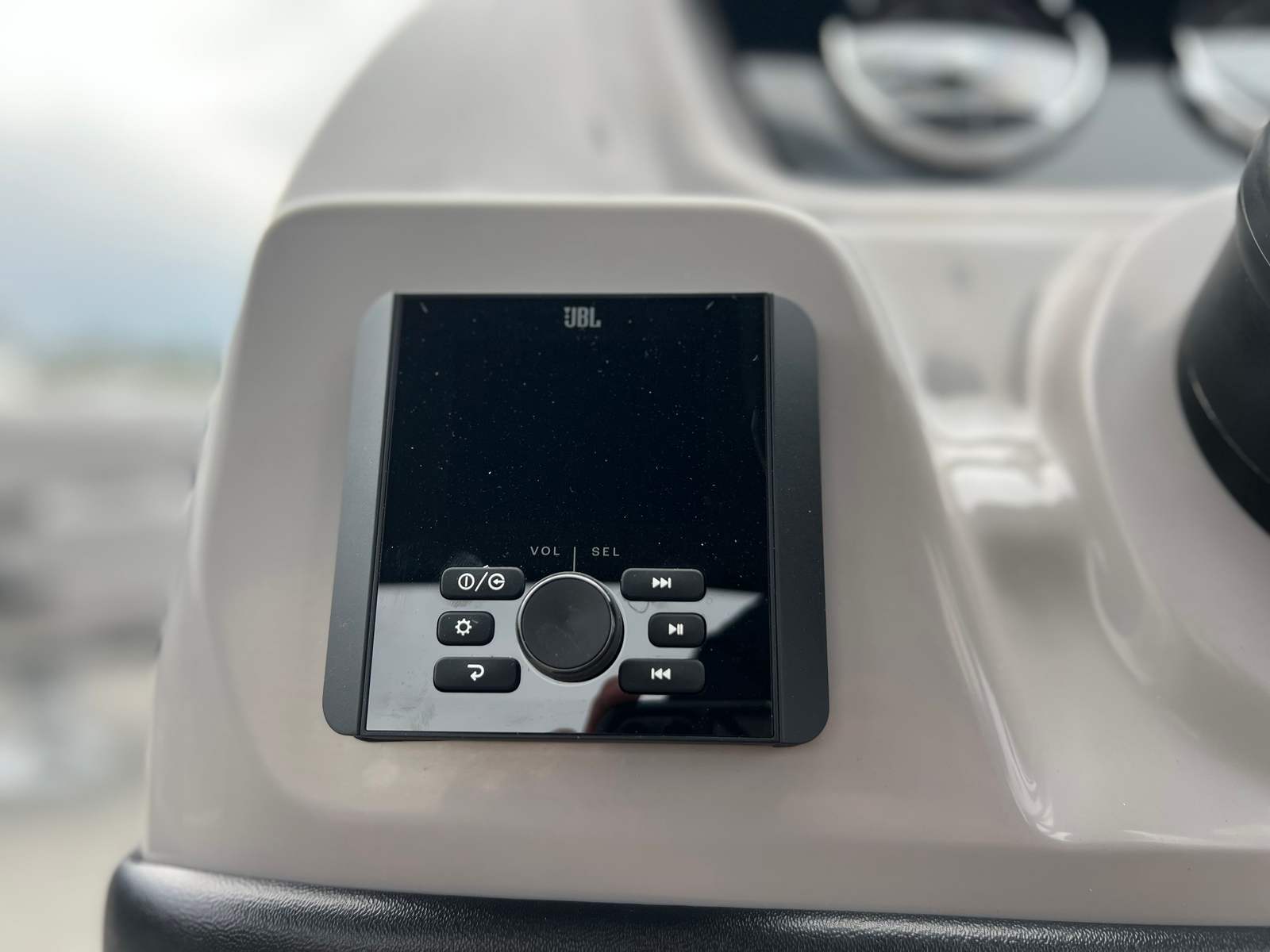 The 2025 Barletta Aria A22F is loaded with features designed to enhance your boating experience. The Triple Toon Package Aria provides added stability and buoyancy, ensuring a smooth and comfortable ride even in choppier waters. The Amore Gray flooring is not only stylish but also easy to maintain, offering a sophisticated look that complements the Tempest Gray furniture. The helm is equipped with a Simrad 7 G07 XSE, providing advanced navigation and control at your fingertips. The Blue Sapphire Railskin adds a touch of elegance and modern flair, while the Metal Jacket Protectant safeguards the exterior from the elements, preserving the boat’s beauty for years to come.