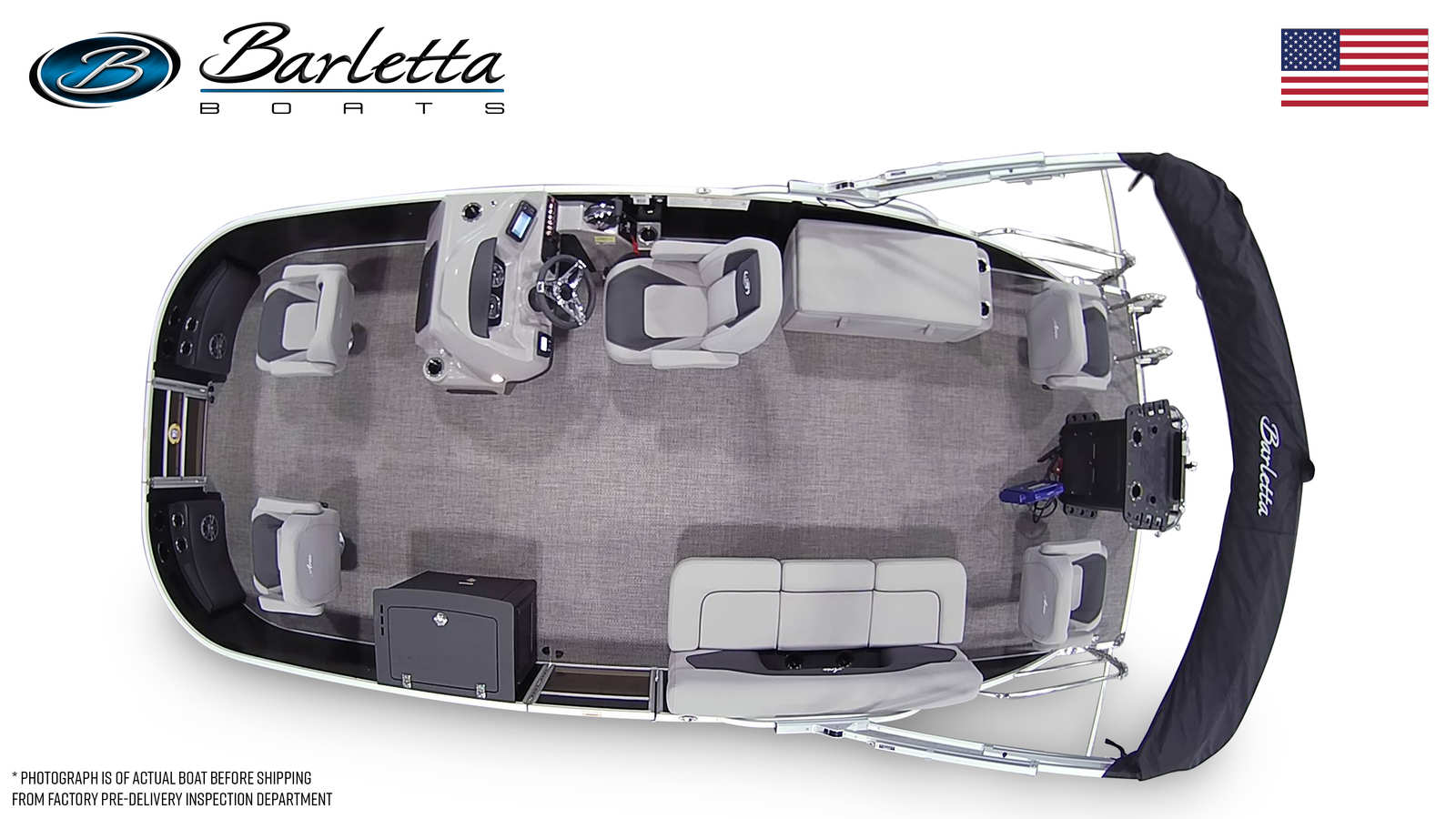 The Barletta Aria A22F is packed with special features that elevate your boating experience. The Railskin Color Aria in Black Diamond gives the pontoon a sophisticated and striking appearance, while the Tempest Gray furniture color creates a modern, inviting atmosphere for passengers. The Amore Gray flooring is both stylish and practical, providing a comfortable surface that’s easy to maintain.One of the standout features is the Triple Toon Package Aria, which enhances stability and performance, making this pontoon ideal for larger groups and more dynamic activities. The in-floor midship storage (available with the Triple Toon package) offers convenient space for stowing gear, water toys, or personal items, keeping the deck clutter-free and organized. At the helm, the Hook 5 GPS system ensures you stay on course and explore new destinations with confidence.