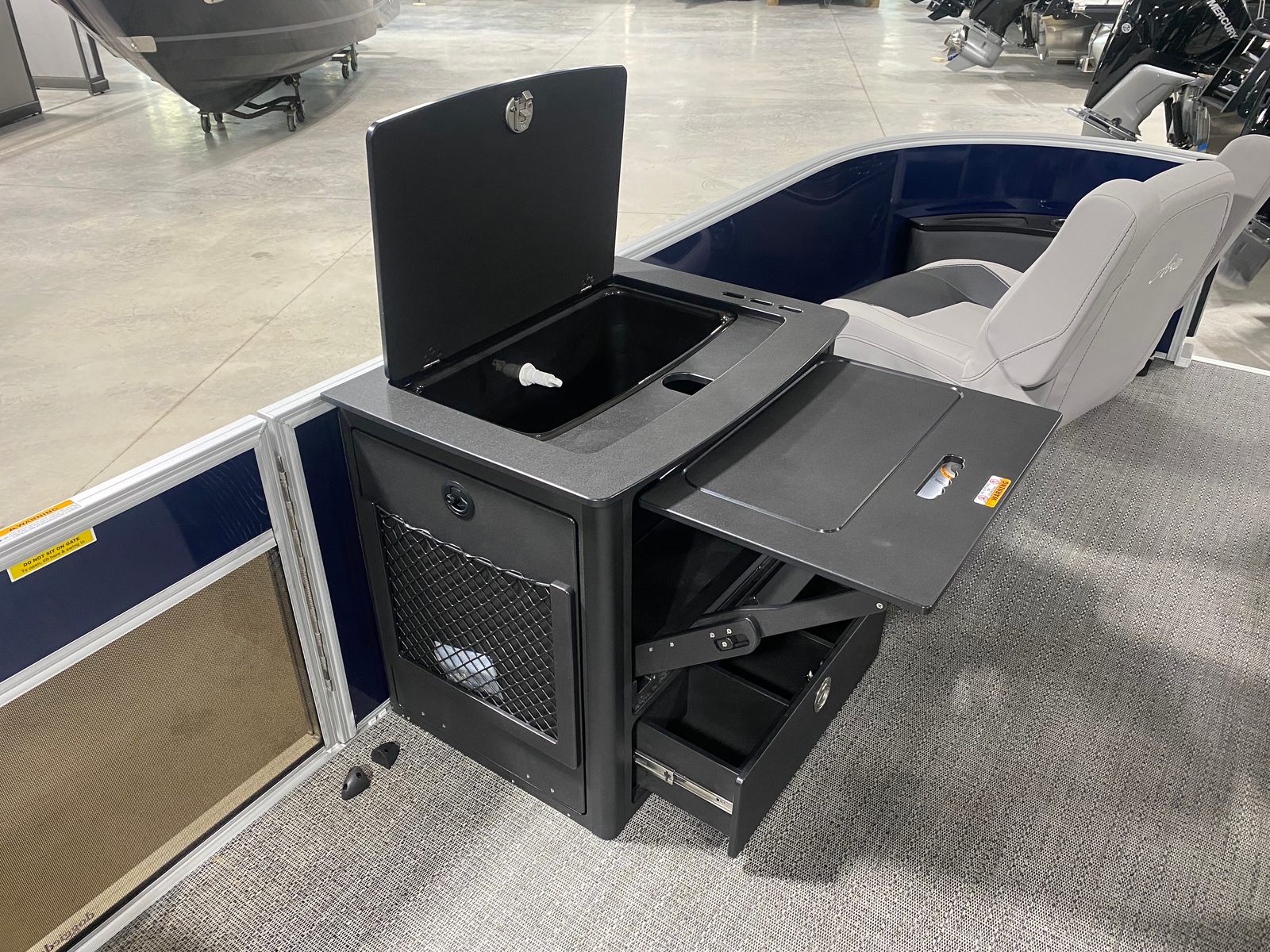 The Barletta Aria A22F is designed with practicality in mind, making ownership easy and enjoyable. The efficient Mercury 150L Four Stroke engine offers a great balance of power and fuel economy, allowing you to spend more time on the water and less time at the fuel dock. The pontoon’s manageable length makes docking and maneuvering a breeze, even for those new to boating.The durable Amore Gray flooring is easy to clean and maintain, ensuring your boat looks great season after season. The in-floor midship storage provides a secure and accessible place for all your essentials, while the Triple Toon Package enhances stability and performance, giving you peace of mind in a variety of conditions. Whether you are planning a quick afternoon cruise or a full day of adventure, the Aria A22F is equipped to handle it all with style and ease.