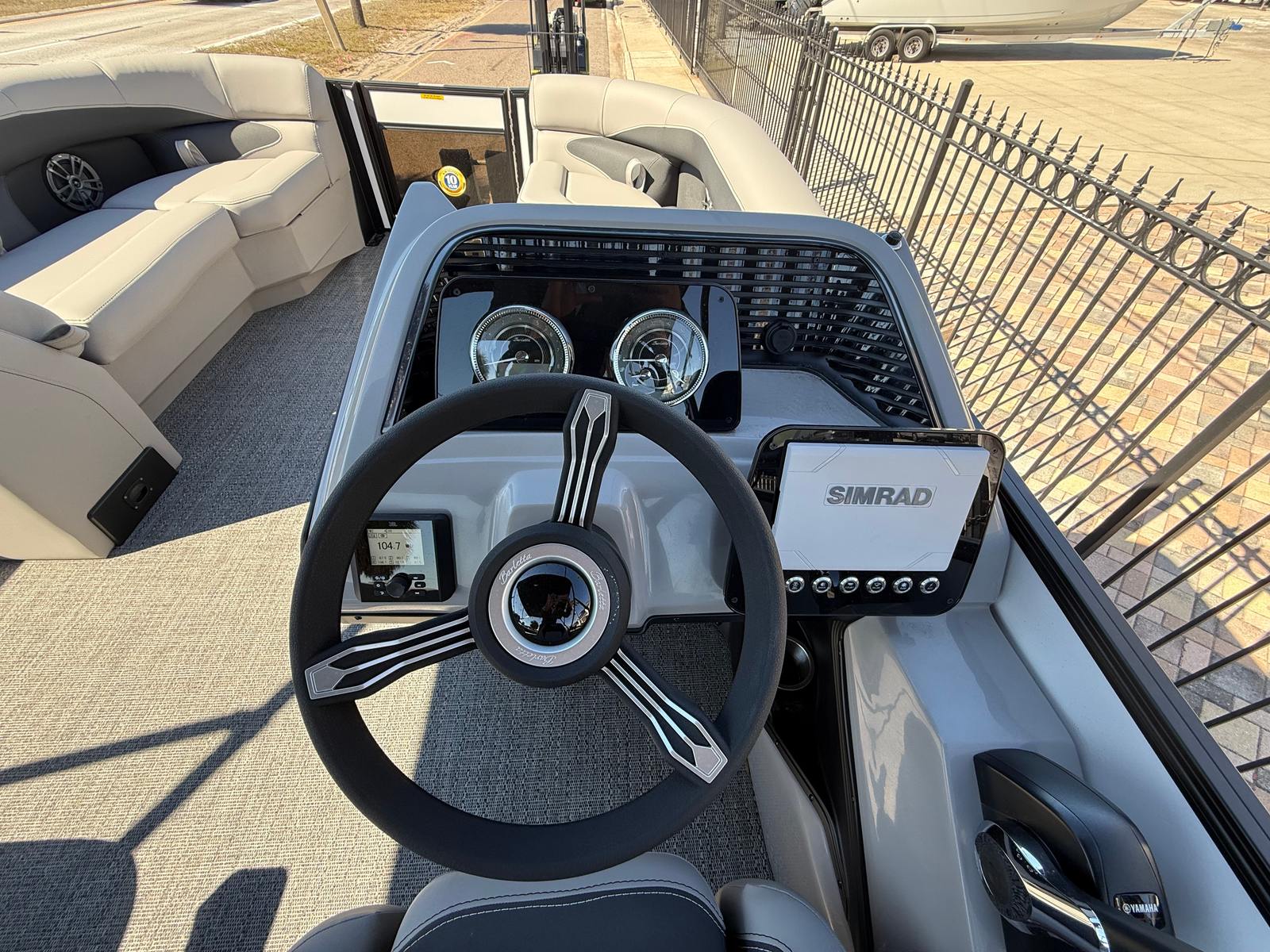 Powering the Barletta Aria A22QC-Platinum is a Yamaha (M) F200LC In Line Four 2.8L engine, delivering an impressive 200 horsepower. This reliable and efficient outboard engine is paired with Yamaha’s mechanical rigging and a stainless steel prop, ensuring smooth and responsive handling. The Triple Toon Package Aria enhances stability and performance, allowing you to glide effortlessly across the water. Whether you are seeking exhilarating speed or a leisurely cruise, this pontoon boat offers the versatility and power to match your boating style.