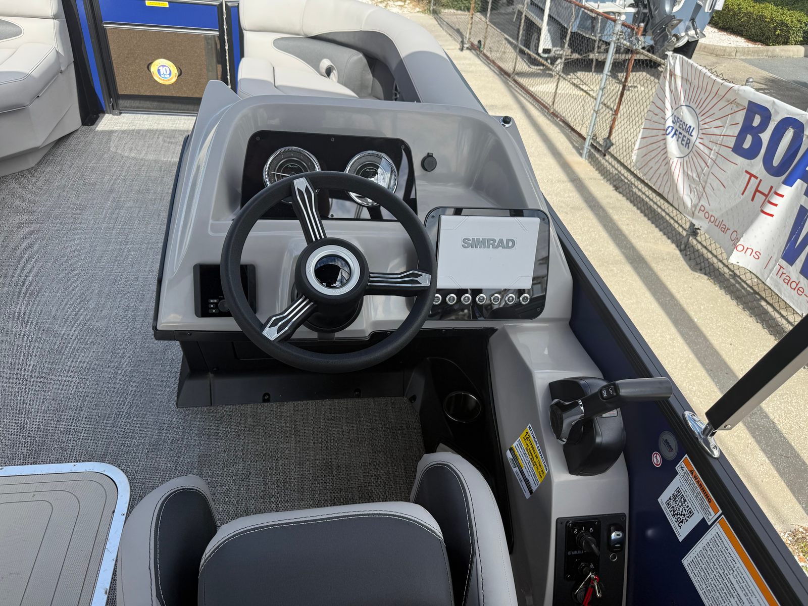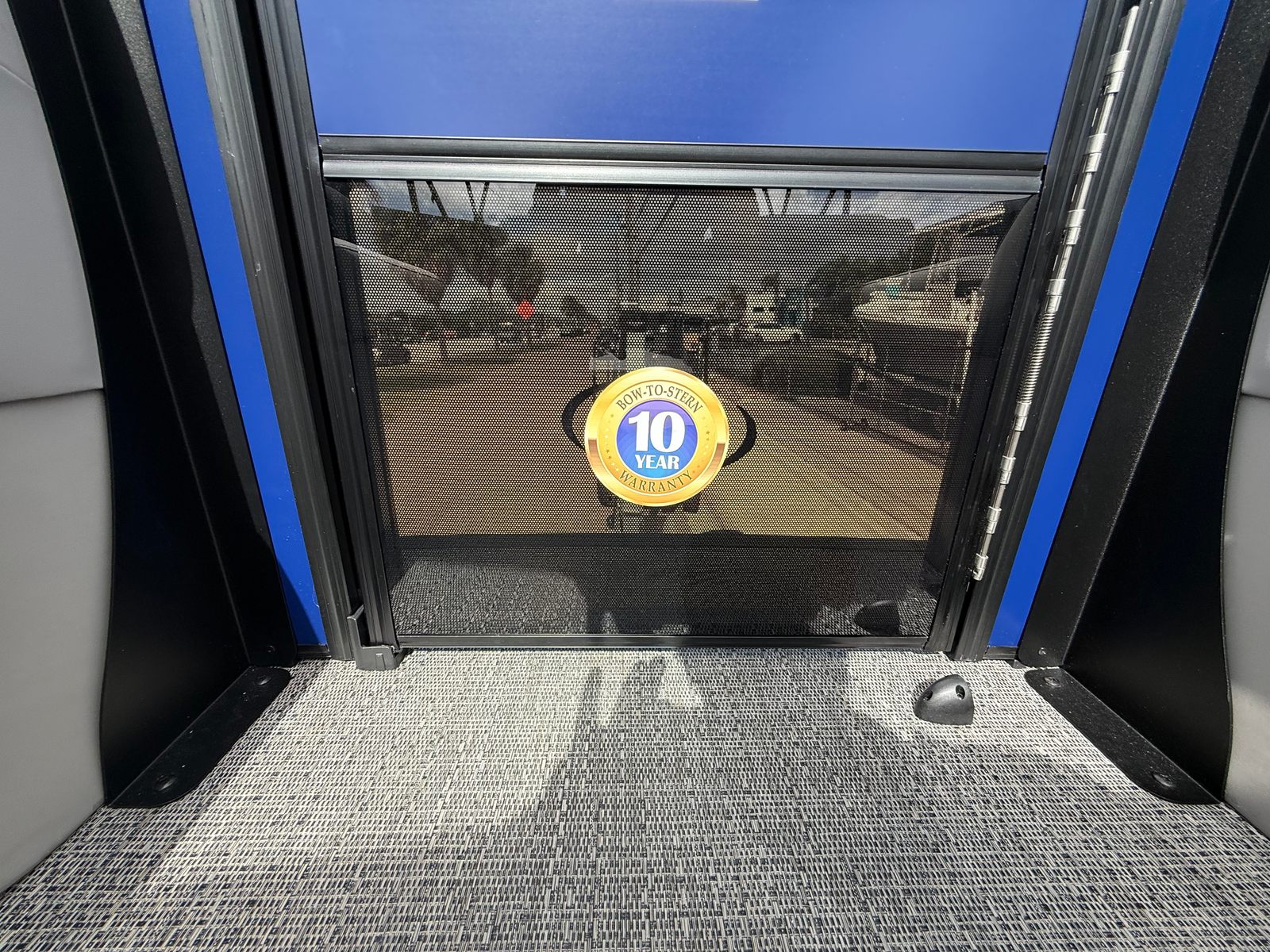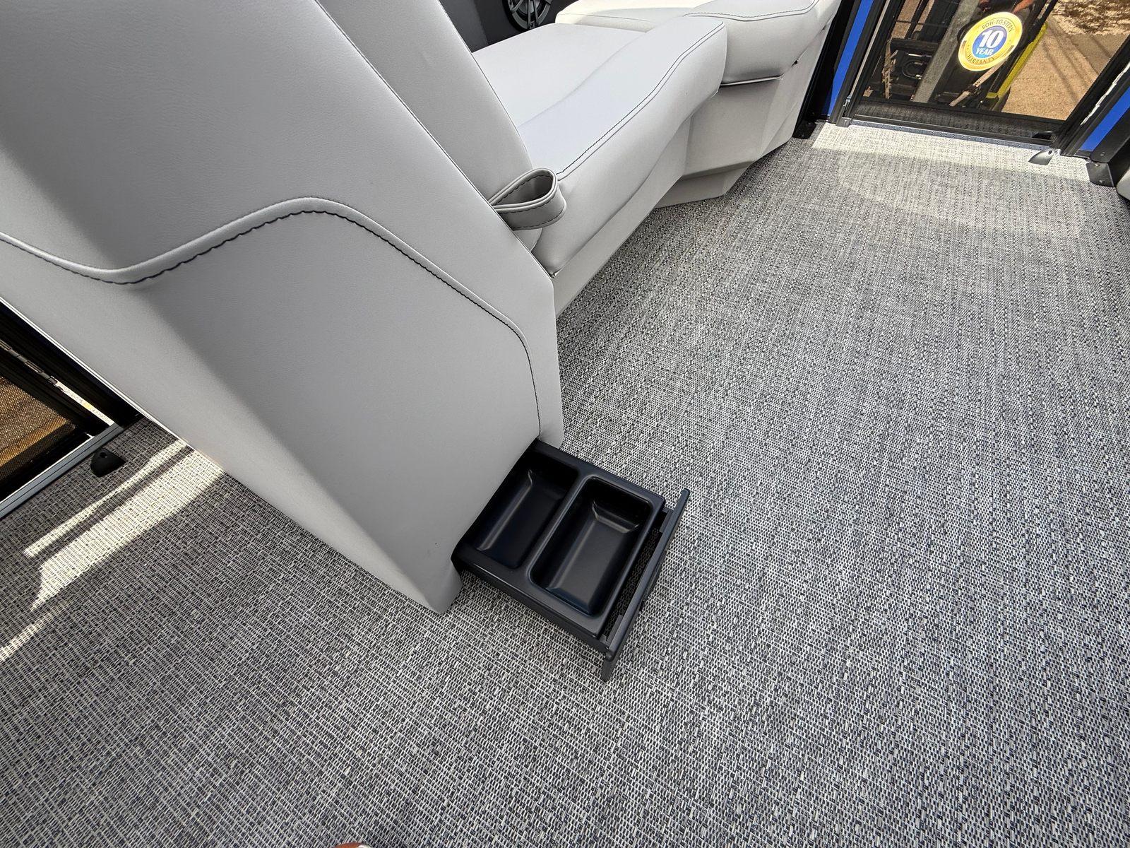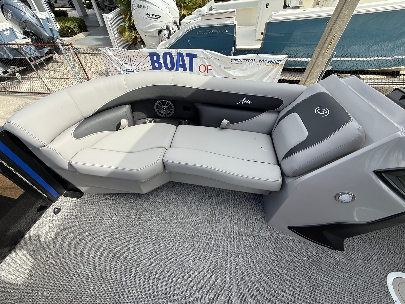 The Barletta Aria A22QC-Platinum is packed with features that elevate your boating experience. The Railskin Color Aria in Bohemian Blue, complemented by the Railskin Accent Aria in Winter White, creates a striking visual appeal that is sure to impress. The Blackout Package Aria adds a touch of sophistication, giving the boat a sleek and modern look. Inside, the Tempest Gray furniture offers both comfort and style, providing plush seating for all passengers. The Amore Gray flooring is not only visually appealing but also easy to clean and maintain, ensuring your pontoon always looks its best.As part of the Coastal Edition Aria, this pontoon is designed to withstand the elements, making it suitable for a variety of water environments. The Triple Toon Package Aria enhances the boat’s stability and performance, allowing for smoother rides and better handling. Every detail, from the railskin accents to the flooring and furniture, has been carefully selected to create a cohesive and inviting atmosphere on board.