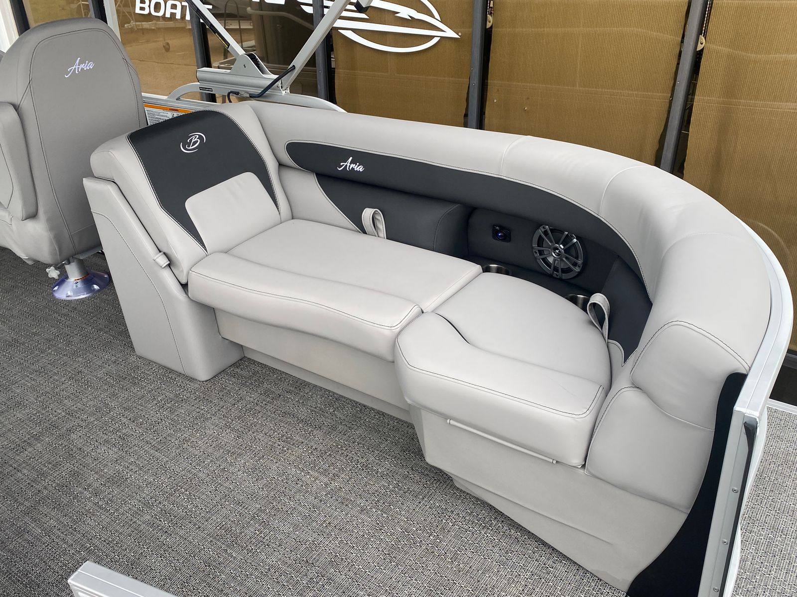 The 2026 Barletta Aria A22QC-Platinum is a brand-new pontoon boat that measures just over 21 feet in length, making it the ideal size for both intimate outings and lively gatherings. Its sleek profile, highlighted by the sophisticated Railskin Color Aria in Gray Moonstone, ensures you will turn heads wherever you cruise. The Aria A22QC-Platinum is meticulously crafted to deliver a premium boating experience, combining innovative design with high-quality materials and finishes. This pontoon boat is perfect for those who appreciate both form and function, offering ample space for relaxation, entertainment, and adventure.