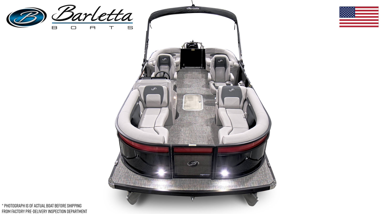 Step aboard the Barletta Aria A22QC and discover a world of comfort and style. The Railskin Color Aria in Black Diamond, complemented by the Macau Red accent, creates a bold and sophisticated look that is sure to turn heads. The Blackout Package Aria adds an extra touch of elegance, giving the boat a sleek, modern appearance. Inside, the Tempest Gray furniture provides plush seating for you and your guests, while the Amore Gray flooring offers both durability and a refined aesthetic.The Triple Toon Package Aria enhances stability and performance, making this pontoon boat ideal for a variety of water activities. The on-board battery charger for the single battery ensures your boat is always ready for action, while the thoughtful construction details reflect Barletta’s commitment to quality and innovation.