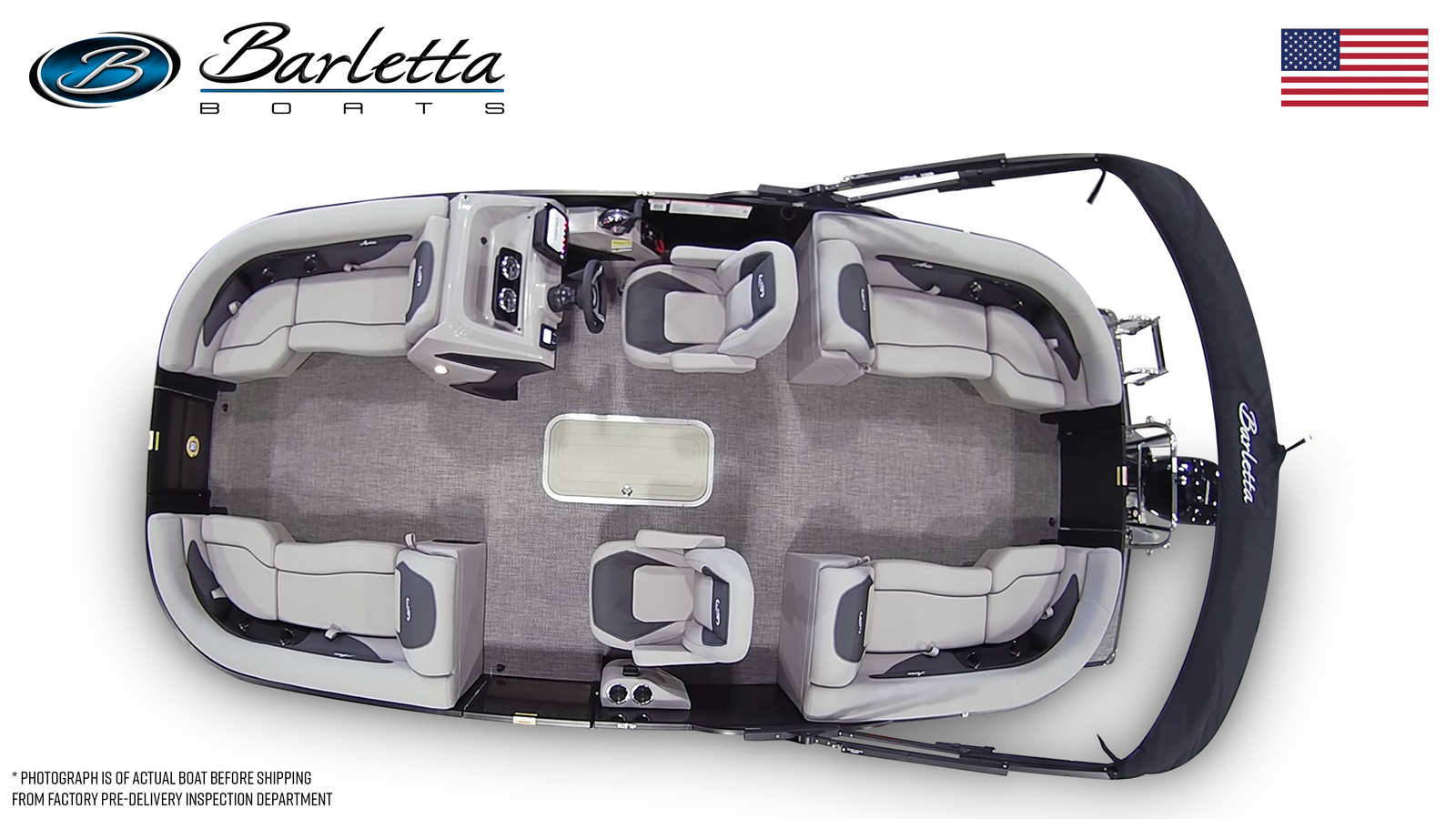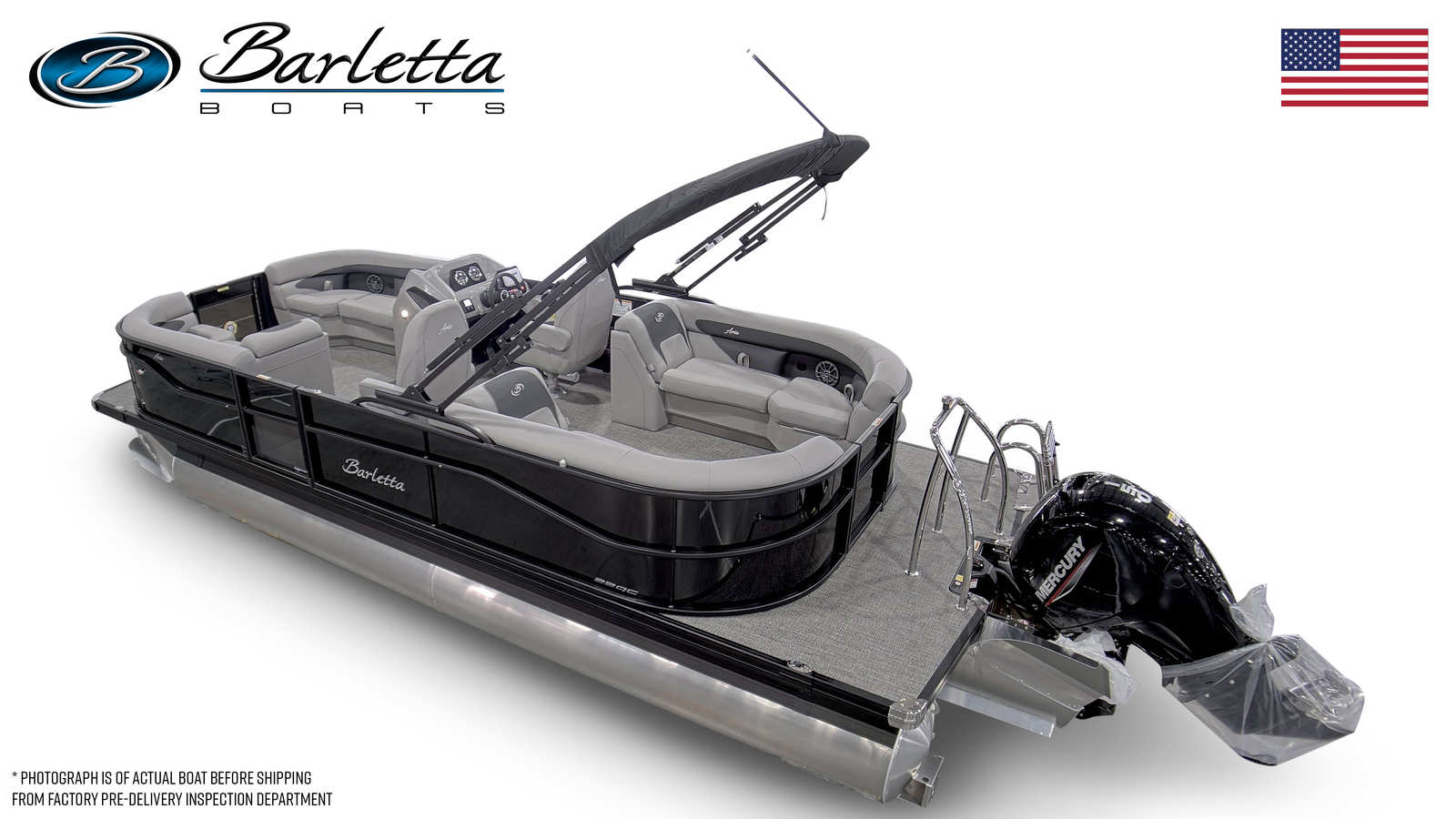 The 2026 Barletta Aria A22QC is packed with premium features designed to enhance your comfort, convenience, and enjoyment on the water. The striking Railskin Color Aria in Black Diamond, paired with the Blackout Package Aria, gives this pontoon a bold, sophisticated look that is sure to turn heads at the dock. Inside, the Tempest Gray furniture offers plush seating and a contemporary aesthetic, while the Amore Gray flooring provides a durable and stylish foundation for all your activities.One of the standout features of this model is the Triple Toon Package Aria, which enhances stability, buoyancy, and overall ride quality. This package also enables the inclusion of in-floor midship storage, offering ample space to stow your gear and keep the deck clutter-free. The boat is pre-rigged for Mercury with mechanical controls and features a rigged engine with a stainless steel prop, ensuring optimal performance and longevity.Adding to its appeal, the exterior is adorned with a stainless steel flag pole and an American flag, showcasing your pride and adding a touch of elegance to your pontoon. Every detail, from the railskin packages to the thoughtfully designed storage solutions, reflects Barletta’s commitment to quality and innovation.