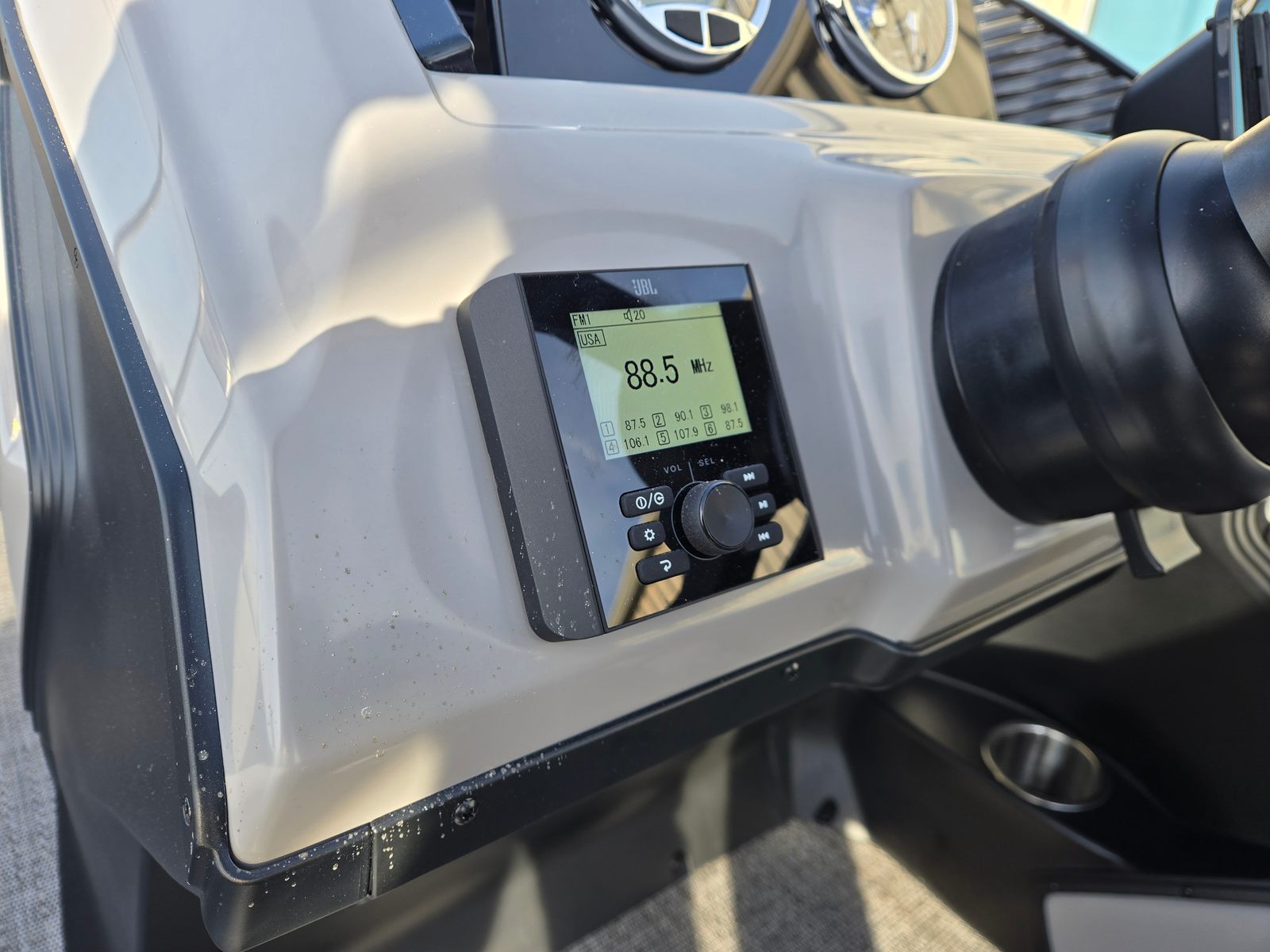 Powering the Barletta Aria A22UC-Platinum is a single Mercury (M) 200L FourStroke engine, delivering an impressive 200 horsepower. This engine is renowned for its reliability, smooth operation, and fuel efficiency, making it ideal for long days on the water. The Mercury - Mechanical with Power Assist steering ensures effortless handling, even at higher speeds, while the rig engine with a stainless steel prop provides enhanced durability and performance. Whether you’re cruising across the lake or enjoying a leisurely ride, this pontoon boat offers a responsive and enjoyable boating experience.
