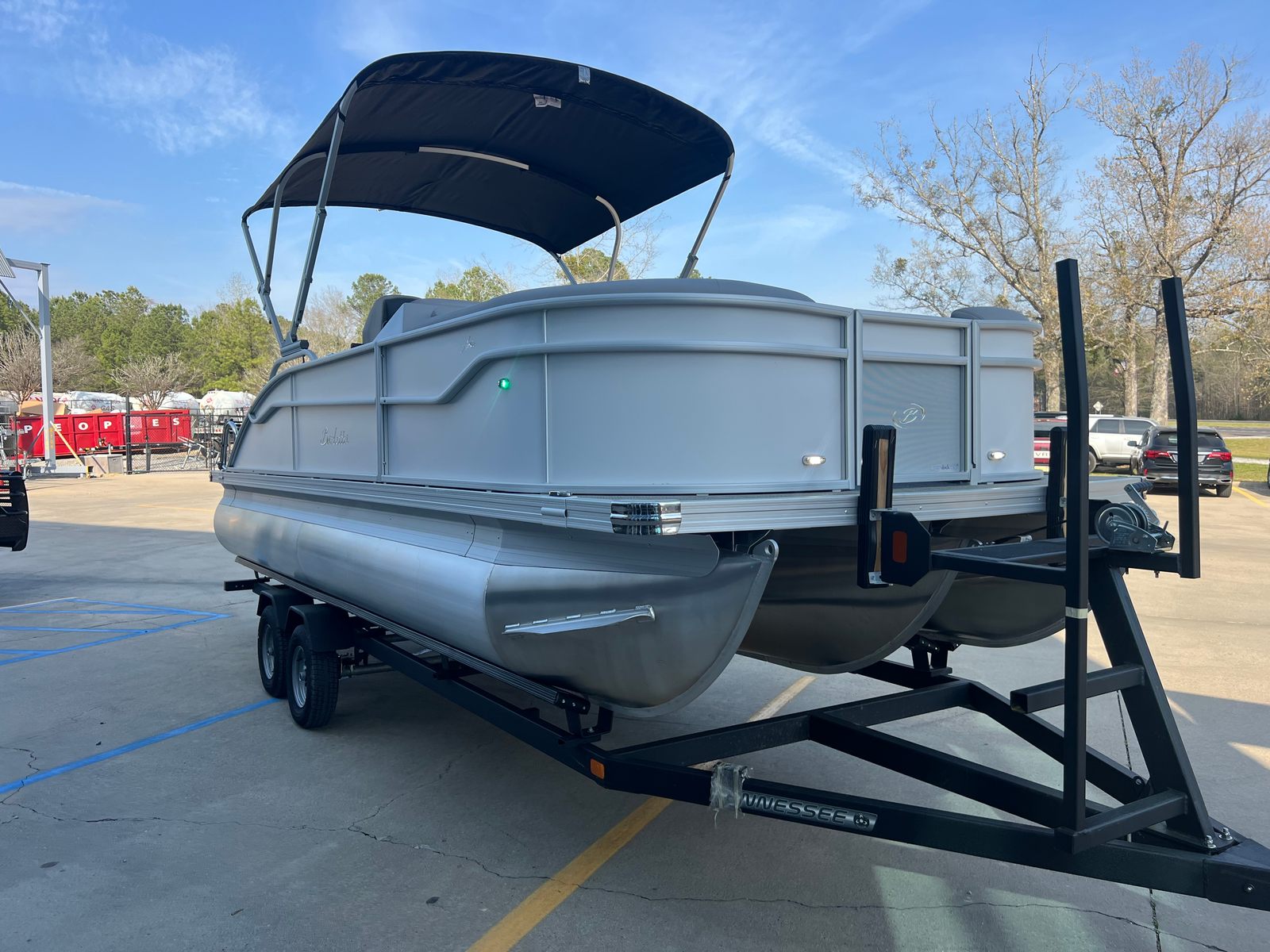 Practicality meets luxury in the Barletta Aria A22UC. The in-floor midship storage keeps your deck clutter-free and organized, making it easy to access your essentials when you need them. The triple toon design not only enhances performance but also simplifies docking and maneuvering, even for less experienced boaters. The efficient Mercury 150L Four Stroke engine helps you make the most of your fuel, so you can spend more time enjoying the water and less time at the pump.The clipped playpen cover with poles provides quick and convenient protection, allowing you to safeguard your boat from the elements with minimal effort. The sturdy stainless steel flag pole is both functional and decorative, letting you proudly display your American spirit wherever you go.