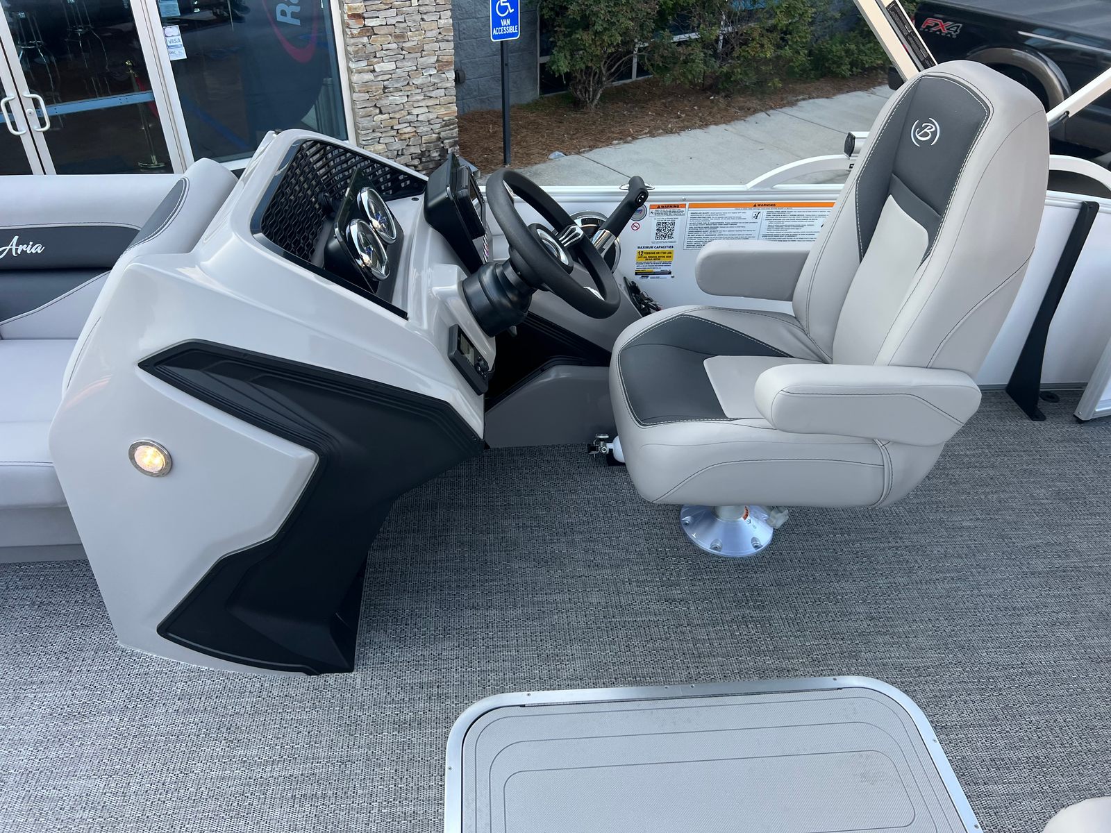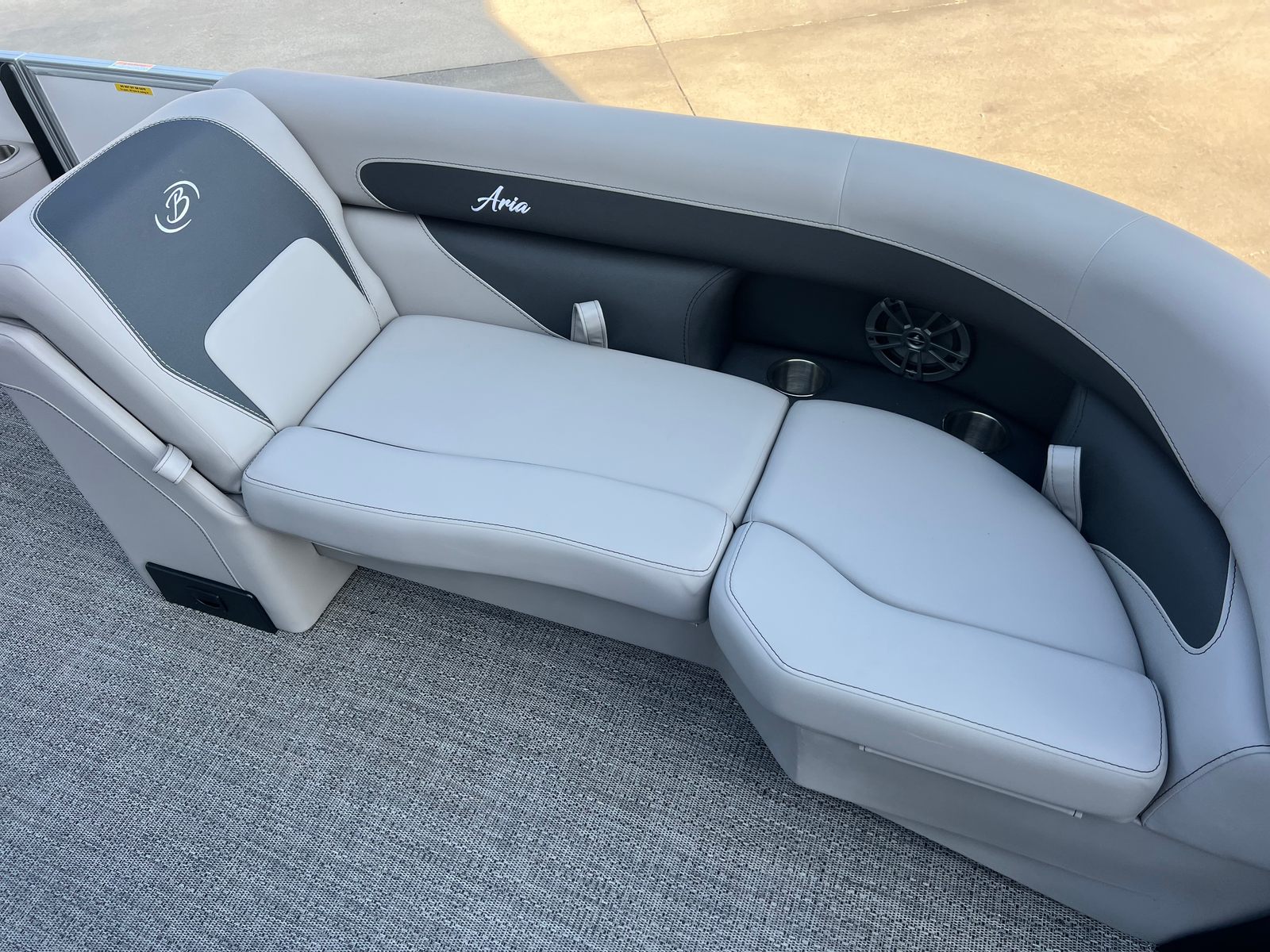 The Barletta Aria A22UC is packed with special features designed to enhance your time on the water. The Railskin Color Aria in Winter White not only adds visual appeal but also provides durability against the elements. The Tempest Gray furniture offers plush seating and ergonomic support, while the Amore Gray flooring is both stylish and easy to maintain. The Triple Toon Package Aria delivers superior buoyancy and stability, making every journey safe and comfortable.A standout feature is the in-floor midship storage, providing ample space to stow your gear, water toys, or picnic essentials. The clipped playpen cover with poles offers protection from the sun and rain, ensuring your investment stays in pristine condition. For a touch of patriotic flair, the stainless steel flag pole with an American flag adds a unique and eye-catching detail to your pontoon.