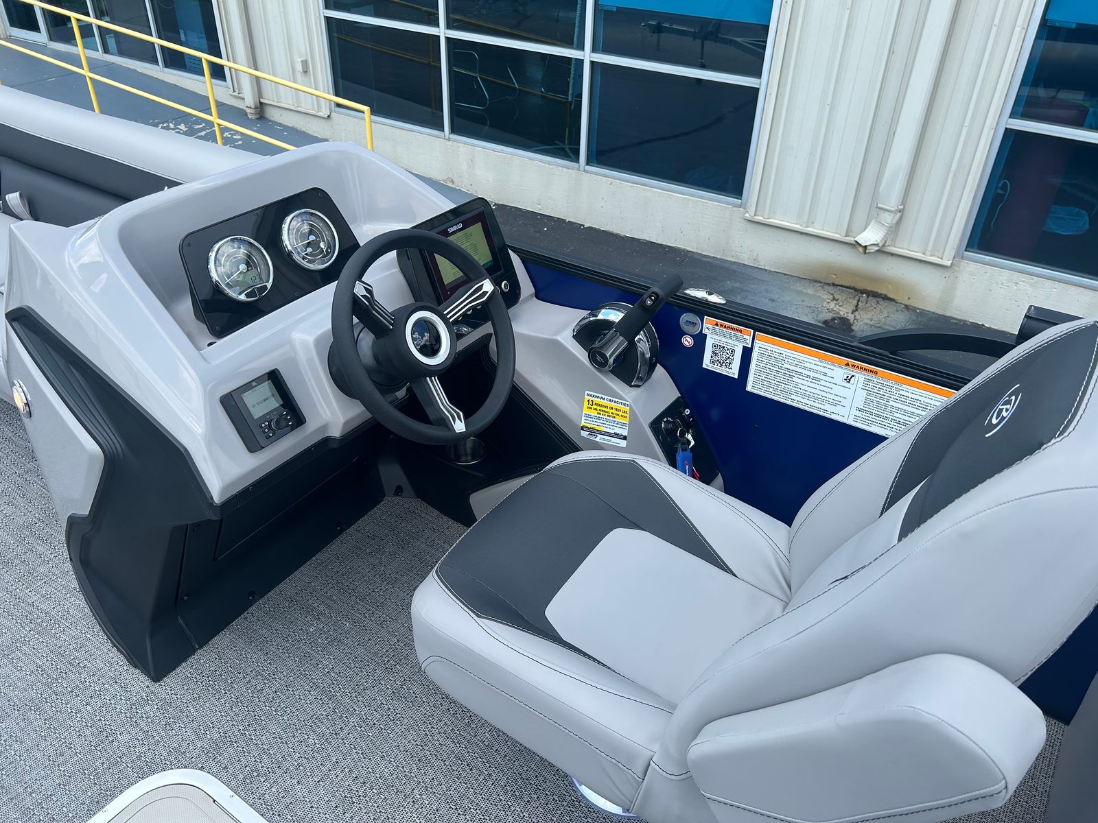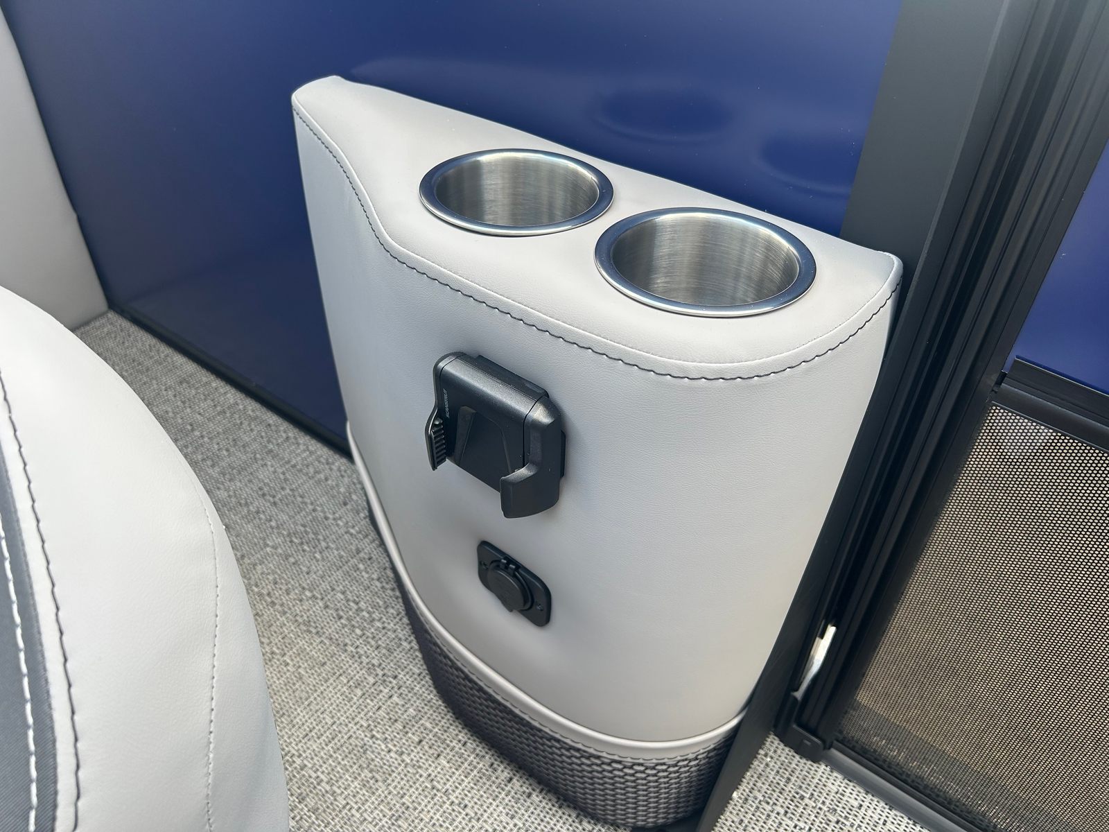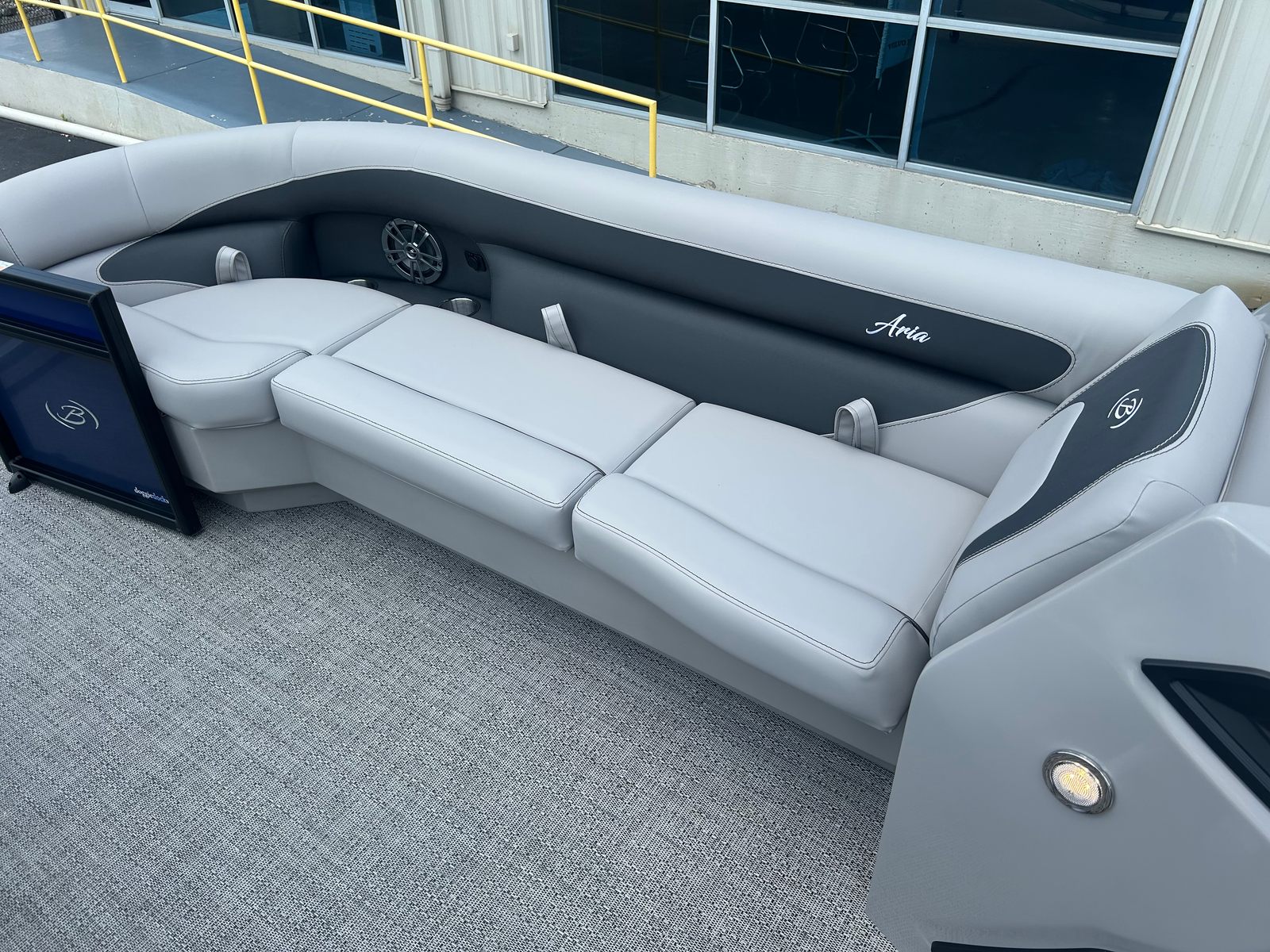 The Barletta Aria A24QC is loaded with features that set it apart from other pontoon boats for sale. The striking Bohemian Blue railskin color, complemented by the Blackout Package Aria, gives this pontoon a sleek and modern appearance that is sure to turn heads at the dock. Inside, the Tempest Gray furniture provides a sophisticated and inviting atmosphere, while the Amore Gray flooring is both stylish and easy to maintain.One of the standout features of this model is the in-floor midship storage, offering convenient space for stowing gear, water toys, and personal items. The stainless steel flag pole with an American flag adds a patriotic touch, perfect for holiday outings and special occasions. The rig engine with a stainless steel prop ensures optimal performance and longevity, while the Mercury pre-rig with power assist makes operation smooth and intuitive.