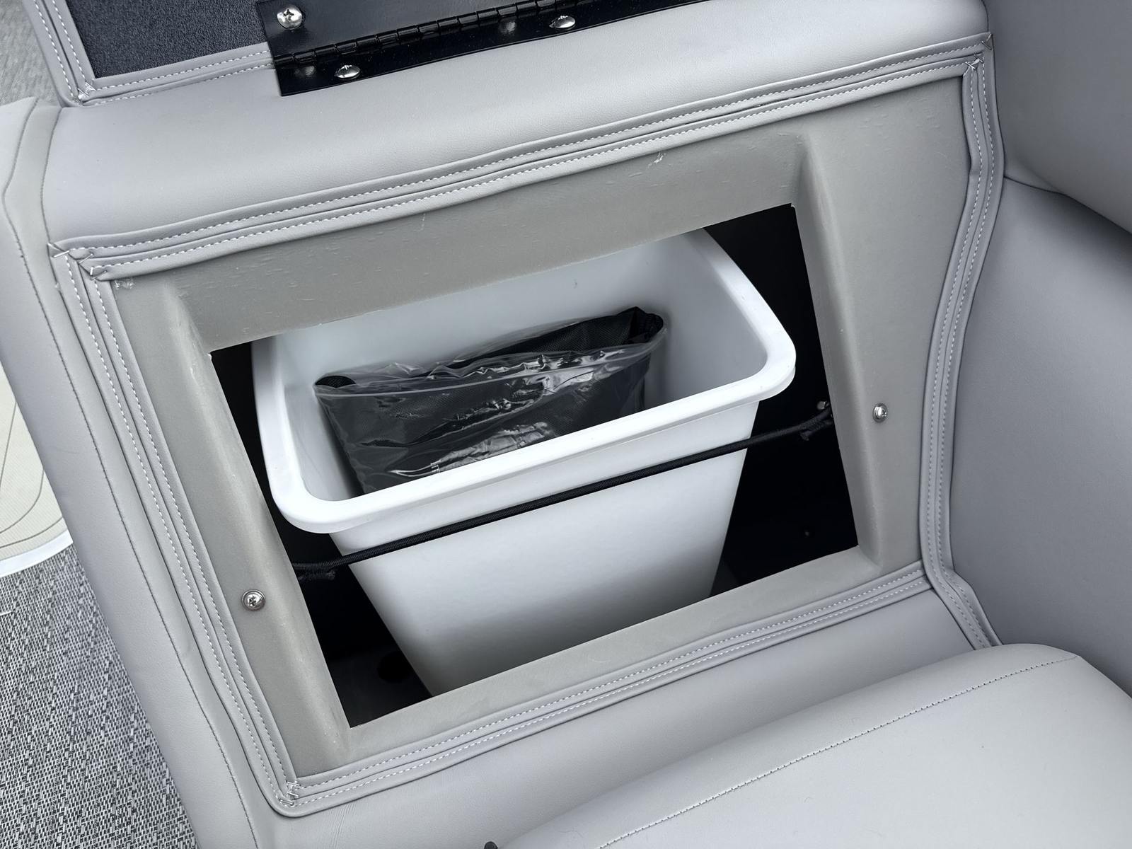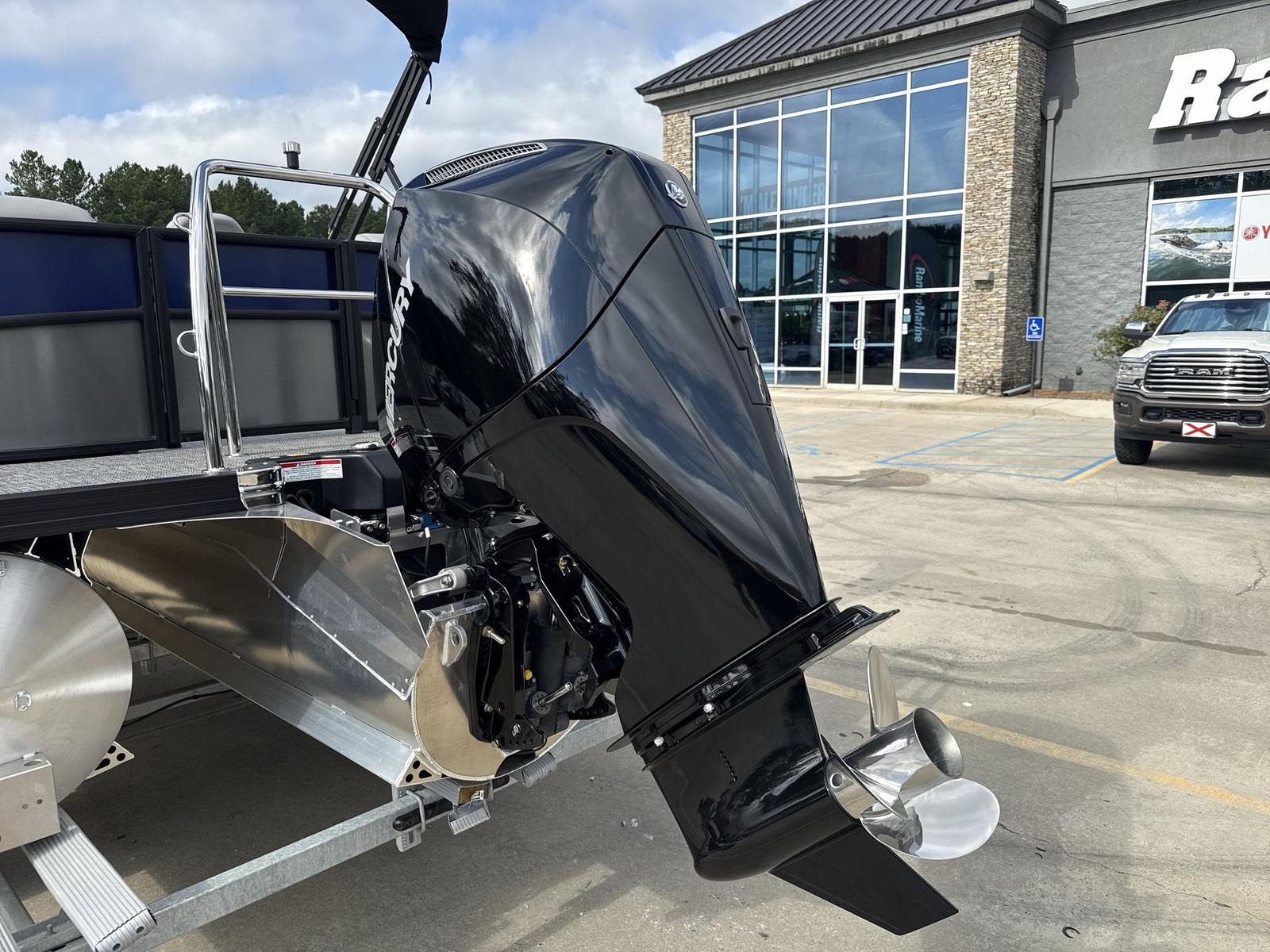 The 2026 Barletta Aria A24QC is loaded with features that set it apart from other pontoon boats for sale. The Railskin Color Aria in Gray Moonstone, complemented by the Bohemian Blue accent and Blackout Package Aria, creates a sophisticated and modern exterior that is sure to impress. Inside, the Tempest Gray furniture offers plush seating and a contemporary look, while the Amore Gray flooring provides a durable and stylish foundation for all your activities. The Triple Toon Package Aria enhances performance and stability, making every ride smooth and enjoyable. The Mercury (M) 200L FourStroke engine, paired with a stainless steel prop, ensures reliable power and efficiency. Additional touches like the stainless steel flag pole with an American flag add a sense of pride and distinction to your boating experience.