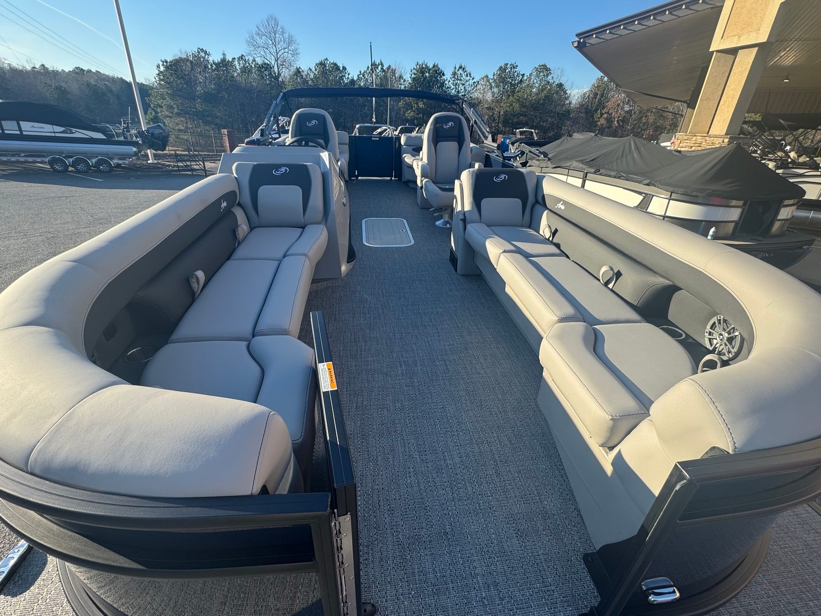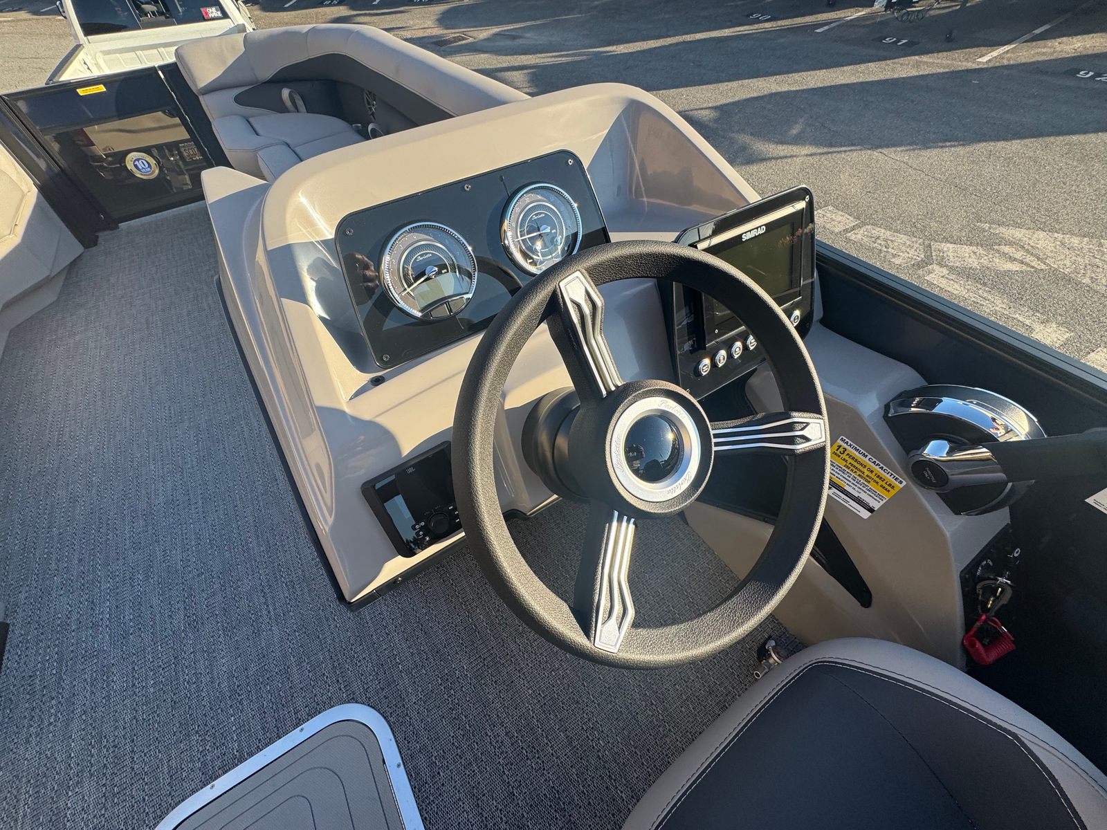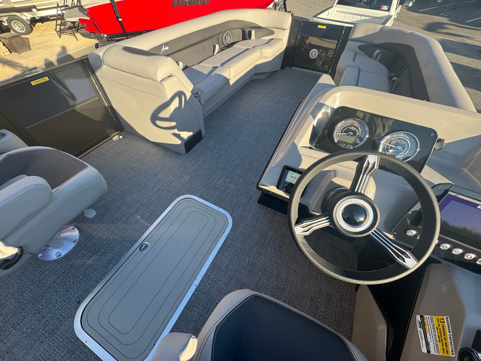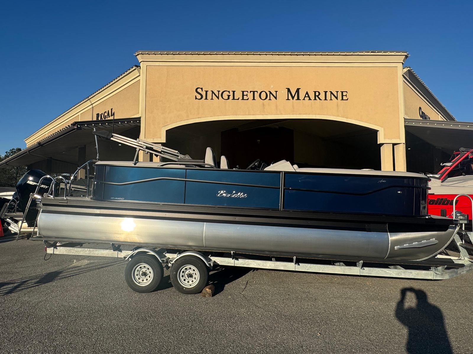 The 2026 Barletta Aria A24QC is a brand-new pontoon boat that measures just over 23 feet in length, making it the perfect size for both intimate family outings and lively gatherings with friends. With its sleek Blue Sapphire Railskin color and the striking Blackout Package Aria, this pontoon makes a bold statement wherever it goes. The contemporary Tempest Gray furniture and Amore Gray flooring create a sophisticated and inviting atmosphere, ensuring every moment on board is spent in comfort and style. As a new model, this Barletta boat for sale is ready to deliver years of reliable performance and enjoyment.