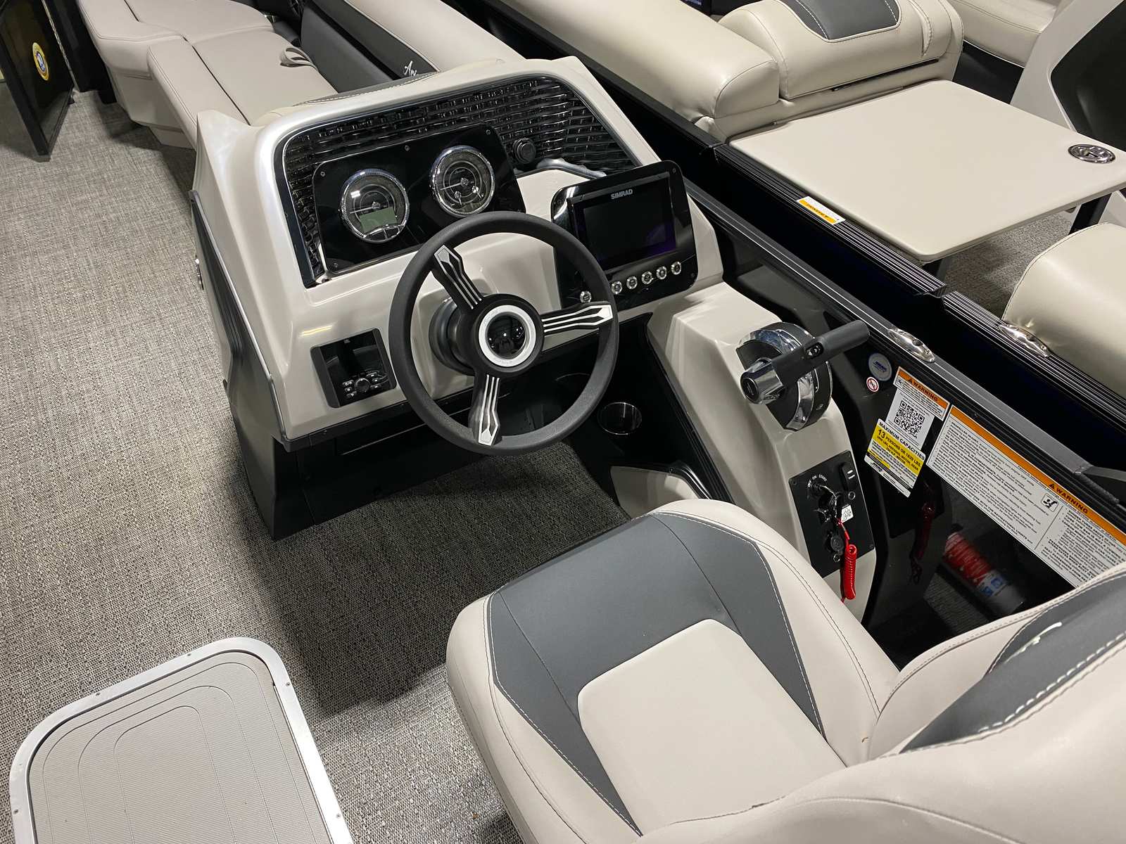 At the heart of the Barletta Aria A24QC is a powerful Mercury (M) 200L FourStroke engine, delivering an impressive 200 horsepower. This single-engine setup ensures smooth acceleration, reliable power, and efficient cruising, making it ideal for both leisurely rides and spirited adventures. The Mercury - Mechanical system and Power Assist Steering provide effortless control and responsive handling, allowing you to navigate with confidence whether you are gliding across calm lakes or exploring winding rivers. The Triple Toon Package Aria further enhances stability and performance, ensuring a smooth and enjoyable ride for everyone on board.
