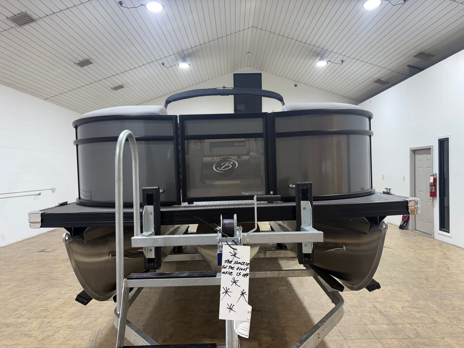 The Barletta Aria A24UC is packed with special features that elevate your boating experience. The Railskin Color Aria in Gray Moonstone and the Blackout Package Aria create a striking exterior that turns heads at every dock. The furniture, finished in Tempest Gray, offers plush seating and a sophisticated look, while the Amore Gray flooring provides both comfort and durability underfoot. The Triple Toon Package Aria enhances stability and ride quality, making this pontoon boat ideal for larger groups and choppy waters.Inside, you’ll find in-floor midship storage (available with the Triple Toon configuration), offering convenient space for gear, water toys, and personal items. The exterior is adorned with a stainless steel flag pole and an American flag, adding a touch of patriotic flair and elegance. Every detail, from the premium materials to the thoughtful layout, is designed to maximize comfort and usability.
