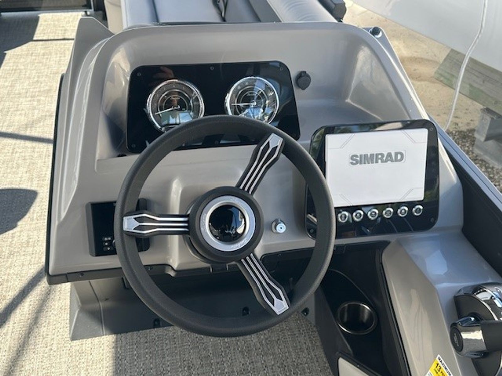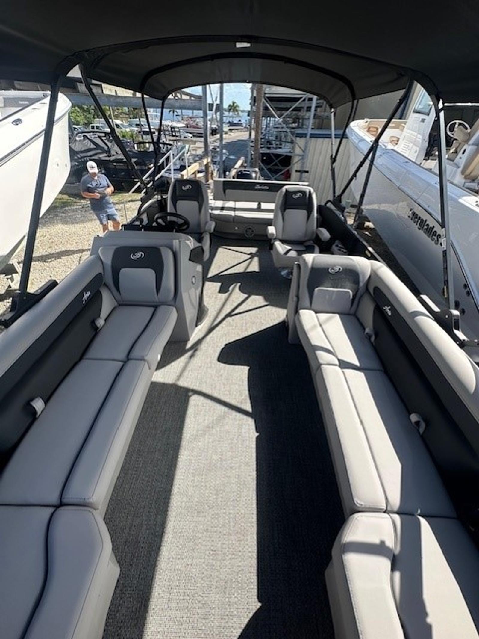 The 2026 Barletta Aria A24UC is loaded with features that elevate your boating experience. The Coastal Edition Aria package is designed to withstand the unique challenges of coastal environments, offering added durability and peace of mind. The interior is outfitted with Tempest Gray furniture, providing a sophisticated and comfortable setting for you and your guests. The Matte Black Railskin Color Aria and Blackout Package Aria give the boat a striking, contemporary appearance that is sure to turn heads at the marina.Enjoy vibrant ambiance with the Interior RGB Lighting Package Aria, which allows you to customize the mood onboard with a spectrum of colors. The Amore Gray flooring is both stylish and practical, offering a comfortable and easy-to-clean surface for all your activities. An on-board charger ensures your electronics and accessories stay powered up throughout your adventures, keeping you connected and ready for anything.