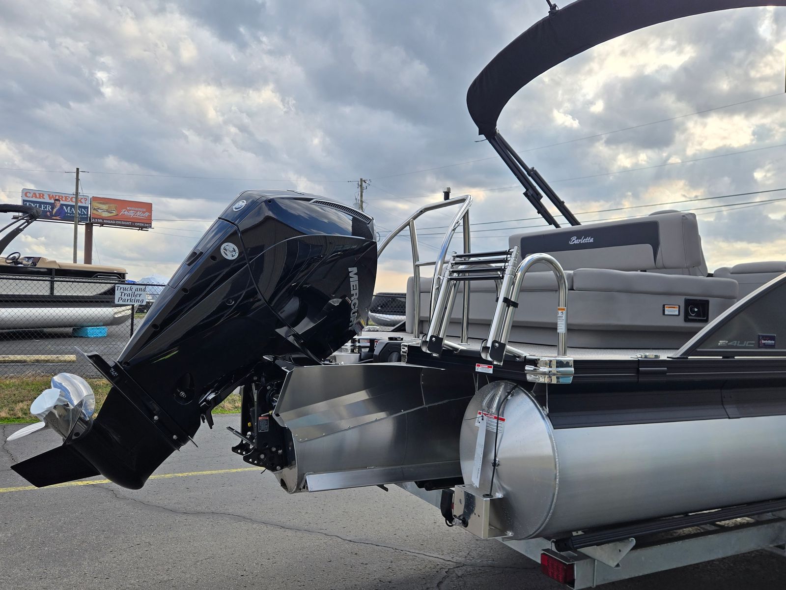 The Barletta Aria A24UC is designed with practicality in mind, making ownership as enjoyable as it is rewarding. The in-floor midship storage offers ample space for gear, ensuring everything you need is within easy reach but out of the way. The sturdy construction and high-quality materials mean this pontoon boat is built to last, providing years of reliable service and enjoyment.Docking is a breeze thanks to the responsive power assist steering and manageable length, making it easy to visit your favorite waterfront restaurants or explore hidden coves. The efficient Mercury FourStroke engine helps you make the most of your time on the water without worrying about excessive fuel consumption. The stylish Railskin and Blackout Package not only enhance the boat’s appearance but also offer added durability and protection.