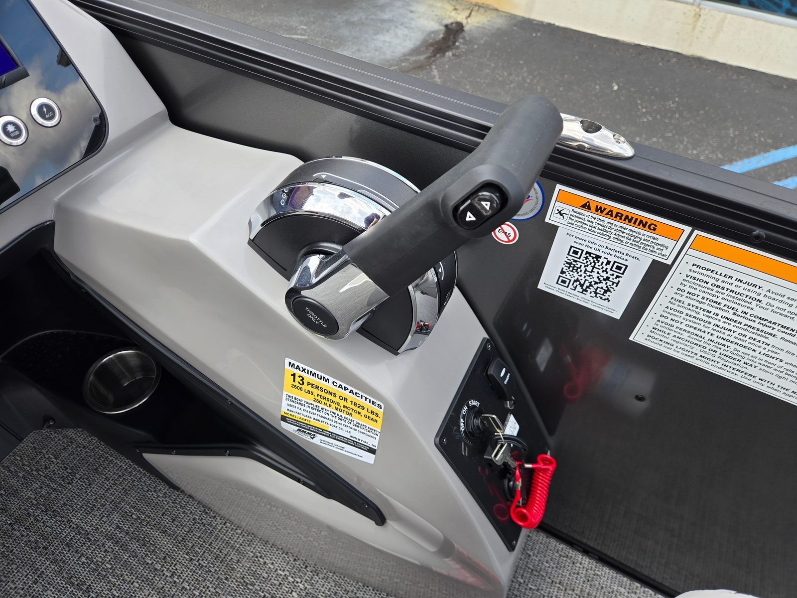 At the heart of the Barletta Aria A24UC is a robust Mercury (M) 250L FourStroke engine, delivering an impressive 250 horsepower. This single-engine setup ensures smooth acceleration, responsive handling, and plenty of power for cruising, watersports, or simply exploring new horizons. The Mercury - Mechanical with Power Assist (200HP) system enhances maneuverability, making docking and navigating tight spaces effortless. Paired with a stainless steel prop, the Aria A24UC offers reliable performance and efficiency, ensuring you make the most of every outing.
