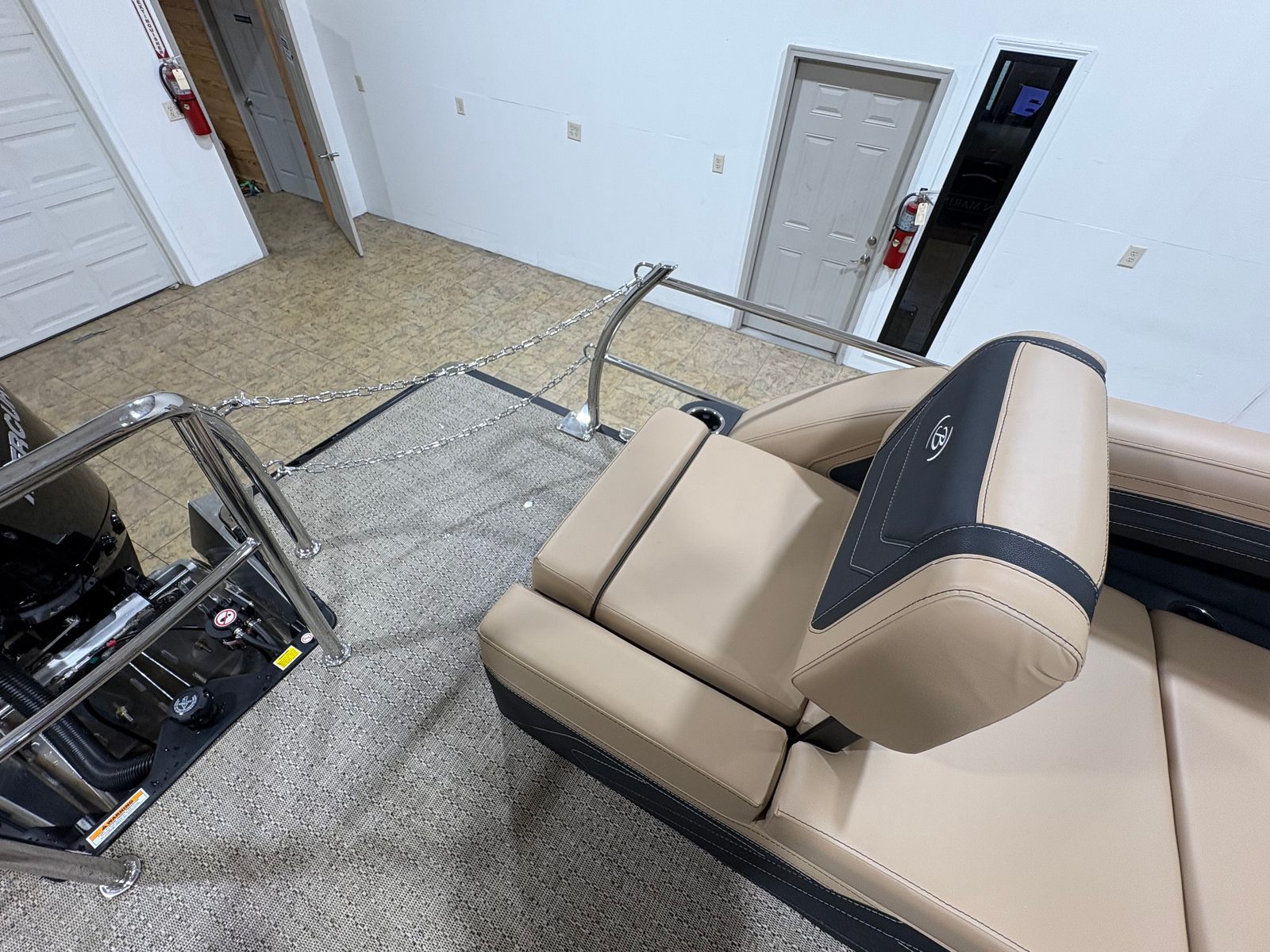 Step aboard the Barletta Cabrio C22M and experience a world of comfort and convenience. The Carmella Tan furniture with Onyx accents creates a warm and inviting atmosphere, perfect for relaxing with friends and family. The Amore Tan flooring is both stylish and practical, providing a soft, slip-resistant surface that is easy to maintain. The Triple Toon Package with midship storage adds extra stability and ample space for all your gear, ensuring that everything you need for a day on the water is right at your fingertips.The Cabrio C22M also features a Sport Bimini, installed in place of the standard bimini, offering superior shade and protection from the sun. This thoughtful addition makes it easy to stay cool and comfortable, even on the hottest summer days. Every detail of this pontoon boat has been carefully considered to enhance your boating experience, from the premium materials to the advanced rigging and engine setup.