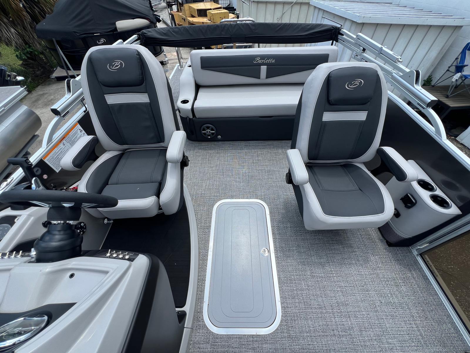The Barletta Cabrio C22UC is as practical as it is luxurious. Its generous storage options, including midship storage from the Triple Toon Package, allow you to keep your gear organized and easily accessible. The boat’s length and layout make docking straightforward, while power assist steering ensures smooth handling in tight spaces. Fuel efficiency is a hallmark of the Yamaha engine, helping you maximize your time on the water without frequent stops at the pump.Maintenance is simplified thanks to the durable flooring and high-quality materials used throughout the boat. Whether you’re planning a quick afternoon outing or an all-day excursion, the Barletta Cabrio C22UC adapts to your needs, providing comfort, convenience, and reliability. Its versatile design makes it suitable for a wide range of activities, from leisurely cruises to energetic water sports.