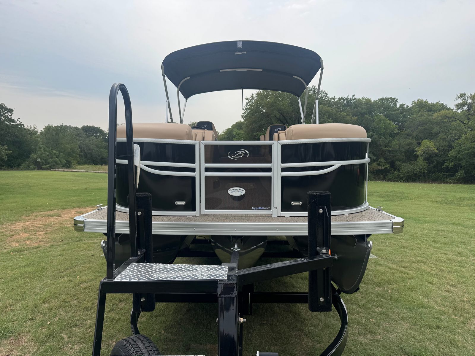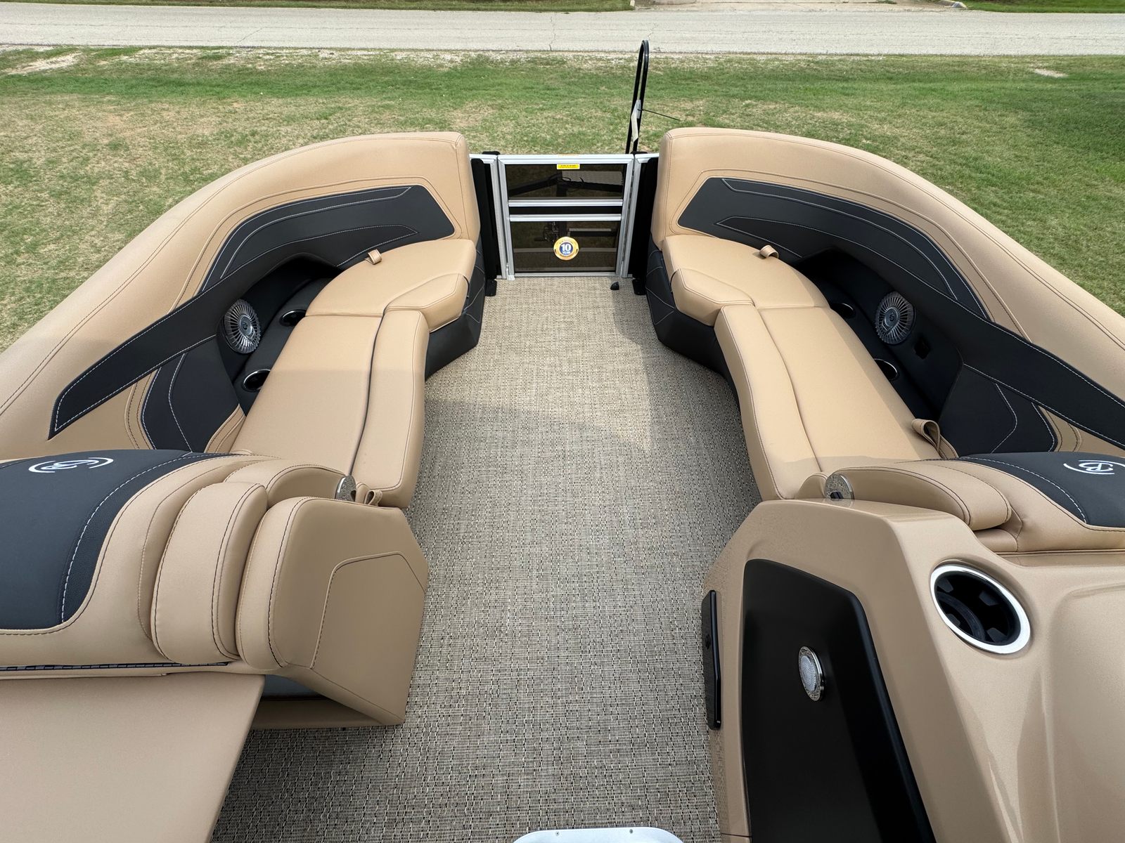 The Barletta Cabrio C22UC is packed with features that set it apart from other pontoon boats for sale. The striking Black Diamond Railskin not only adds a touch of elegance but also offers durability against the elements. Inside, the Carmella Tan furniture with Onyx detailing provides plush seating and a refined look, perfect for lounging or socializing. The Amore Tan flooring is both stylish and practical, designed to withstand heavy foot traffic while remaining easy to clean.The Triple Toon Package with midship storage is a game-changer, offering enhanced buoyancy and stability for a smoother ride. This feature also provides convenient storage solutions, keeping your gear organized and accessible. The Mercury 200L FourStroke engine is paired with a mechanical pre-rig and power assist, ensuring effortless control and precision. The rigging includes a stainless steel prop for added reliability and performance.Additional highlights include the Metal Jacket Protectant, which safeguards the pontoon’s exterior from wear and tear, extending its lifespan and maintaining its pristine appearance. The stainless steel flag pole with an American flag adds a patriotic touch, while the stainless steel safety stanchions with chains enhance onboard safety for all passengers.