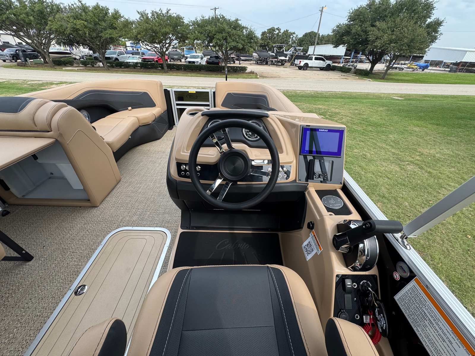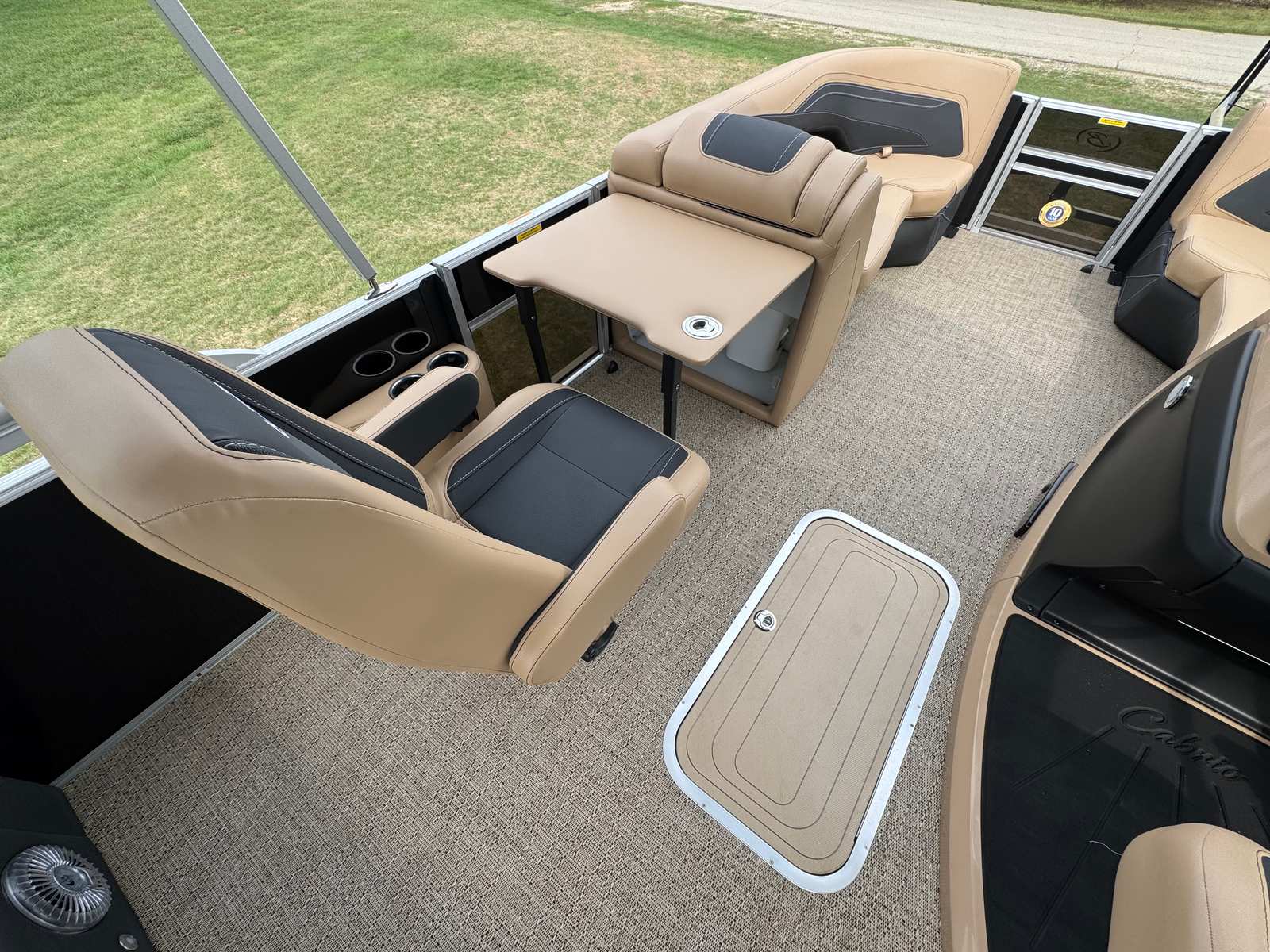 The 2026 Barletta Cabrio C22UC pontoon measures an impressive 23.17 feet in length, offering ample space for relaxation, entertainment, and adventure. With its sleek Railskin Color in Black Diamond, this pontoon boat commands attention at the dock and on the water. The Carmella Tan furniture with Onyx accents creates a sophisticated and inviting atmosphere, while the Amore Tan flooring adds warmth and comfort underfoot. Every detail of this Barletta boat for sale has been thoughtfully designed to maximize enjoyment and convenience, making it the perfect vessel for those who appreciate both aesthetics and functionality.
