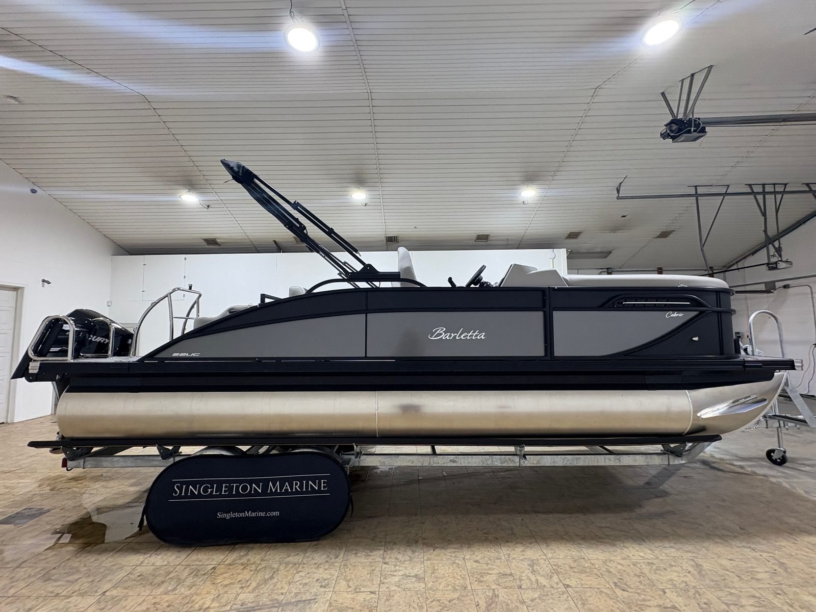 The 2026 Barletta Cabrio C22UC is a new pontoon boat that measures an impressive 23.17 feet in length, offering ample space for family, friends, and all your favorite activities. Barletta’s reputation for quality craftsmanship shines through in every detail, from the sleek Matte Black railskin package to the plush Marquesan Gray with Onyx furniture. This pontoon is built to impress, whether you’re cruising, entertaining, or simply relaxing on the water.