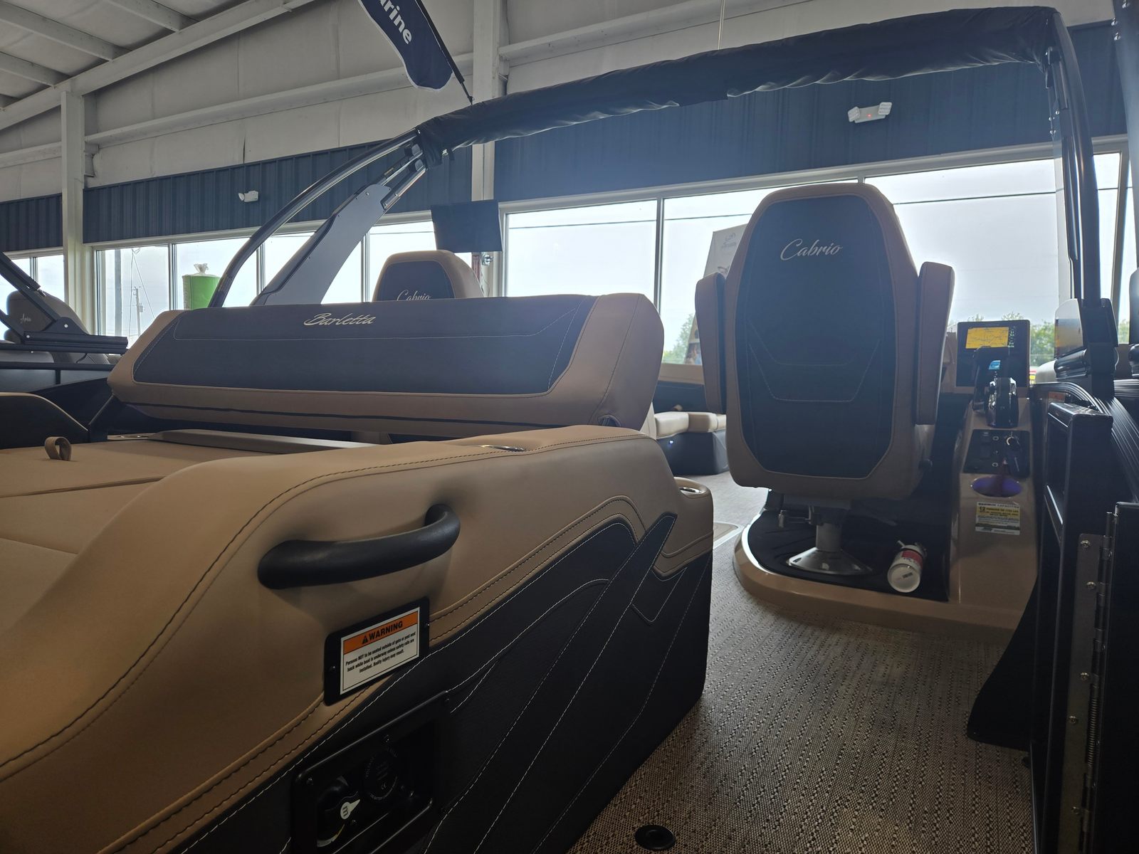 Step aboard the Cabrio C22UC and discover a world of comfort and convenience. The Black Diamond Railskin color, paired with the Blackout Package Cabrio, gives this pontoon a sleek, modern appearance that’s sure to turn heads at the marina. Inside, the Carmella Tan furniture with Onyx accents creates a warm, inviting atmosphere, while the Amore Tan flooring adds a touch of elegance and practicality.One of the standout features is the Triple Toon Package with midship storage, providing enhanced stability, performance, and ample space for your gear. The Sport Bimini canvas, installed in place of the standard bimini, offers superior shade and protection from the sun, ensuring you and your guests stay comfortable during long days on the water. The onboard battery charger with two batteries guarantees reliable power for all your electronics and accessories, so you can focus on enjoying your time afloat.