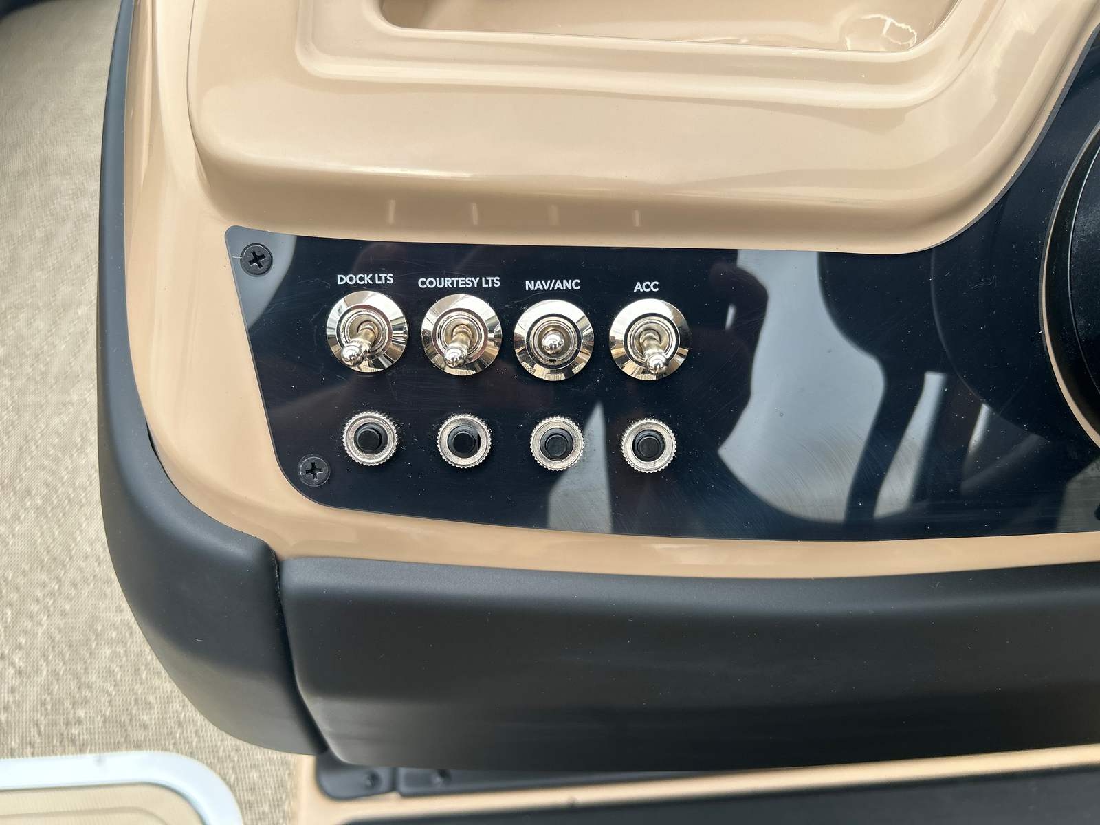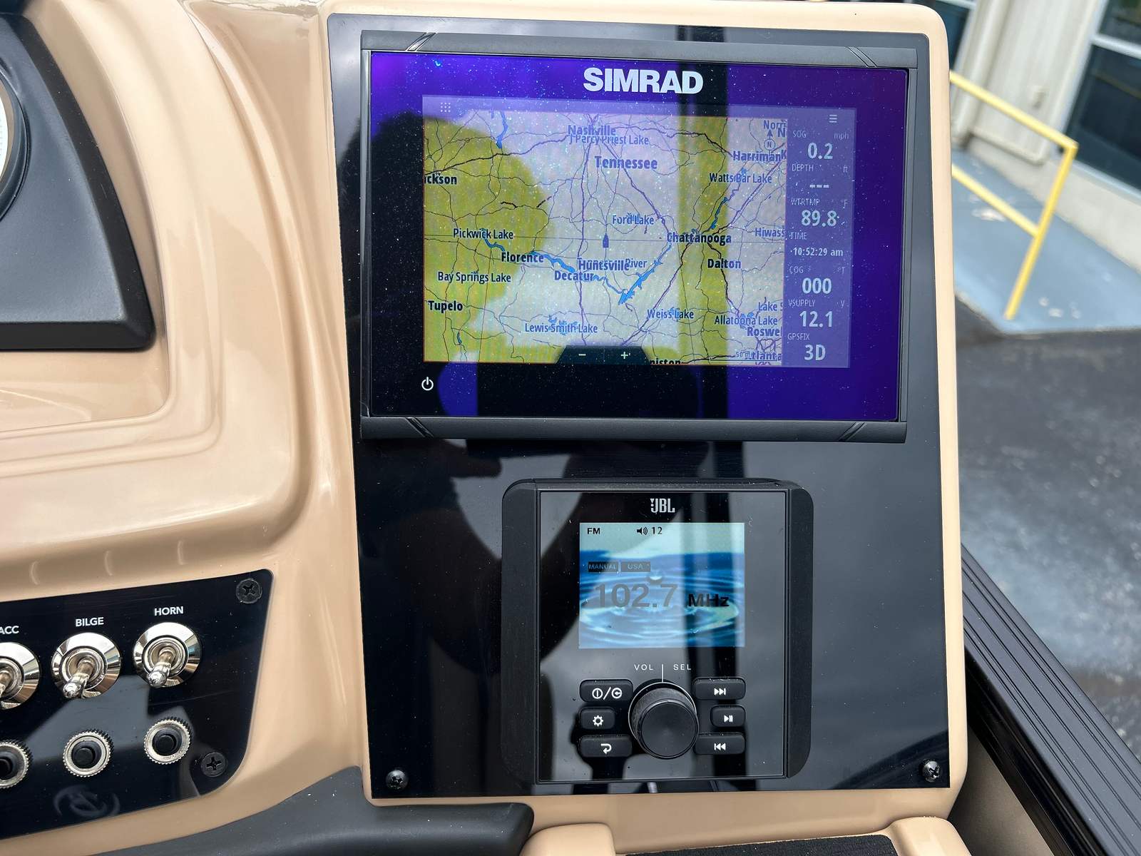 The Barletta Cabrio C24M is packed with premium features designed to enhance your boating experience. The Simrad 7" G07 XSR Chartplotter/Multifunction Display puts navigation and system controls at your fingertips, making it easy to plot your course, monitor performance, and stay informed while on the water. The Interior RGB Lighting Package Cabrio allows you to set the perfect mood for any occasion, with customizable colors that illuminate the cabin and create a vibrant atmosphere.The Triple Toon Package with Midship Storage – Cabrio adds stability, buoyancy, and extra storage space, making it easier to stow gear and keep the deck organized. The Sport Bimini (installed in place of the standard bimini) offers superior shade and protection from the sun, ensuring comfort during long days outdoors. Exterior lighting, including white underdeck and underwater lights, enhances visibility and safety while adding a stylish touch to evening cruises.