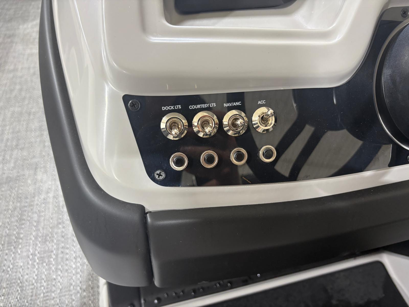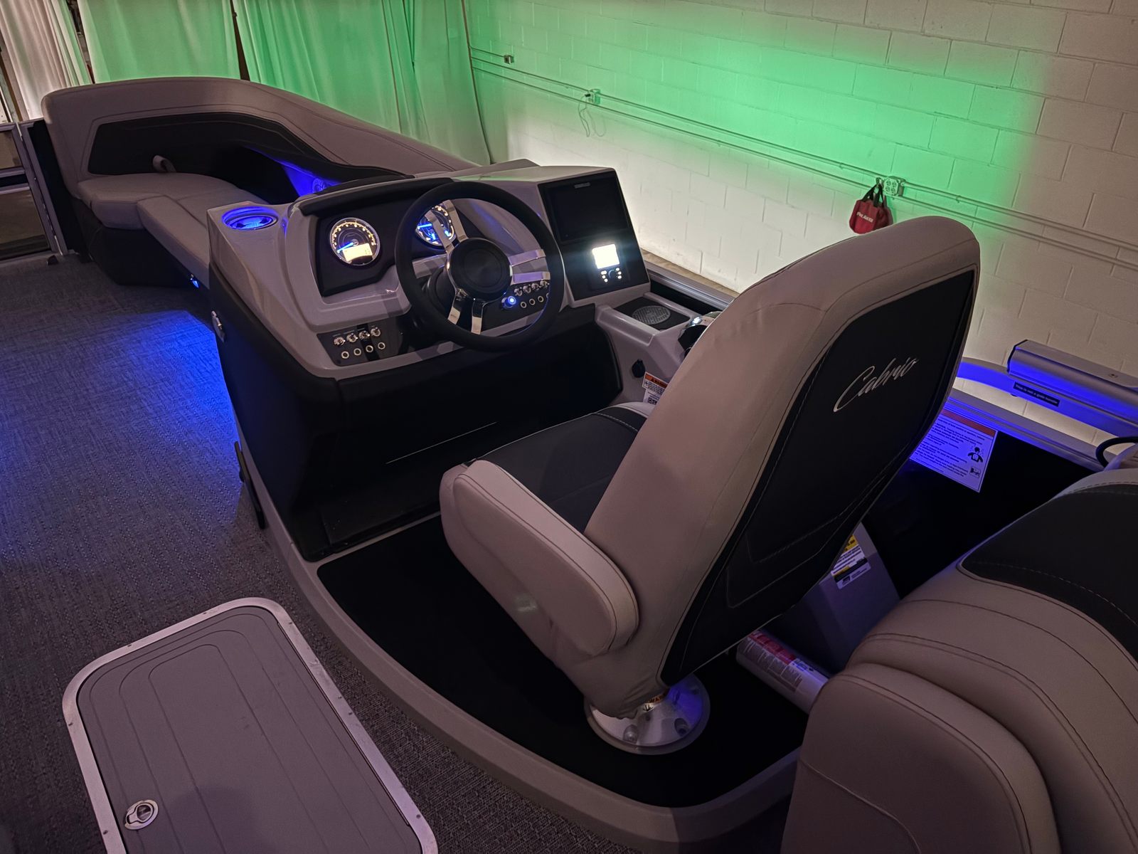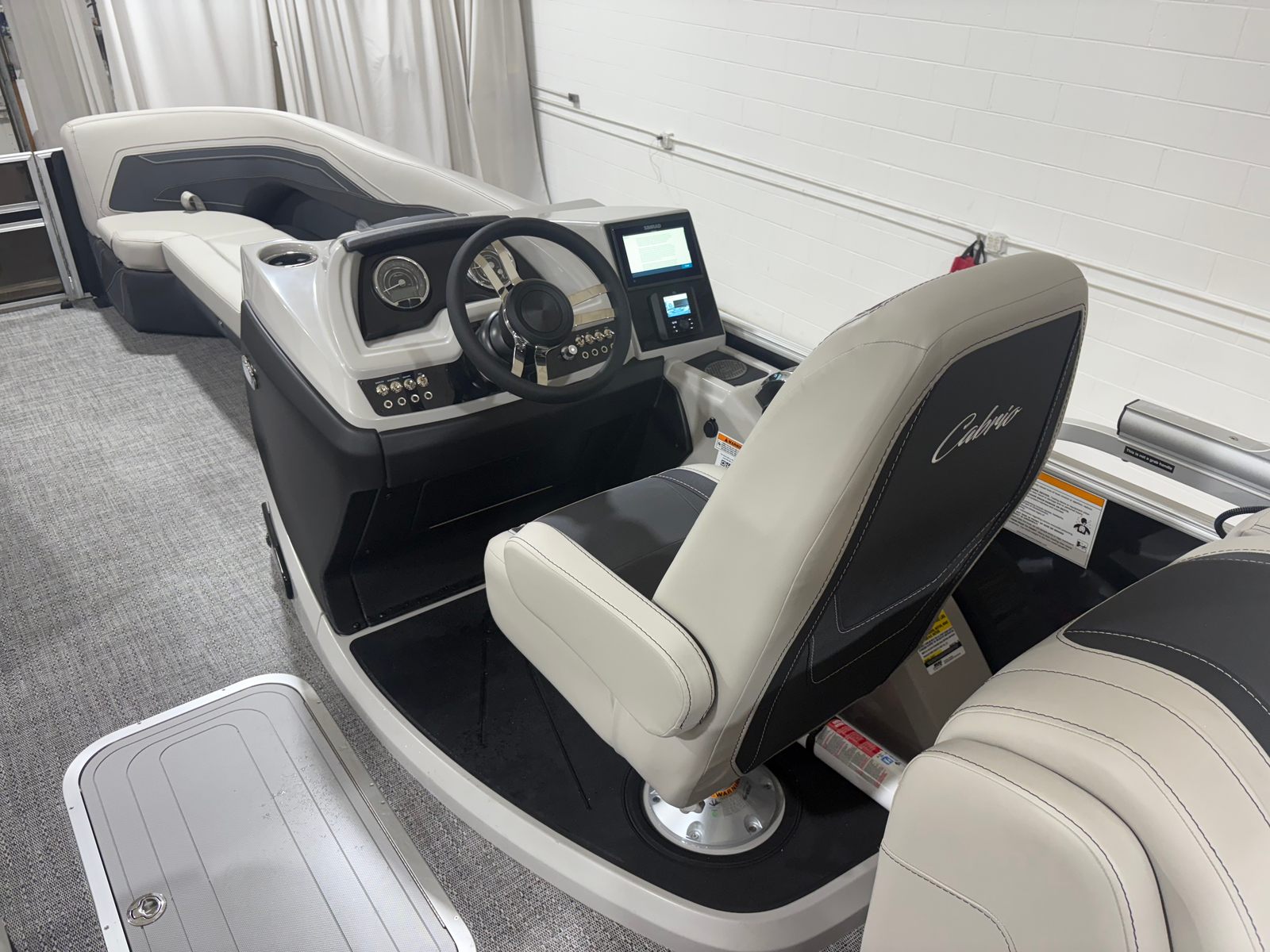 The Barletta Cabrio C24Q is equipped with a host of premium features designed to maximize comfort, convenience, and style. The striking Railskin Color in Black Diamond gives the pontoon a sleek, modern appearance, while the Marquesan Gray with Onyx furniture offers plush seating and a sophisticated aesthetic. The Amore Gray flooring is both durable and attractive, providing a comfortable surface that’s easy to maintain.One of the standout features is the Triple Toon Package with midship storage, which enhances stability and provides additional space for gear, water toys, or personal items. The interior RGB lighting package creates a customizable ambiance, perfect for evening cruises or festive gatherings. The Simrad 7" G07 XSR chartplotter/multifunction display delivers advanced navigation and system monitoring, ensuring you stay informed and in control throughout your journey.Additional touches like the stainless steel flag pole with an American flag add a sense of pride and distinction, while the rigging with a stainless steel prop ensures optimal performance and longevity.