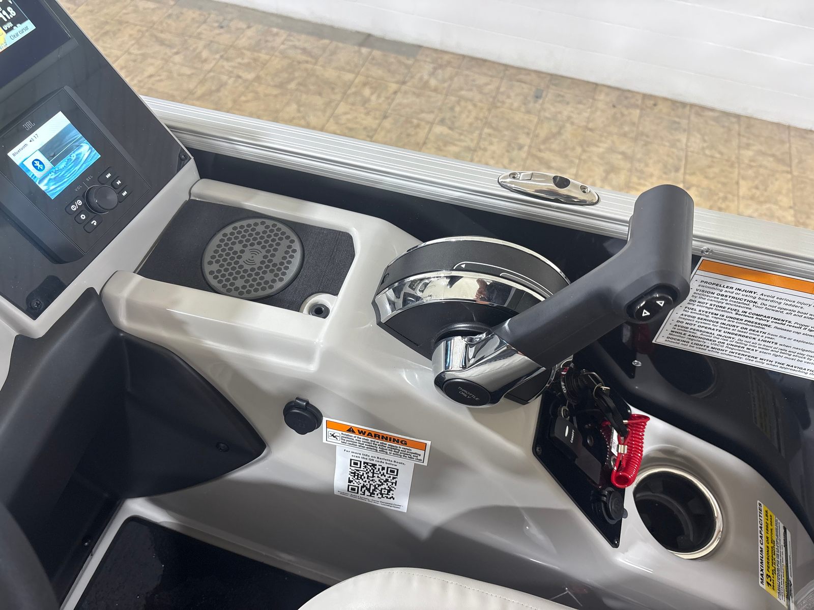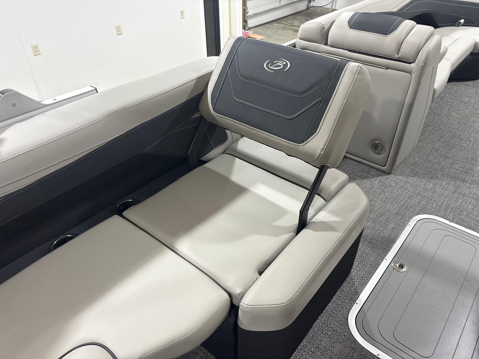 The Barletta Cabrio C24Q is designed with practicality in mind, making ownership as enjoyable as the time spent on the water. The midship storage compartment offers convenient space for stowing life jackets, fishing gear, or picnic supplies, keeping the deck clutter-free and organized. The durable flooring is easy to clean, ensuring your pontoon stays looking its best with minimal effort.Docking and maneuvering are simplified thanks to the power assist steering and reliable Mercury engine, allowing you to navigate marinas and tight spaces with ease. The efficient engine design helps maximize fuel economy, so you can spend more time cruising and less time refueling. The multifunction display provides real-time data and navigation support, making every outing safer and more enjoyable.