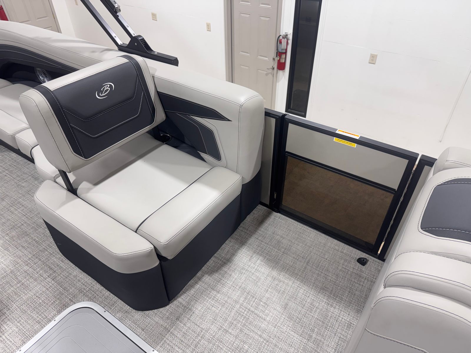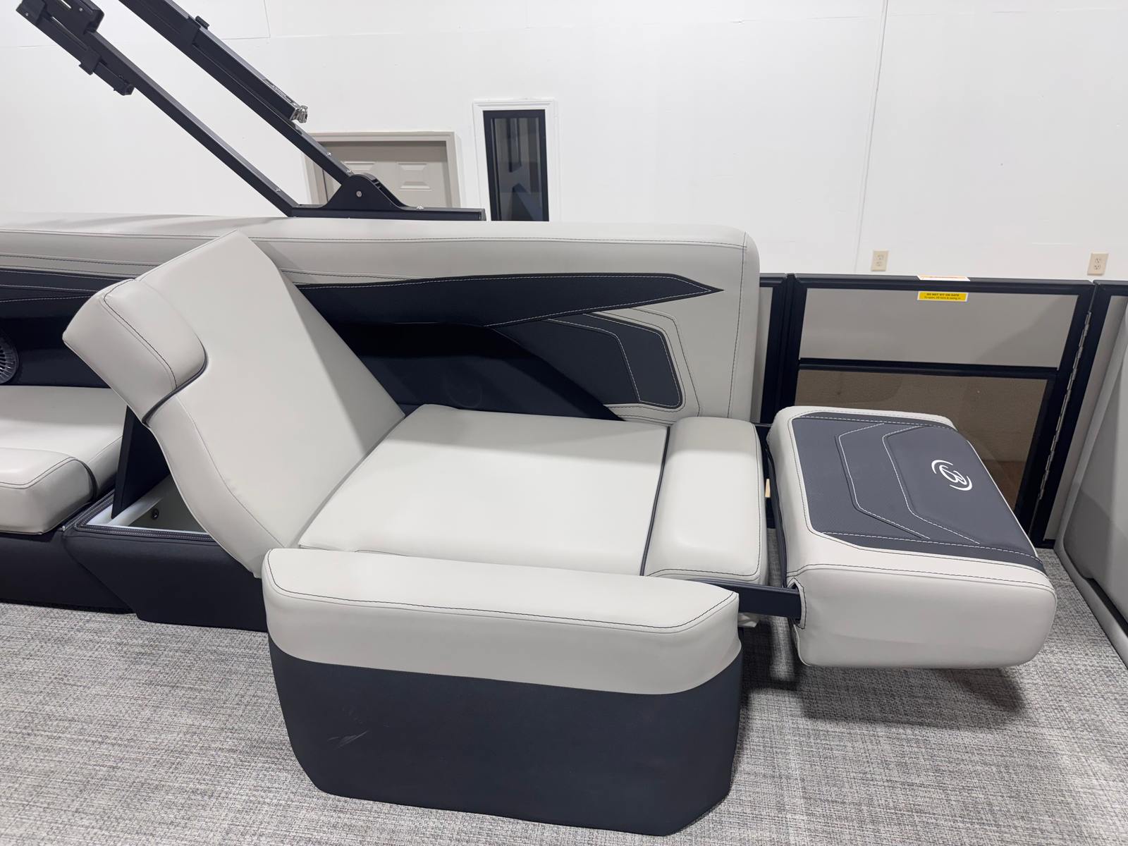 The Barletta Cabrio C24Q is loaded with special features that elevate your boating experience. The striking Gray Moonstone railskin color, accented by Champagne highlights and the Blackout Package Cabrio, gives this pontoon a modern and sophisticated look that is sure to turn heads at the marina. Inside, the Marquesan Gray furniture with Onyx accents creates a luxurious and inviting atmosphere, perfectly complemented by the Amore Gray flooring that is both stylish and easy to maintain.One of the standout features is the Triple Toon Package with midship storage, exclusive to the Cabrio series. This configuration enhances stability and handling, while the additional storage space ensures you have room for all your gear, water toys, and essentials. The clipped playpen cover with poles offers convenient protection from the elements, keeping your pontoon boat in pristine condition when not in use.