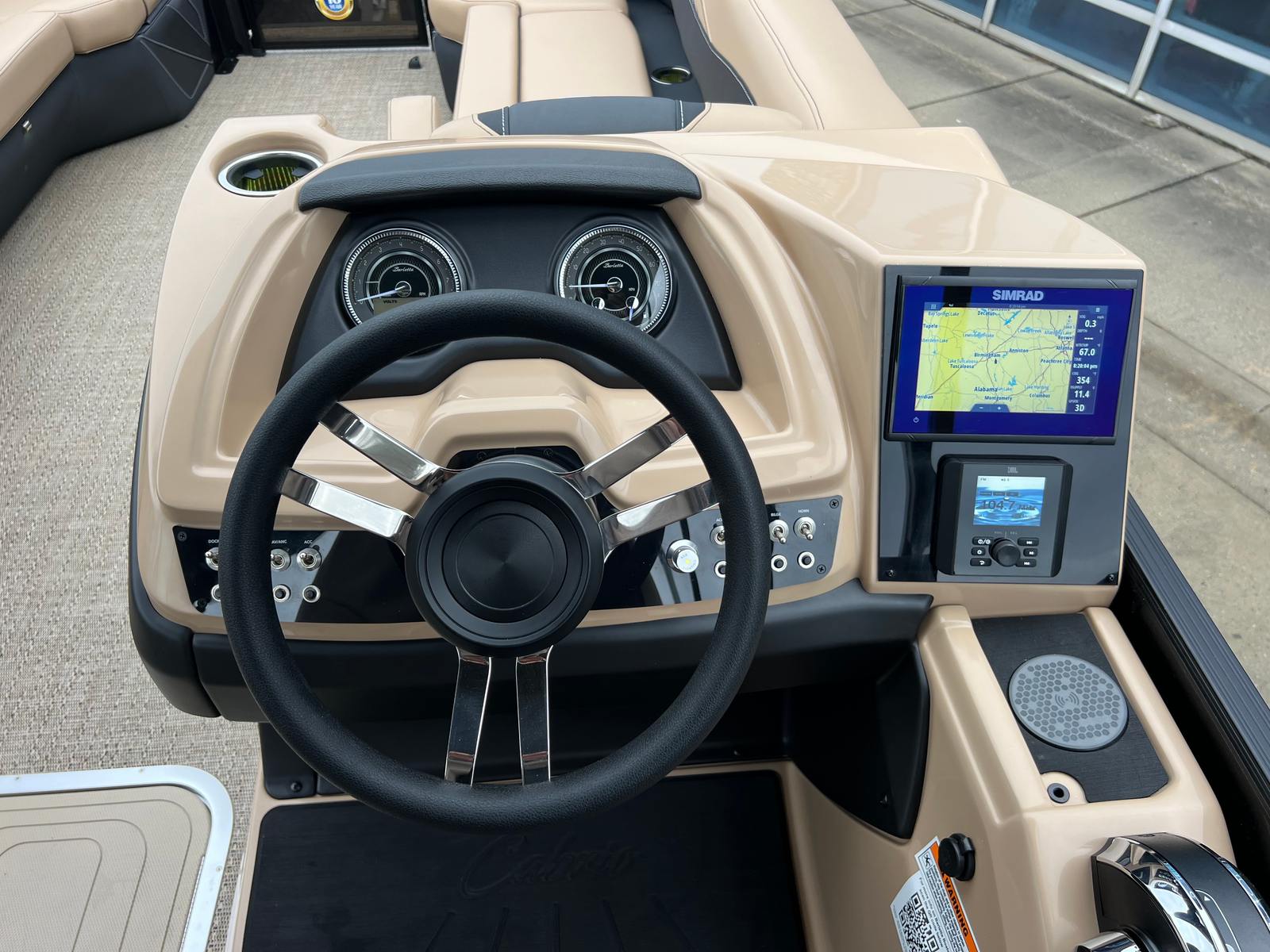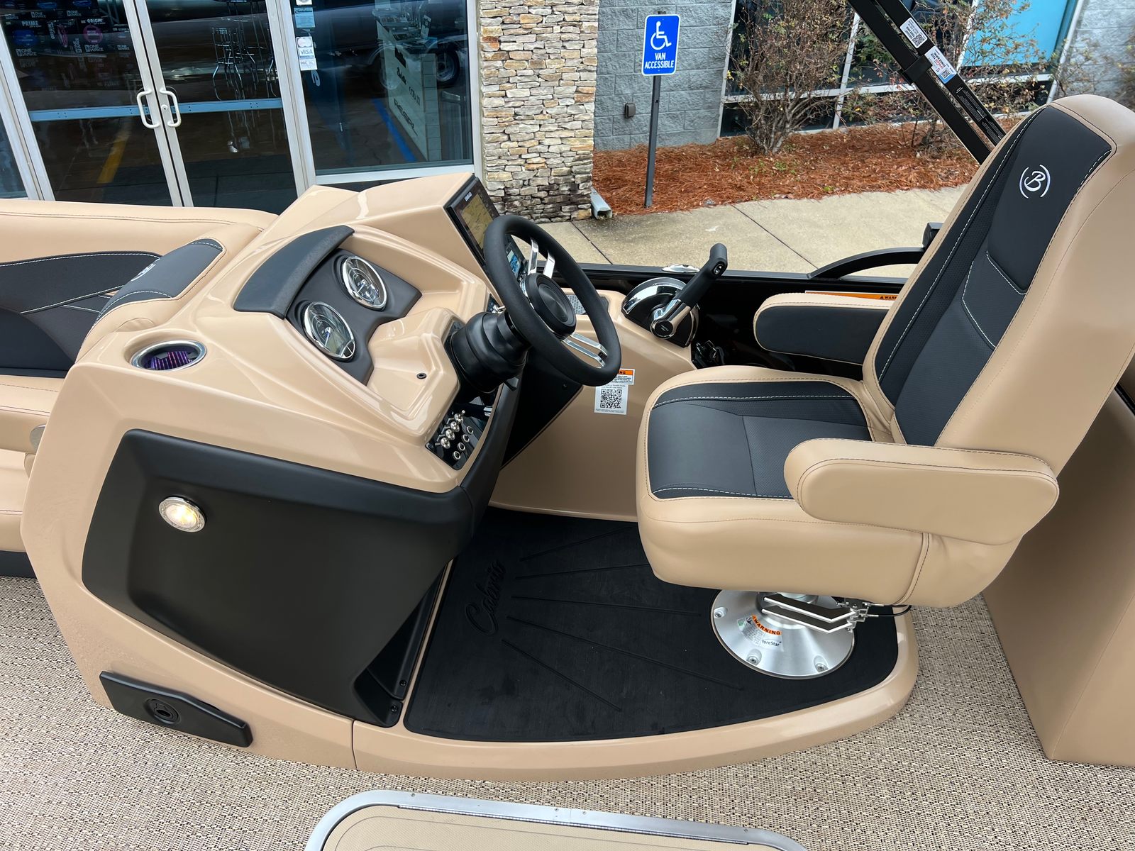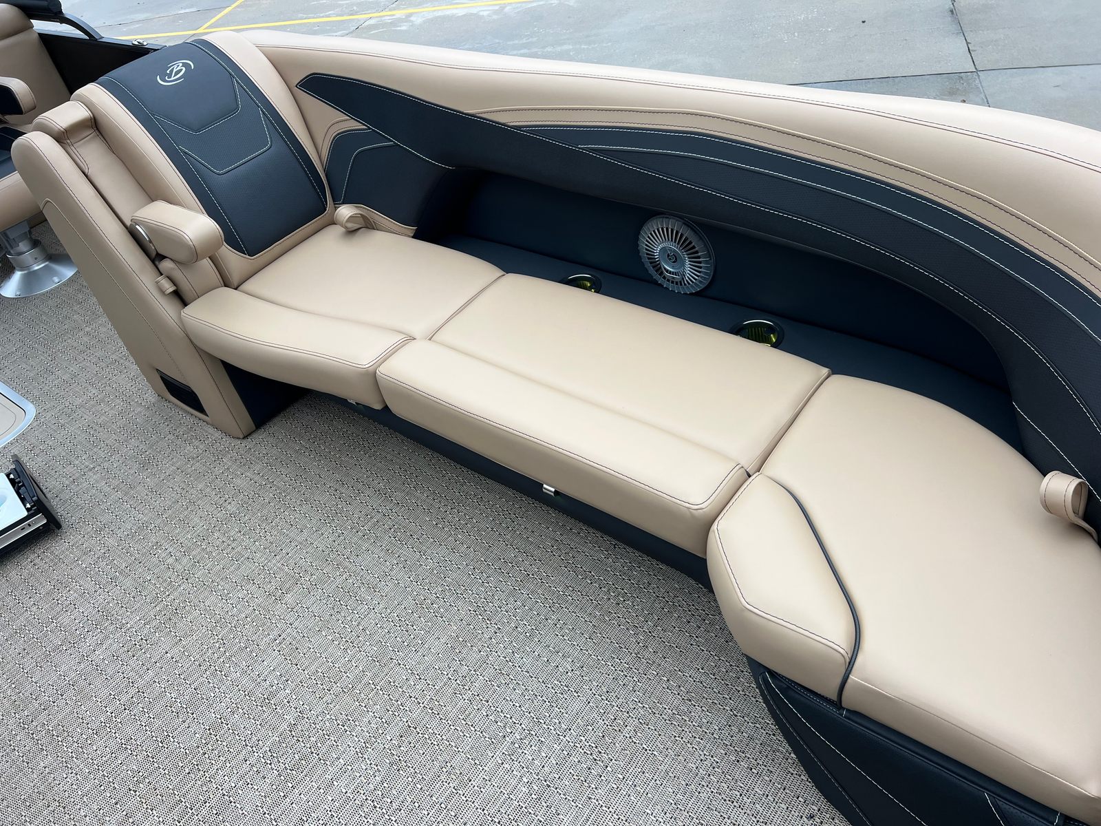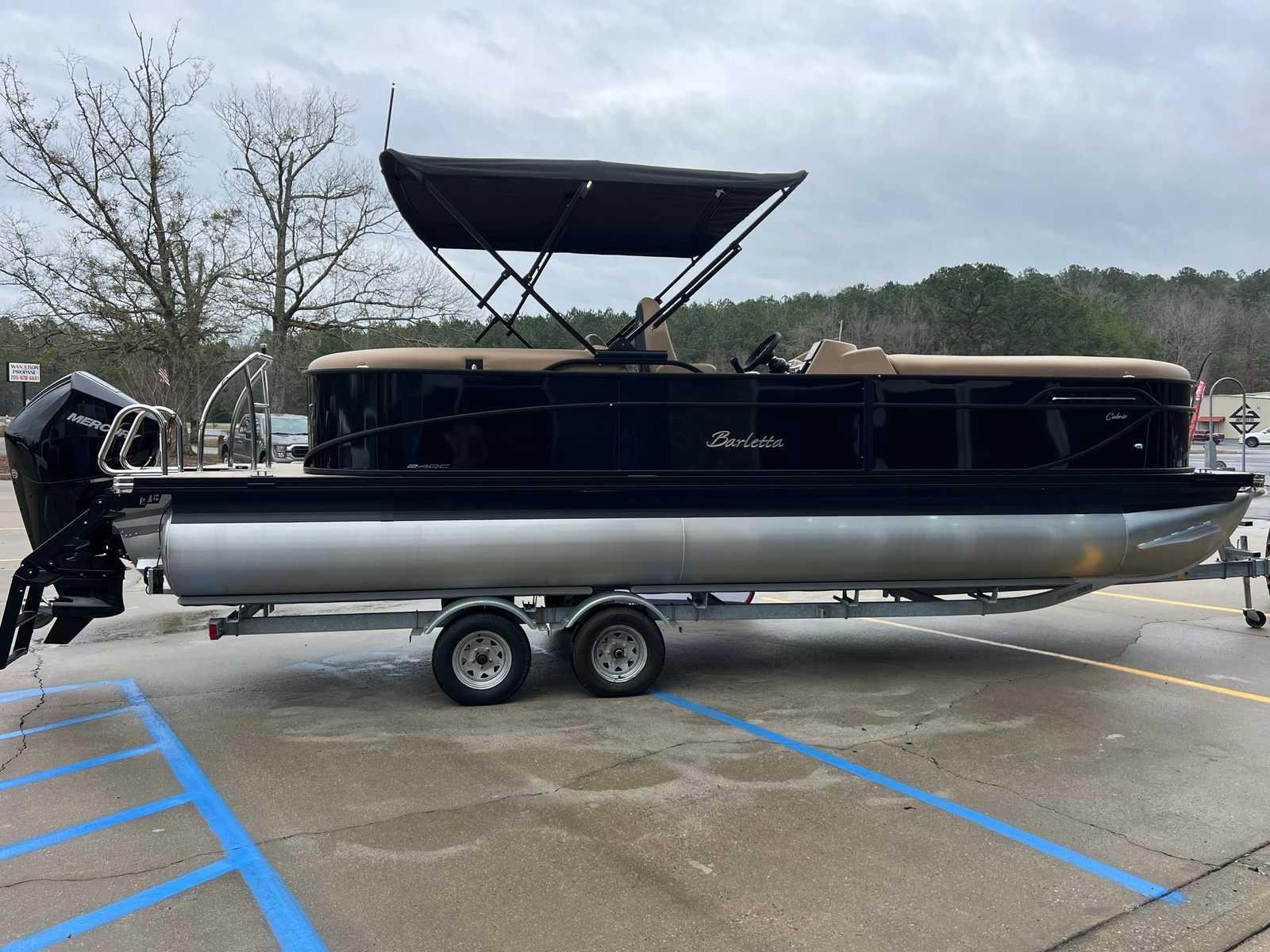 The Barletta Cabrio C24QC is loaded with features that set it apart from other pontoon boats for sale. The Black Diamond Railskin color, paired with the Blackout Package, gives this pontoon a bold, modern look that is sure to turn heads at the marina. Inside, the Carmella Tan with Onyx furniture offers plush seating and a sophisticated aesthetic, while the Amore Tan flooring provides a comfortable, slip-resistant surface underfoot.The triple toon package with midship storage not only improves performance but also adds valuable storage space for gear, water toys, and personal items. The onboard battery charger with two batteries ensures you have reliable power for all your electronics and accessories, while the metal jacket protectant helps keep your pontoon looking pristine season after season. A stainless steel flag pole with an American flag adds a patriotic touch, perfect for holiday weekends and special occasions.