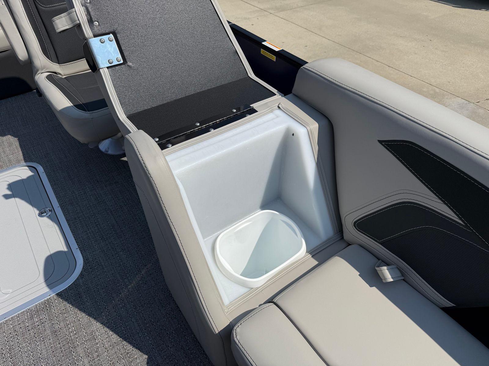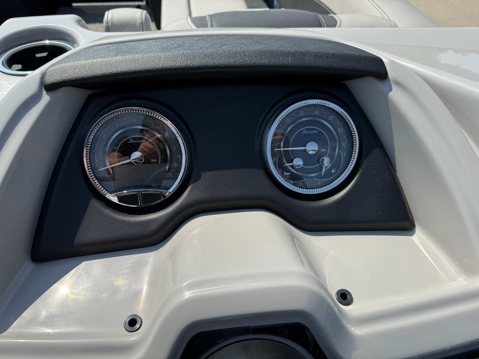 Step aboard and discover a world of comfort and convenience. The Marquesan Gray furniture with Onyx accents creates a luxurious and inviting atmosphere, perfect for relaxing with family and friends. The Amore Gray flooring is both stylish and practical, offering a soft underfoot feel and easy maintenance. The triple toon package with midship storage not only enhances performance but also provides valuable space for storing gear, water toys, and essentials, keeping your deck clutter-free and organized.The onboard battery charger with two batteries ensures you have reliable power for all your electronics and accessories, so you can enjoy extended days on the water without worry. The Blackout Package Cabrio adds a sleek, modern touch to the boat’s exterior, while the railskin color and accent combination make a bold statement. Every detail of the Cabrio C24UC is designed to elevate your boating experience, from the premium materials to the thoughtful layout.