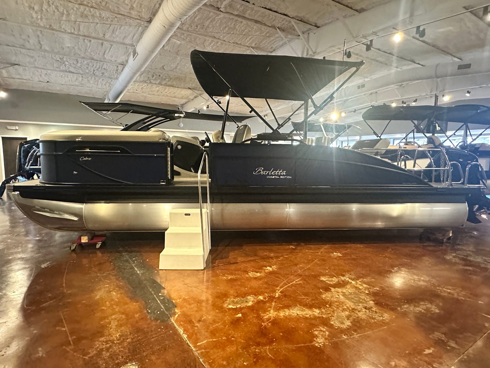 The 2026 Barletta Cabrio C24UE is a standout pontoon boat for sale, combining cutting-edge design, powerful performance, and luxurious features in one impressive package. With its Mercury 200L 4S engine, Bohemian Blue railskin, Blackout Package Cabrio, Marquesan Gray with Onyx furniture, Amore Gray flooring, Coastal Edition Cabrio enhancements, Triple Toon Package with midship storage, and patriotic flag pole, this Barletta boat for sale is ready to exceed your expectations.If you’re looking to upgrade your boating lifestyle with a new pontoon that offers comfort, style, and versatility, the Cabrio C24UE is an exceptional choice. Discover the joy of owning a Barletta and make every day on the water a celebration. Contact your dealer today to learn more about this incredible pontoon boat and take the first step toward your next adventure.