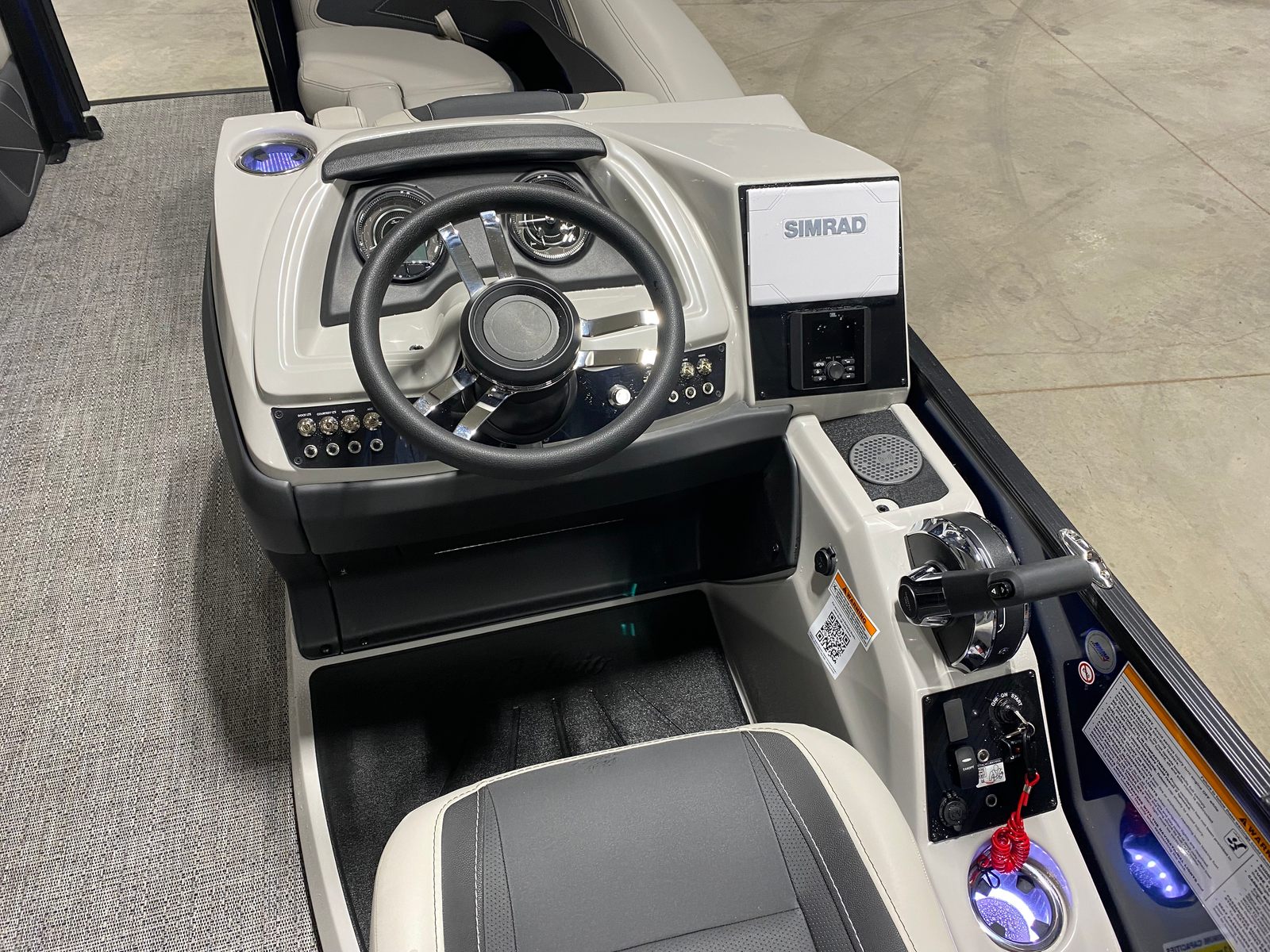 Power and reliability are at the heart of the Barletta Cabrio C24UE. Equipped with a single Mercury (M) 250L FourStroke engine, this pontoon delivers an impressive 250 horsepower, ensuring smooth acceleration and responsive handling. The Mercury mechanical system with power assist makes steering effortless, allowing you to navigate tight turns and busy waterways with confidence. Whether you’re cruising at a leisurely pace or picking up speed for water sports, the Cabrio C24UE’s performance capabilities are sure to impress. The triple toon package with midship storage enhances stability and ride quality, providing a smooth and enjoyable experience for everyone onboard.
