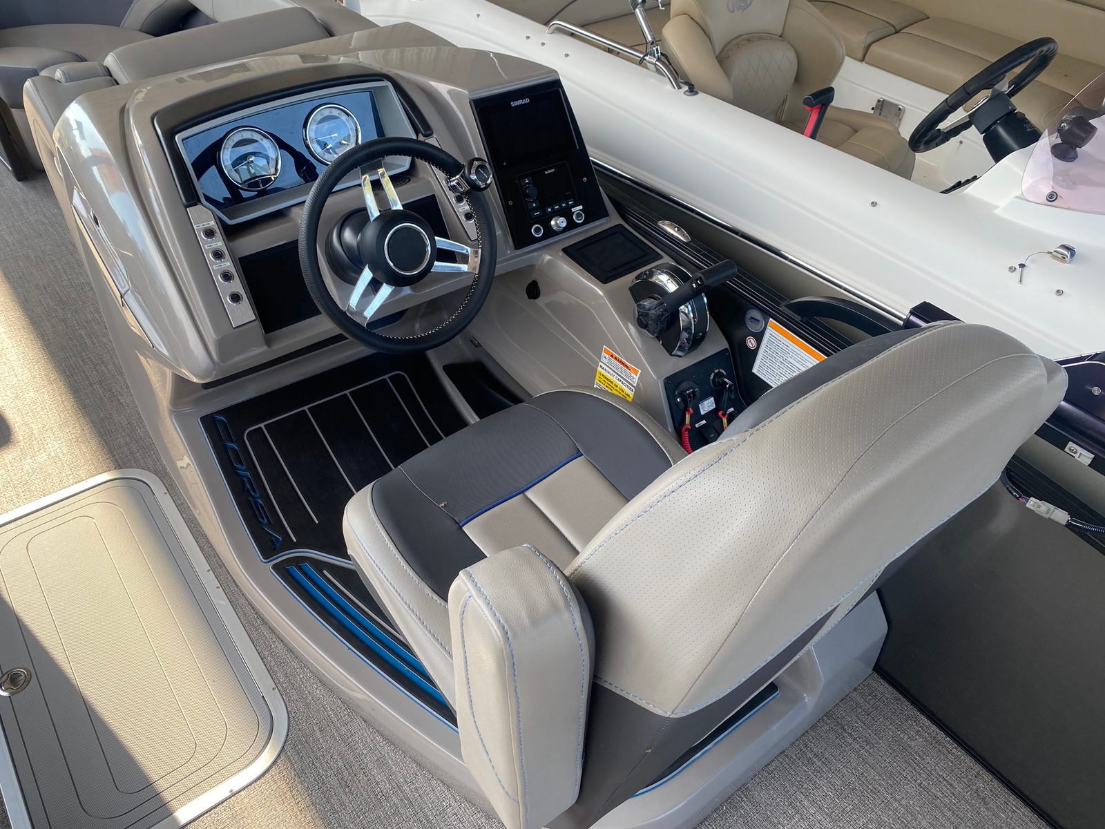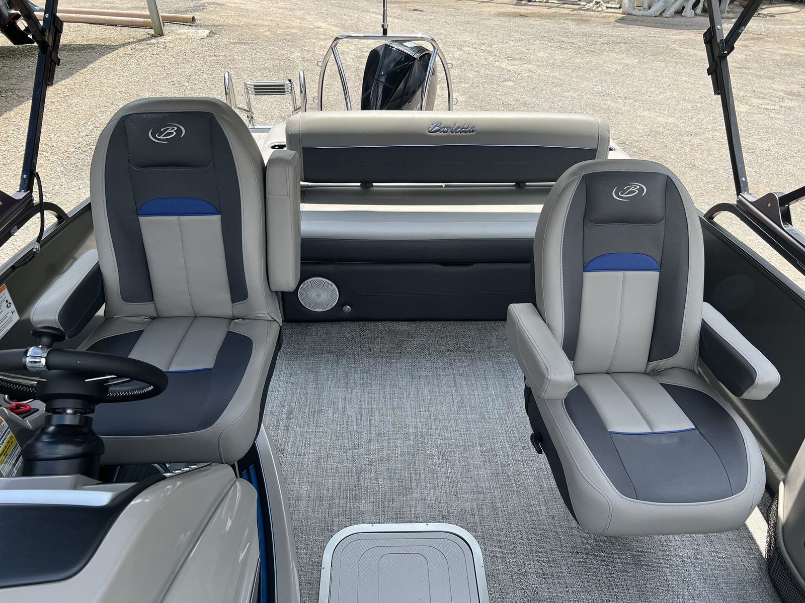 The Barletta Corsa 23UC is thoughtfully designed with features that enhance both comfort and functionality. Its spacious 23-foot deck provides plenty of room for guests to move around, lounge, and enjoy the scenery. The modern design elements and high-quality materials used throughout the boat create an inviting and stylish atmosphere. The seating is plush and ergonomically designed, ensuring that everyone on board can relax in comfort during long days on the water. The layout is optimized for socializing, with ample seating areas that encourage conversation and connection.This pontoon boat is also equipped with practical features that make every outing more enjoyable. The intuitive helm station puts you in complete control, with easy-to-read gauges and responsive controls that make navigation a breeze. The deck layout allows for easy movement and access to all areas of the boat, while the sturdy construction ensures safety and stability even in choppier conditions. The Barletta Corsa 23UC is built to last, with attention to detail evident in every aspect of its design.