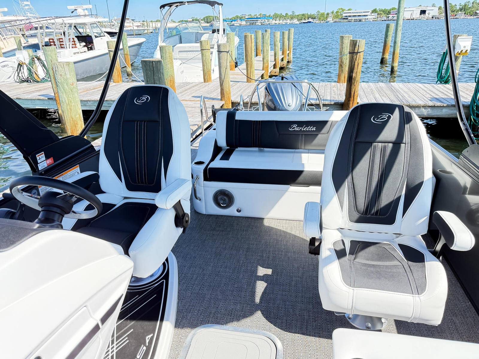 The Barletta Corsa 25UC shines in a variety of settings, making it a versatile addition to any boating lifestyle. Picture yourself hosting lively gatherings with friends, enjoying leisurely family outings, or embarking on spontaneous weekend getaways. The spacious layout and entertainment features make it perfect for social events, while the powerful Yamaha engine and advanced steering system provide the performance needed for water sports or exploring new destinations.Whether you’re seeking a relaxing day of sunbathing and swimming, a fun-filled afternoon of tubing and wakeboarding, or a peaceful evening cruise under the stars, this pontoon boat adapts to your every need. Its blend of luxury, performance, and practicality ensures that every outing is memorable.