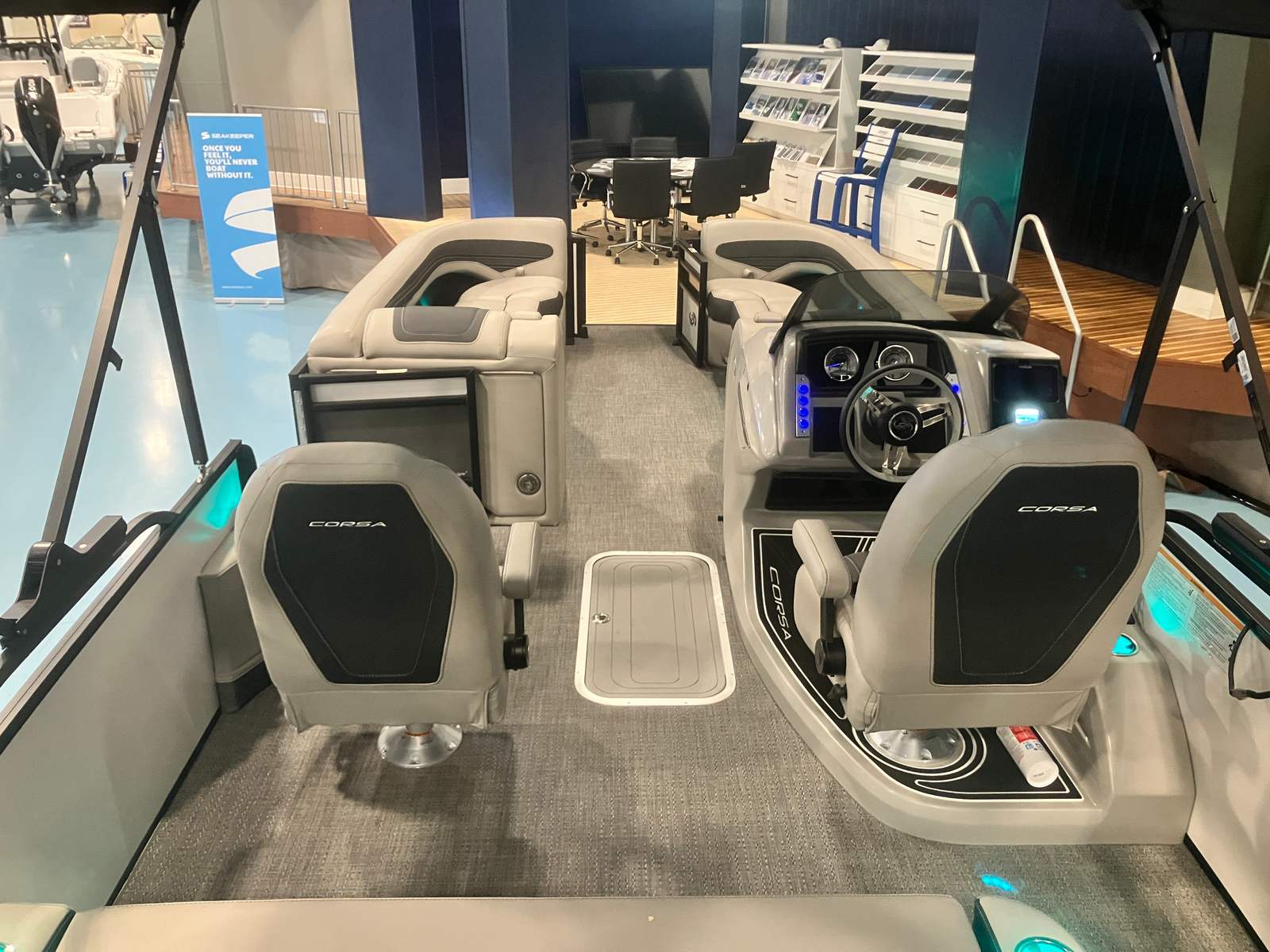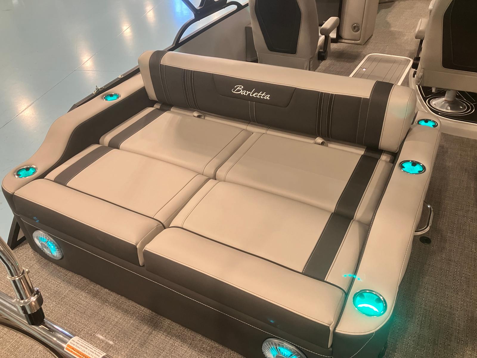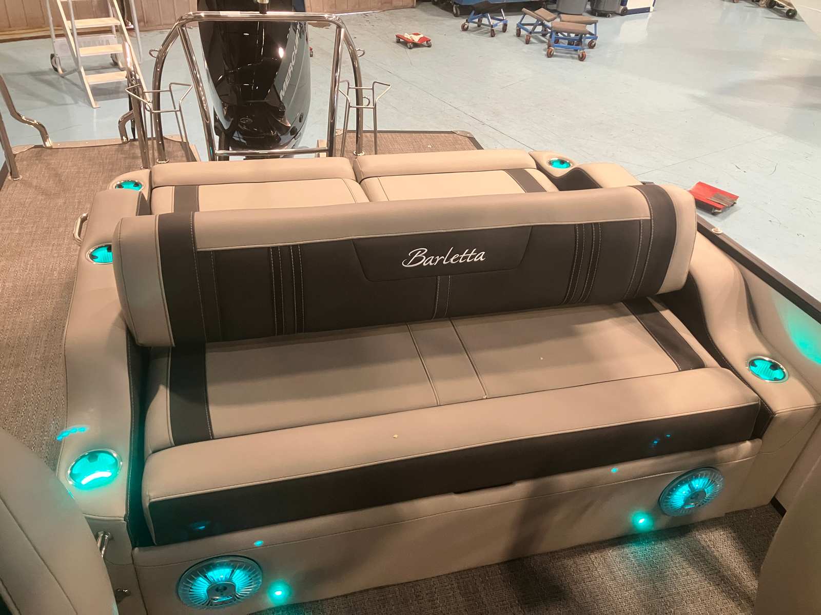 Beyond its luxurious features and impressive performance, the Barletta Corsa 25UC is designed with practicality in mind. The spacious layout provides ample room for storage, making it easy to bring along all your essentials for a day on the water. The pontoon’s length and design contribute to stability and ease of docking, allowing for stress-free arrivals and departures at any marina or dock. The efficient Mercury 400L Verado V10 engine is engineered for reliability and fuel efficiency, so you can spend more time enjoying the water and less time worrying about refueling.The durable flooring and high-quality upholstery are built to withstand the rigors of boating life, ensuring your investment remains beautiful and functional season after season. Every aspect of the Corsa 25UC is crafted to enhance your boating experience, from the moment you step aboard to the time you return to shore.