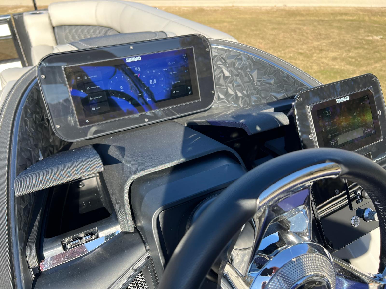 At the heart of the Barletta Lusso L23M is a powerful Mercury (D) 300L Verado V8 engine, delivering an impressive 300 horsepower. This robust engine ensures exhilarating acceleration, smooth cruising, and reliable performance, whether you are exploring calm lakes or venturing into open waters. The Mercury Digital DTS Pre-Rig for VERADO engines with Vessel Link provides seamless integration and advanced control, allowing you to navigate with confidence and precision. Hydraulic and power assist steering make maneuvering effortless, while digital gauges offer real-time performance data at your fingertips. The rigging includes a stainless steel prop, maximizing efficiency and durability for a superior boating experience.