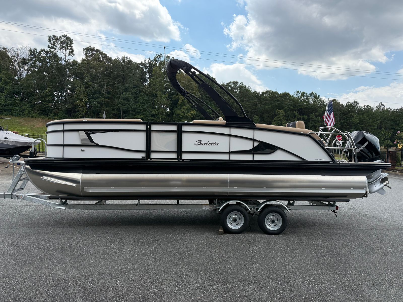 The 2026 Barletta Lusso L23M is a new pontoon that stretches an impressive 25.5 feet in length, offering ample space for passengers to unwind and enjoy the open water. With its sleek lines and modern design, this pontoon boat commands attention at every dock and marina. The Lusso L23M is meticulously crafted to provide both comfort and functionality, ensuring that every journey is as enjoyable as the destination. Its spacious deck layout is perfect for socializing, sunbathing, or simply taking in the scenic views, making it a versatile choice for a wide range of boating enthusiasts.