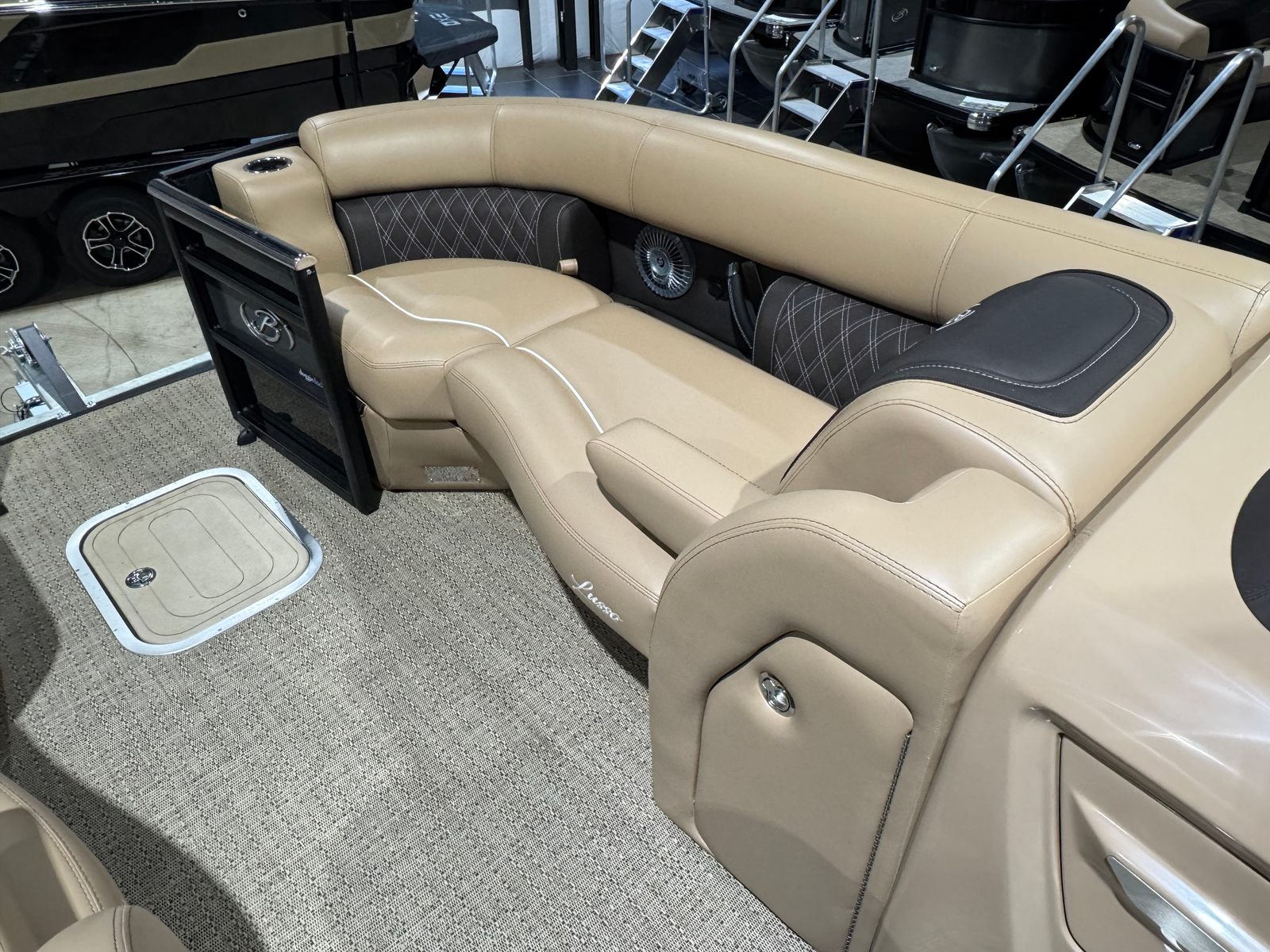 Powering this Barletta pontoon is a single, impressive 300-horsepower engine. This setup provides a thrilling blend of power and efficiency, allowing you to cruise effortlessly across the water or pick up speed for exhilarating rides. The Lusso L23M’s engine is engineered for smooth acceleration and reliable performance, ensuring that every journey is as enjoyable as the destination. Whether you are gliding across calm waters or navigating busier waterways, the Lusso L23M delivers a responsive and confident ride.