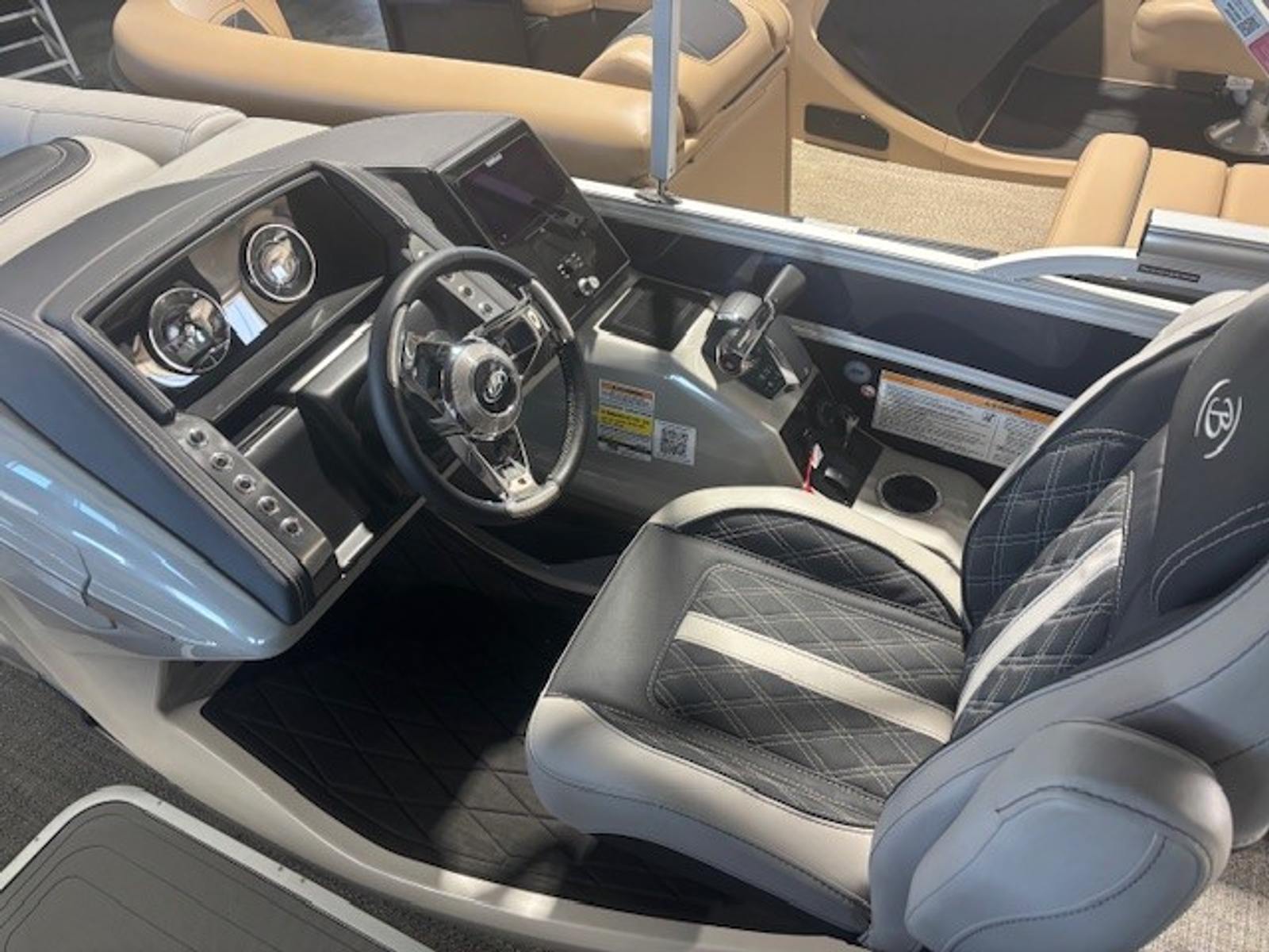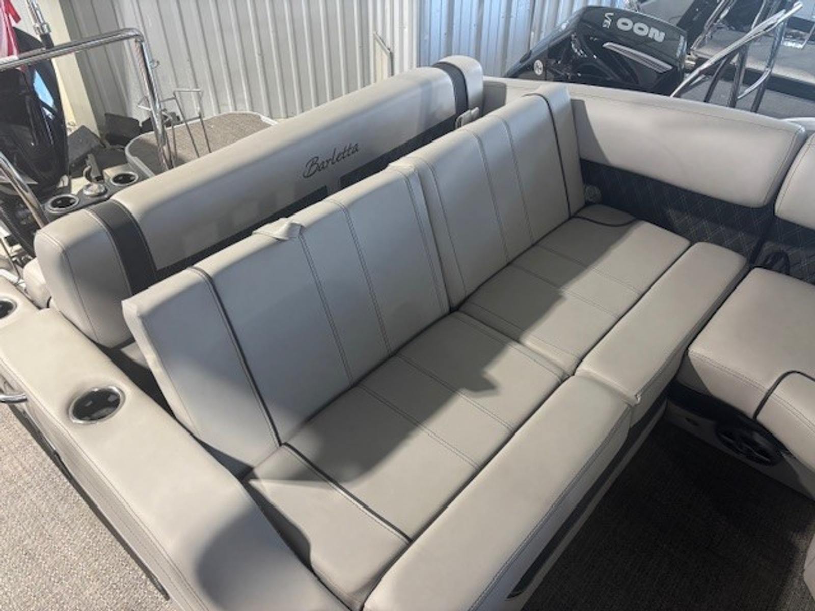 The 2025 Barletta Lusso L23U is a 25.5-foot pontoon that exudes sophistication and style. Its spacious layout and thoughtful design make it perfect for those who value both comfort and functionality. The Lusso L23U’s sleek profile is enhanced by its Black Diamond accent color and Blue Sapphire sweep, making it a true head-turner at any marina or on open water. As a new pontoon boat, it offers the latest advancements in marine technology and craftsmanship, ensuring a smooth and enjoyable ride every time you set out.