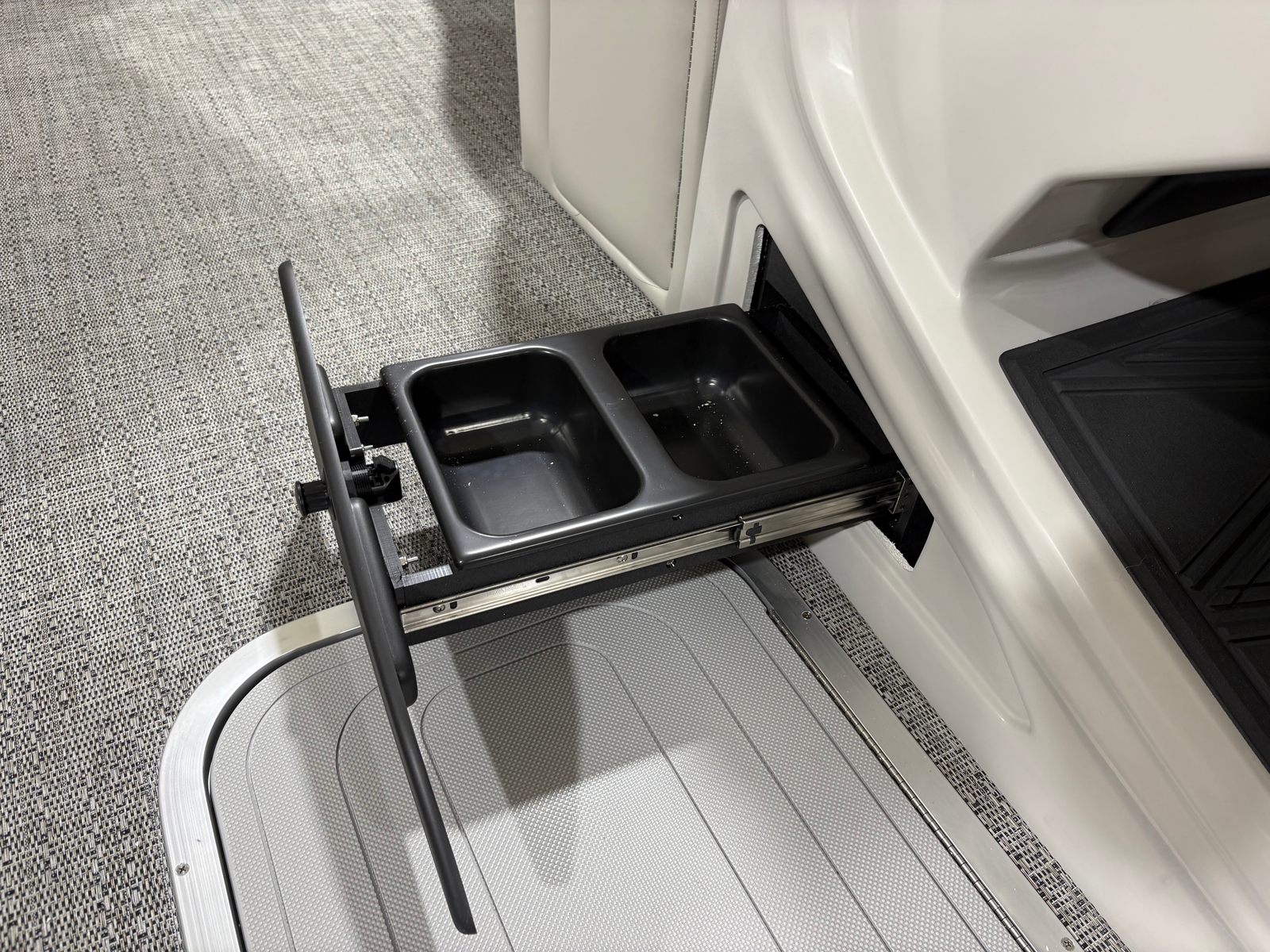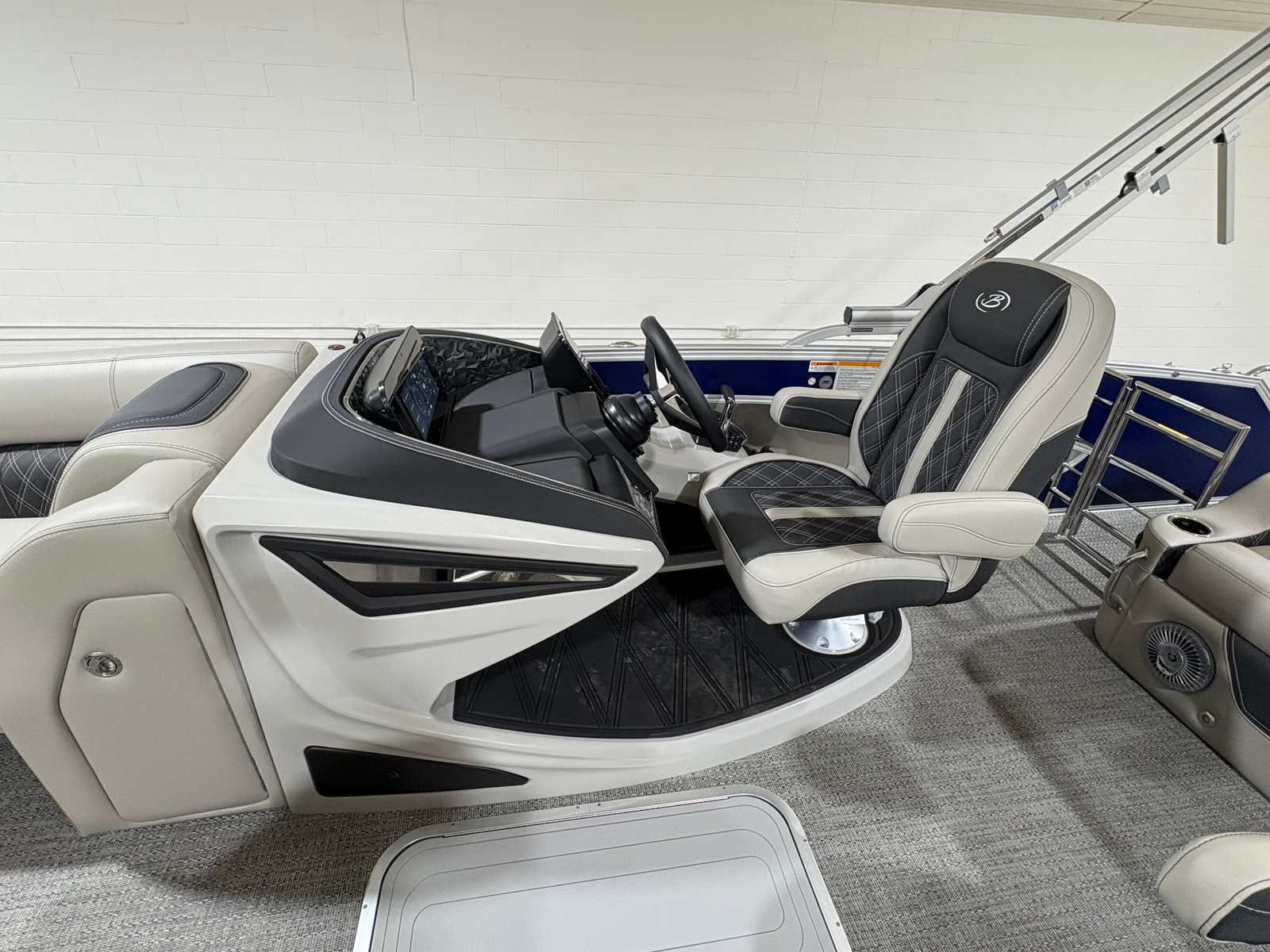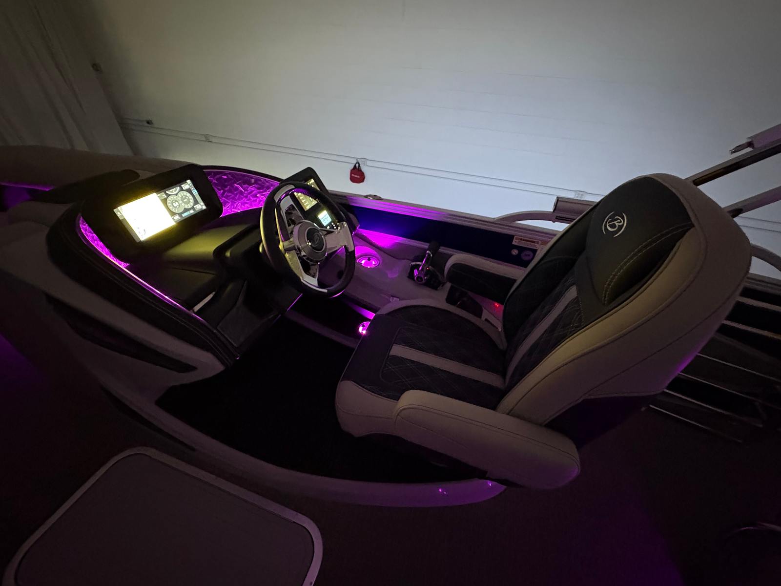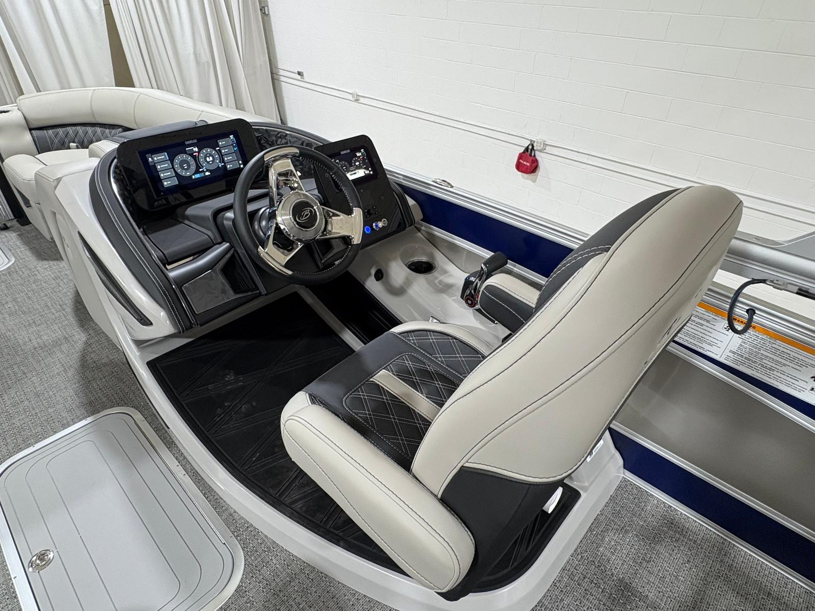At the heart of this pontoon is a Mercury (D) 250L Verado V8 engine, boasting an impressive 250 horsepower and only 1 engine hour. This powerhouse ensures smooth acceleration, responsive handling, and reliable performance, whether you’re gliding across calm waters or powering through a lively lake. The Mercury Digital DTS Pre-Rig for VERADO engines with Vessel Link provides cutting-edge digital throttle and shift technology, offering precise control and effortless operation. Hydraulic and power assist steering further enhances maneuverability, making docking and navigating tight spaces a breeze. The rigged engine features a stainless steel prop, maximizing efficiency and durability for years of worry-free boating.