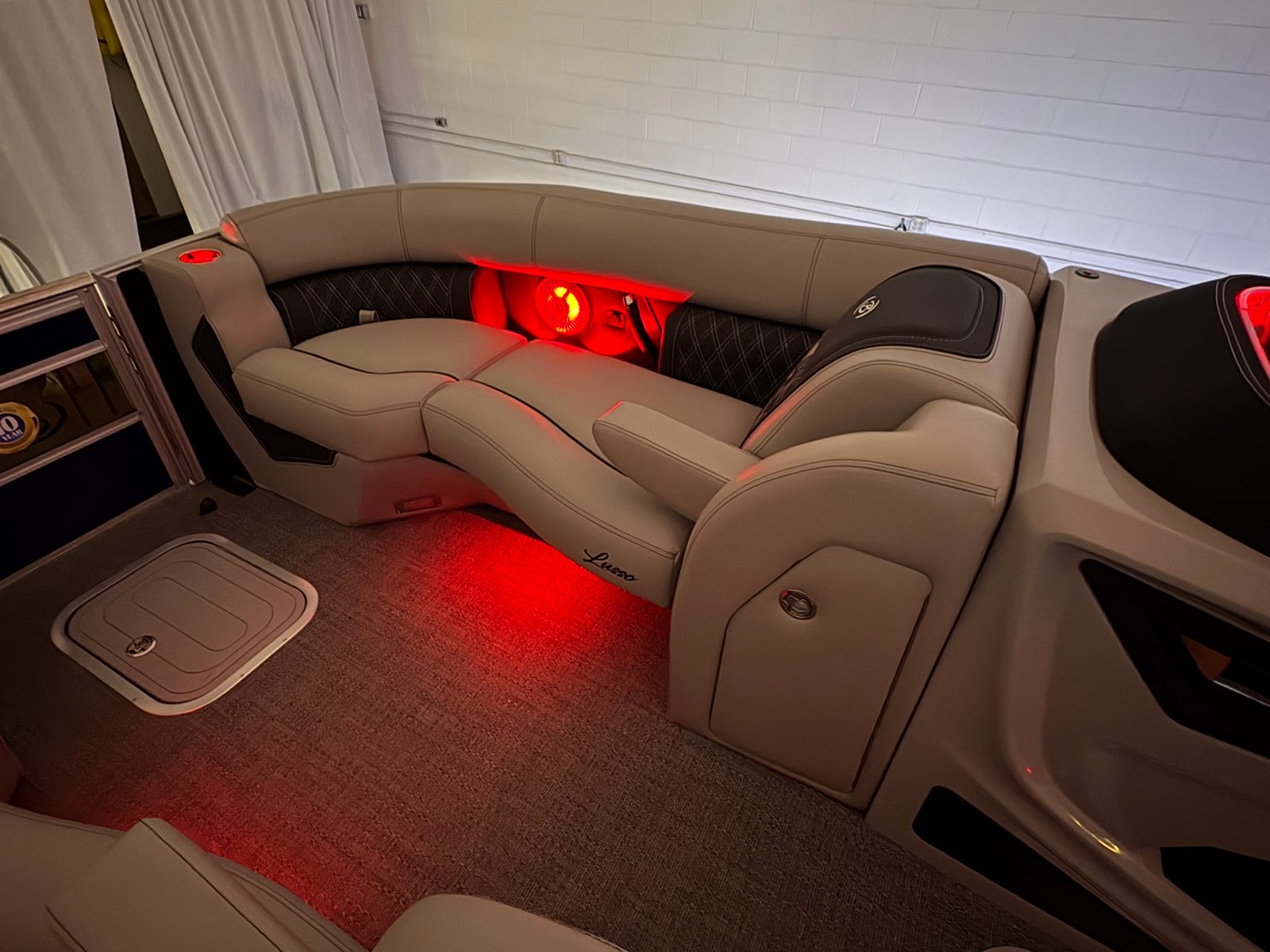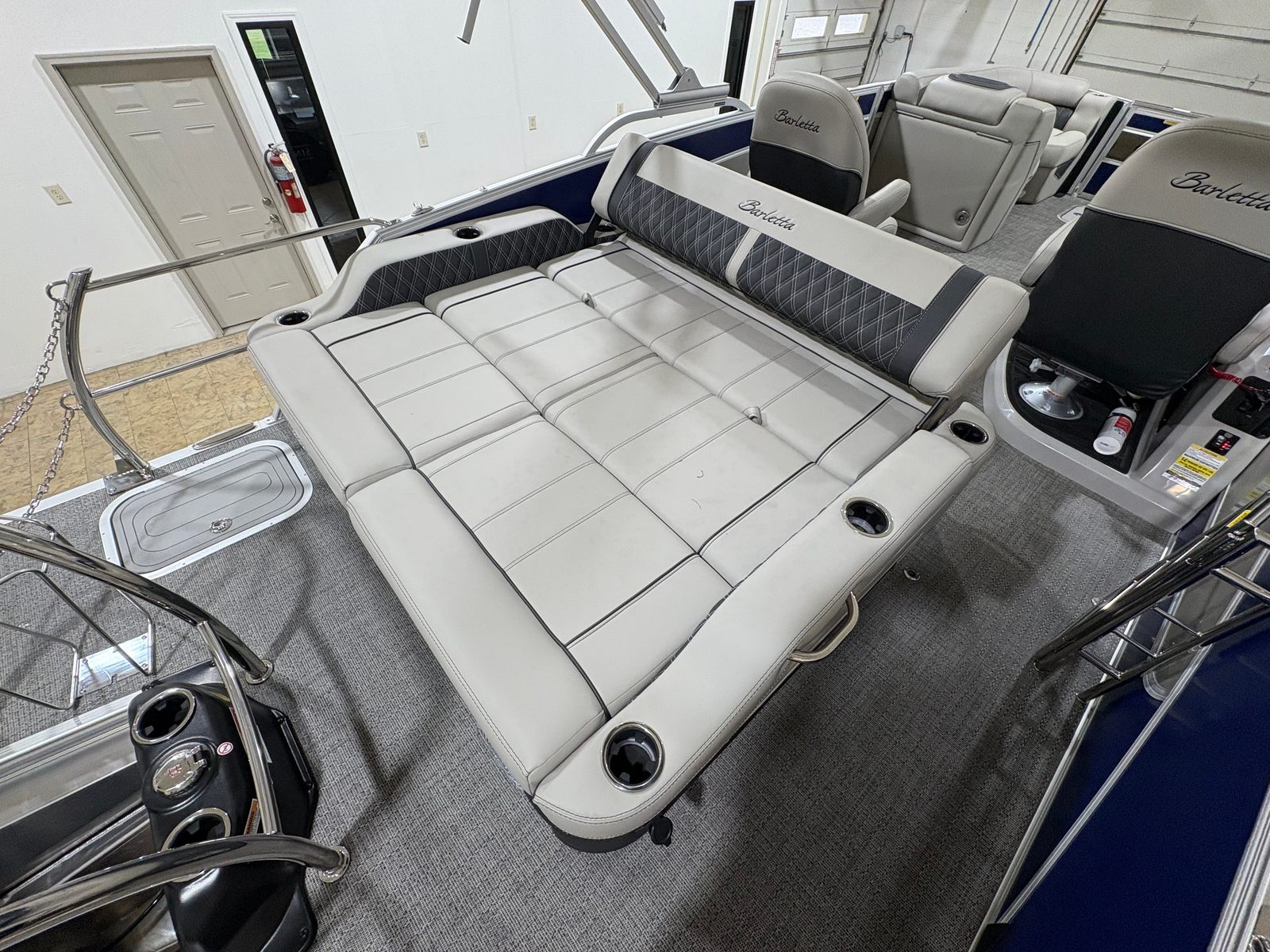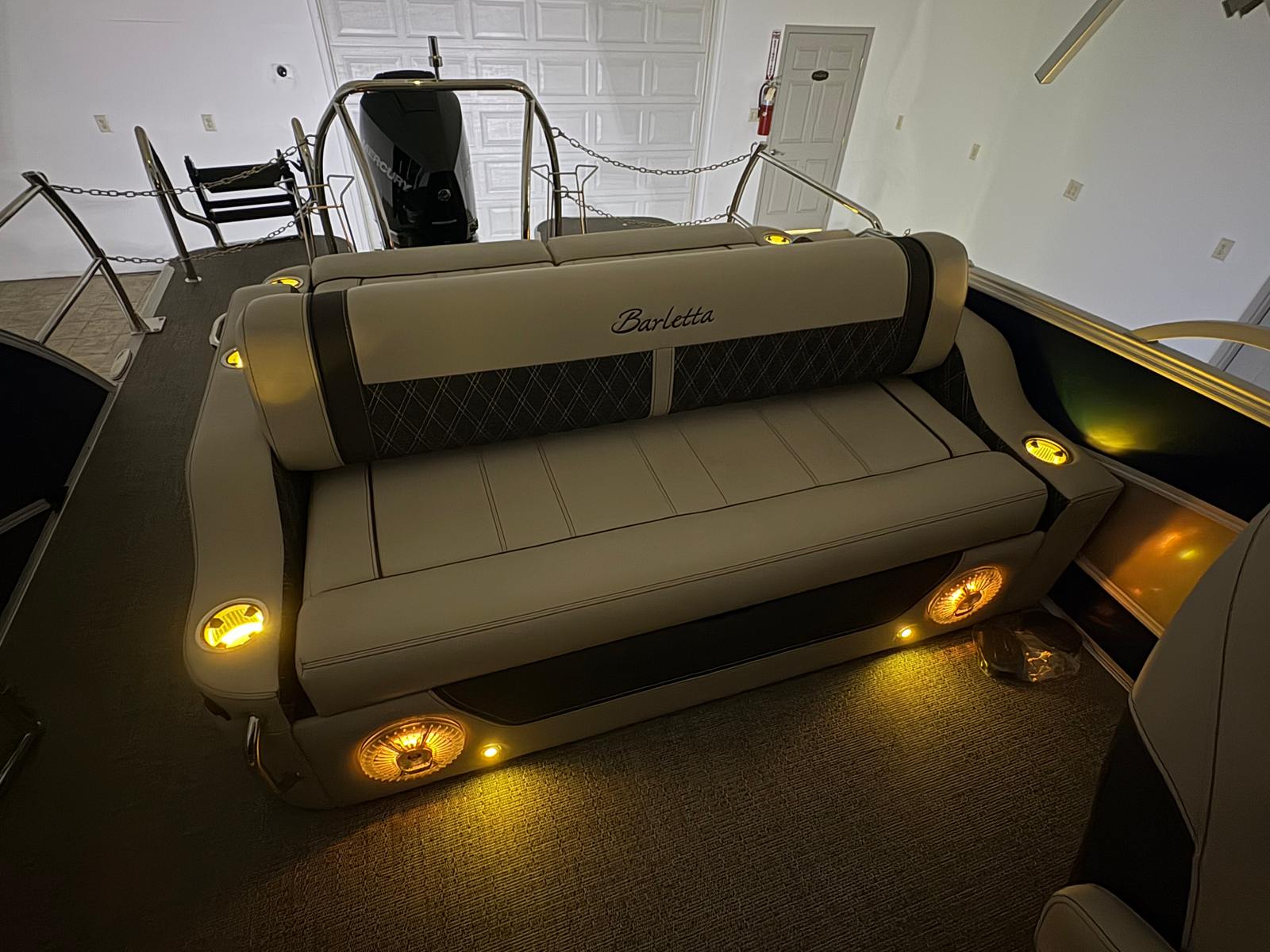 Practicality meets pleasure in the Barletta Lusso L23UC. The hydraulic and power assist steering simplifies docking and maneuvering, even for novice boaters. The digital gauges and Vessel Link system keep you informed and in control, while the on-board battery charger ensures your electronics are always ready for use. The sturdy stainless steel safety stanchions with chains provide peace of mind, especially when children or pets are on board.Storage solutions are integrated throughout the boat, making it easy to stow gear, snacks, and personal items without cluttering the deck. The durable flooring and high-quality furniture are designed to withstand the rigors of active use while maintaining their luxurious appearance. Fuel efficiency is enhanced by the advanced Mercury engine and stainless steel prop, allowing you to spend more time enjoying the water and less time refueling.