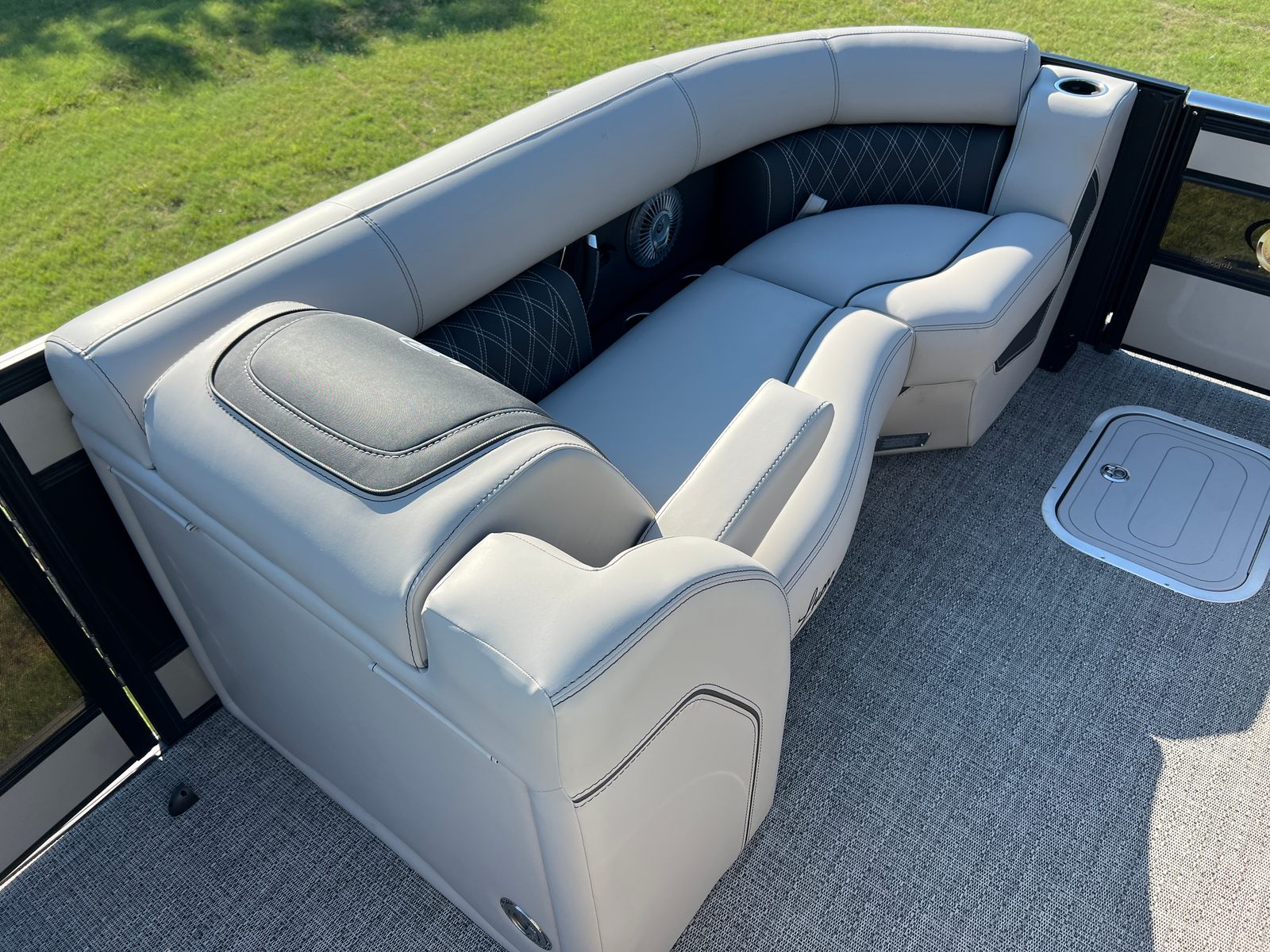 Owning the Barletta Lusso L23UC means embracing a lifestyle of fun, relaxation, and social connection. The spacious deck provides ample room for friends and family to gather, whether you’re hosting a sunset cocktail party or enjoying a quiet morning on the lake. The plush seating and premium flooring ensure everyone is comfortable, while the advanced steering and digital controls make piloting the boat a breeze. With its powerful engine and expertly engineered hull, you’ll enjoy smooth rides, responsive handling, and the ability to explore new waters with confidence.