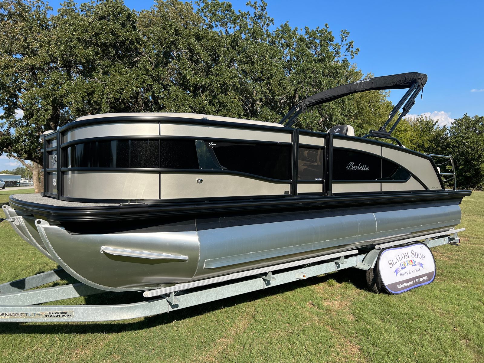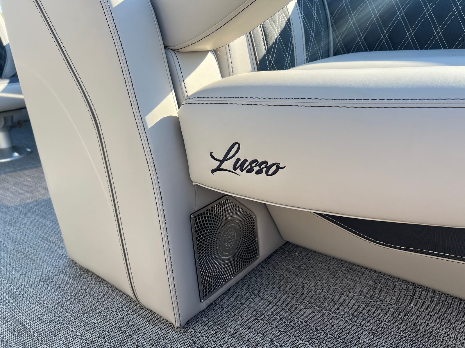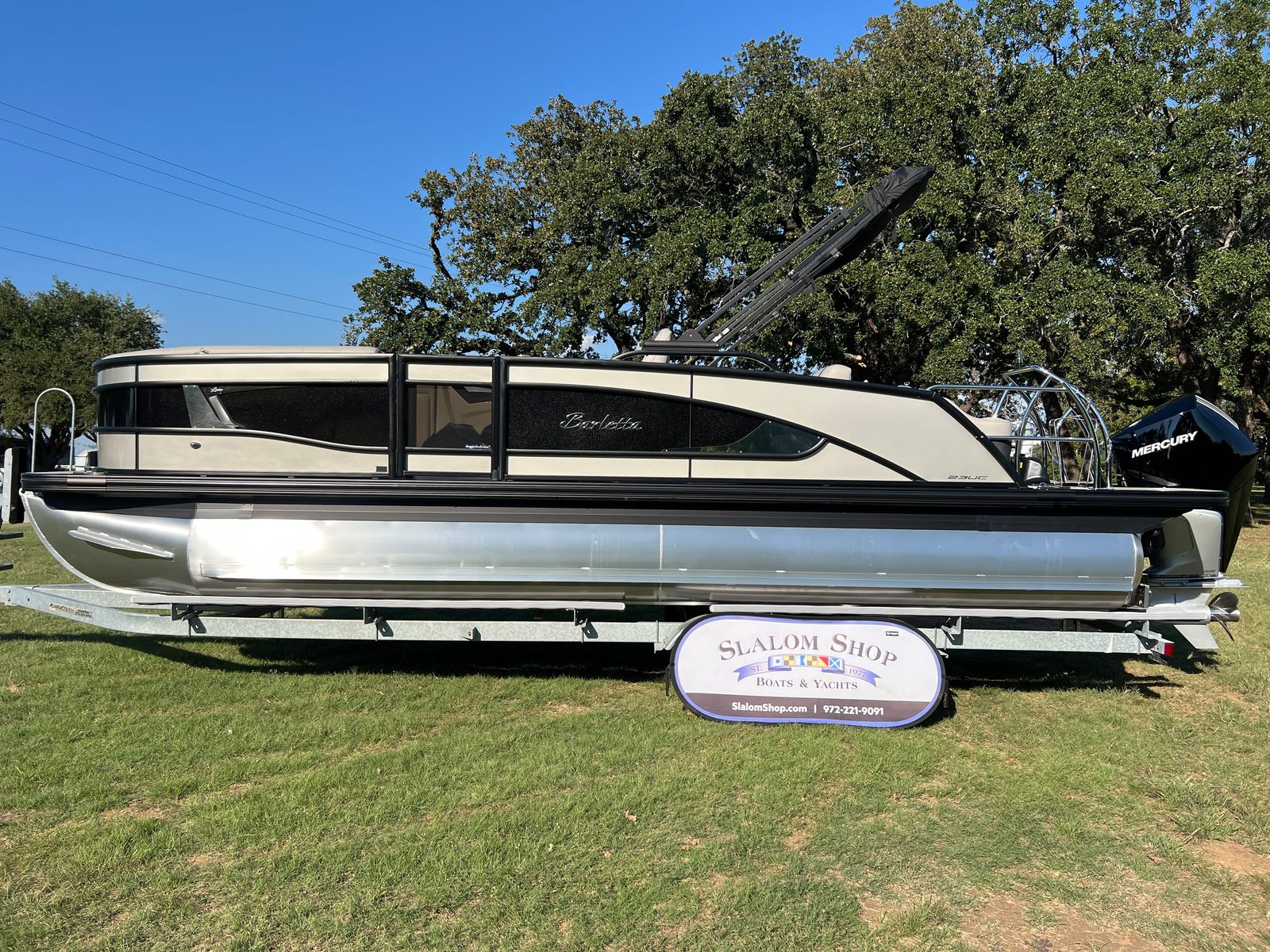 The 2026 Barletta Lusso L23UC is a stunning 25.5-foot pontoon boat that commands attention wherever it goes. Its sleek profile and modern lines are complemented by a Champagne sweep color and Black Diamond accent, creating a striking visual presence on the water. The Blackout Package Lusso railskin adds a touch of sophistication, while the Marquesan Gray furniture with Onyx accents and Amore Gray flooring provide a luxurious and inviting atmosphere for you and your guests. This pontoon is brand new, ensuring you get the latest in design, technology, and comfort.