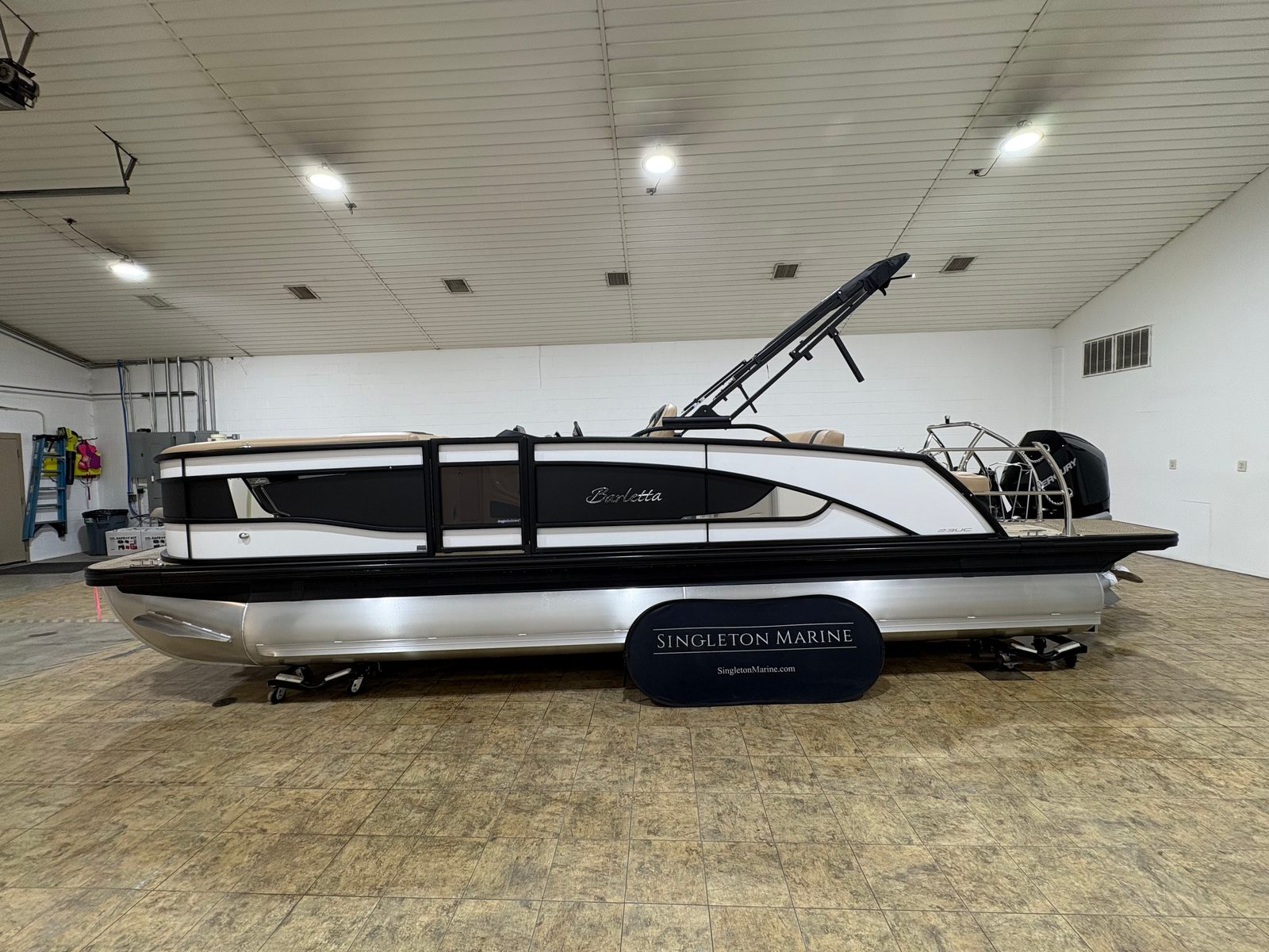 The 2026 Barletta Lusso L23UC stands out as a new pontoon boat that measures an impressive 25.5 feet in length, offering ample space for family, friends, and all your favorite water activities. Its sleek profile is accentuated by a Winter White sweep color and Matte Black accent, creating a striking presence whether docked or cruising across the lake. The Blackout Package Lusso adds a touch of modern elegance, while the Carmella Tan with Onyx furniture and Amore Tan flooring provide a warm, inviting atmosphere for every guest on board. Every detail of this pontoon is crafted to deliver both visual appeal and practical comfort, ensuring that every moment spent on the water is truly unforgettable.